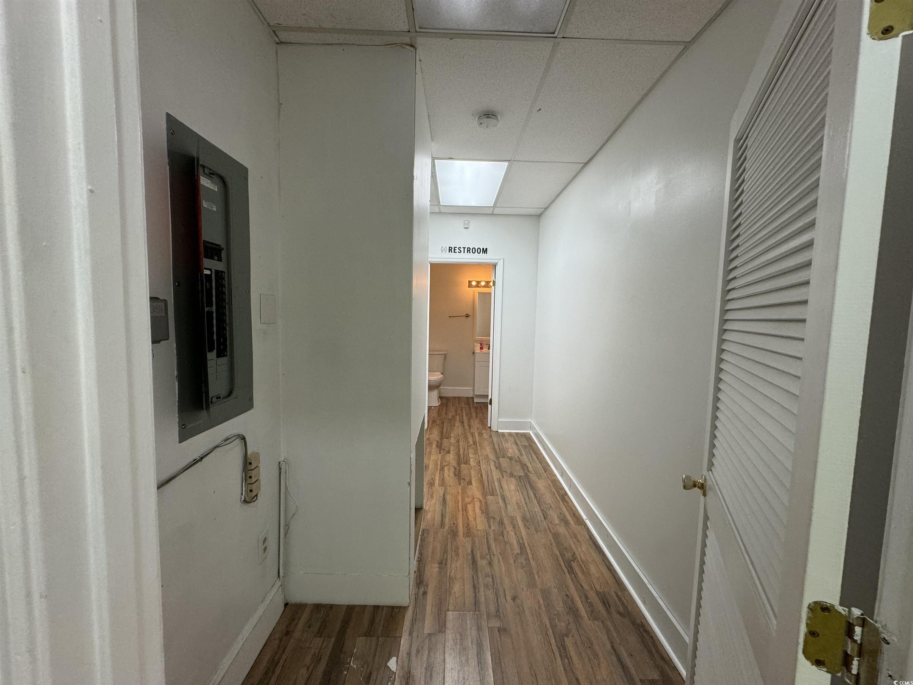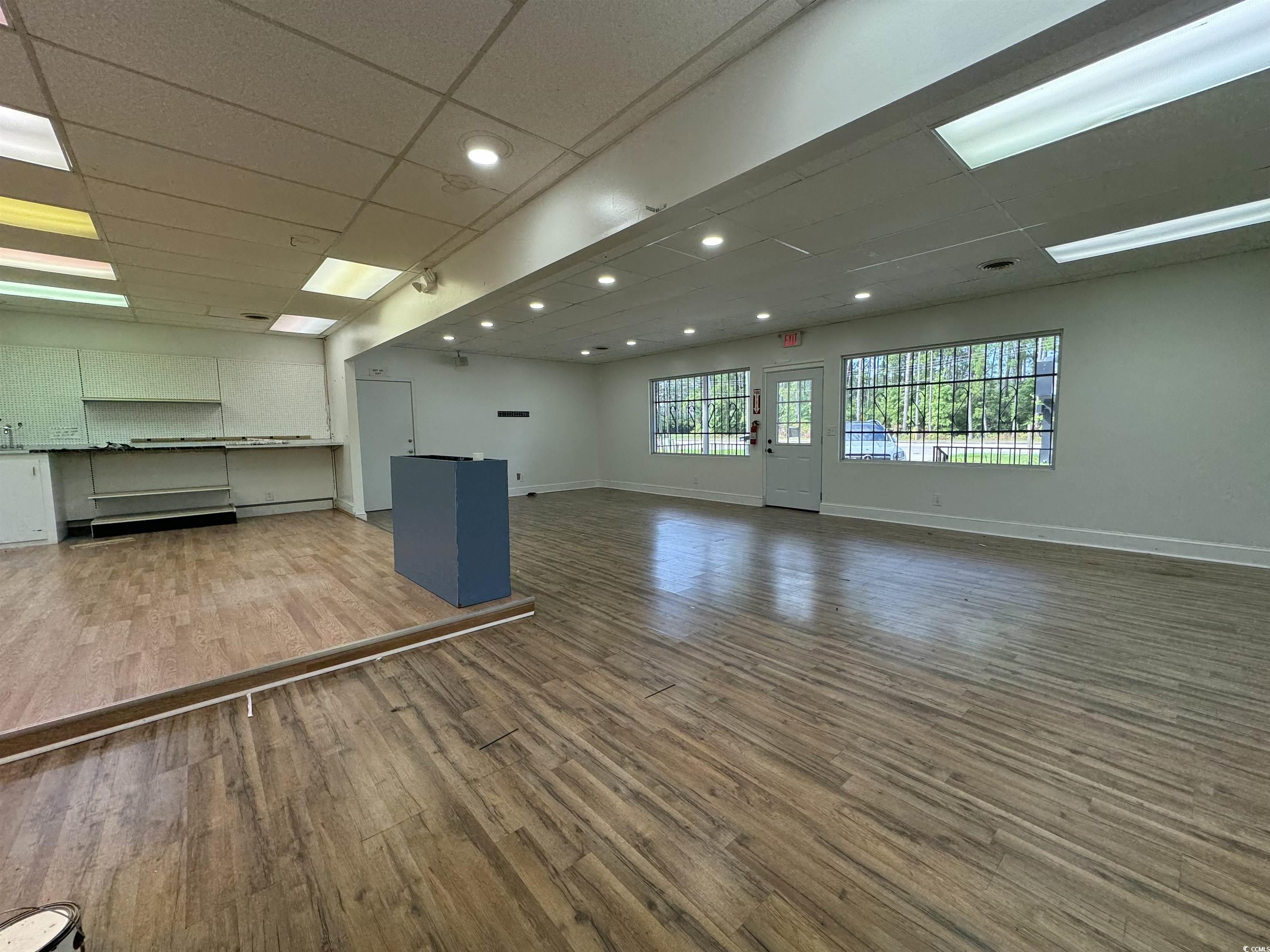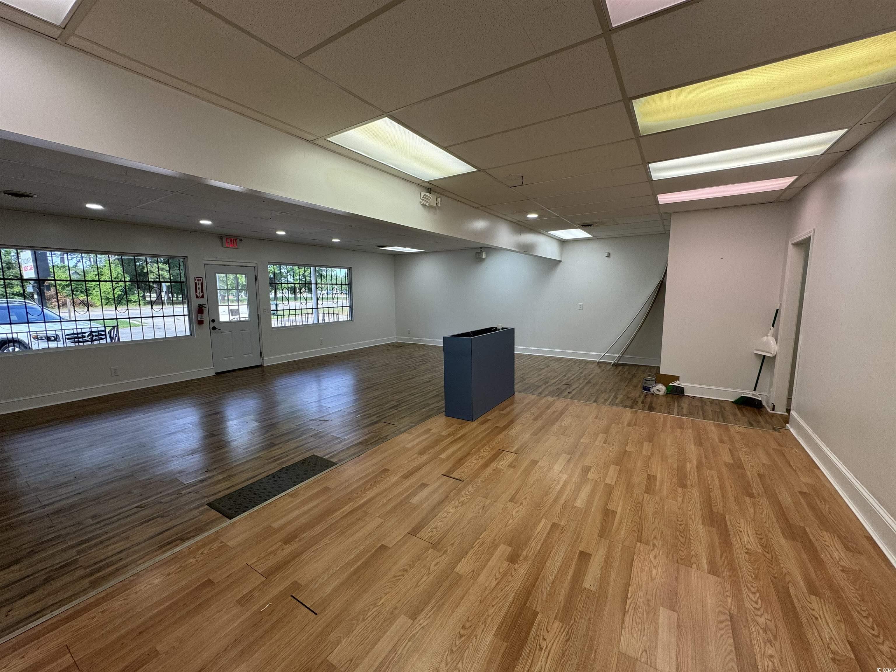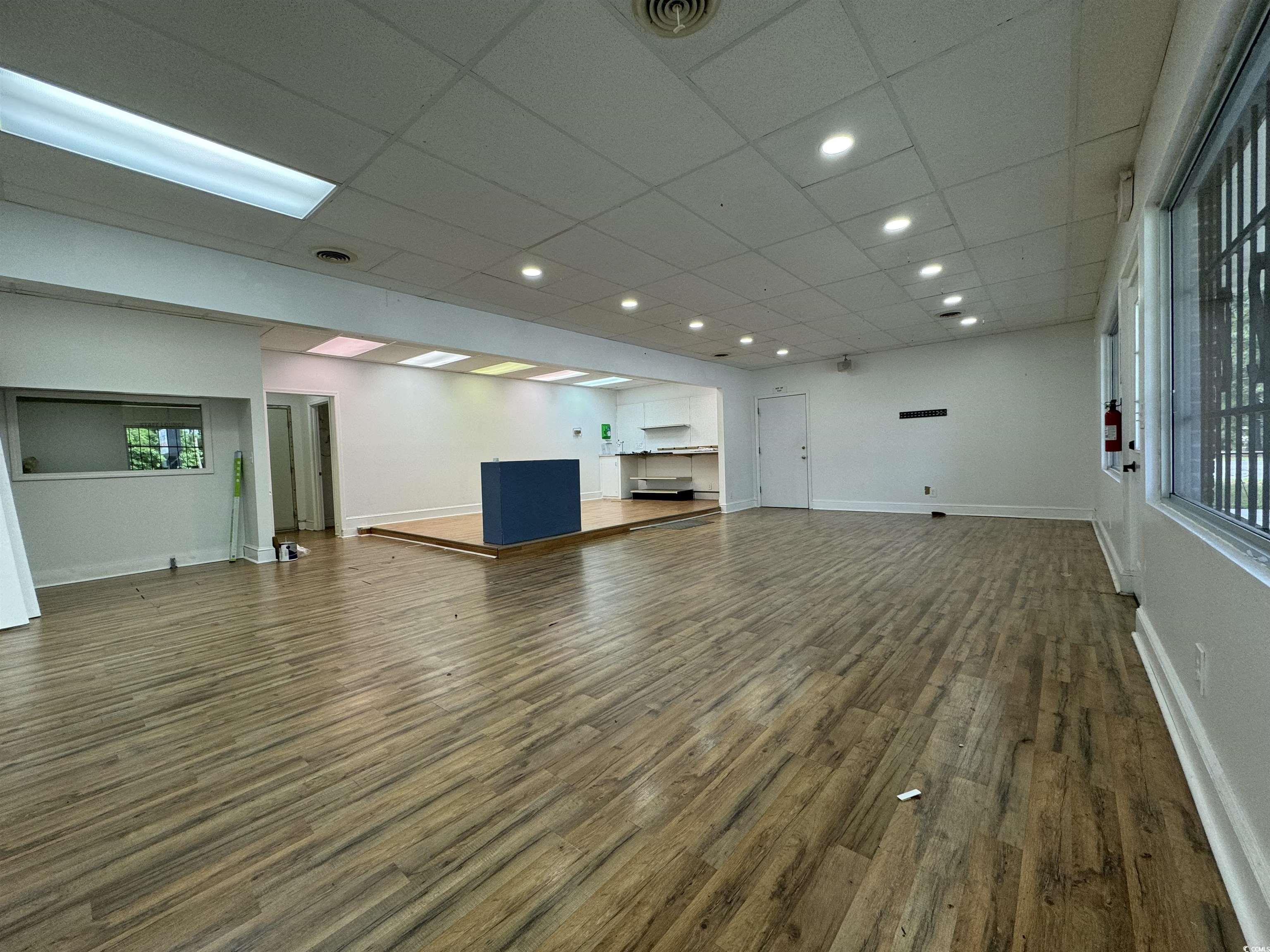 Commercial property located on Thurgood Marshall Hwy in Kingstree, SC! This building has a covered porch and ramp already installed. Upon entering, you will walk into a large open area that has new laminate flooring and paint. Down the hall, there is a break room or office and a bathroom. Equipped with a paved, wrap around drive-thru and a decent size parking lot, this space has an endless amount of opportunity!