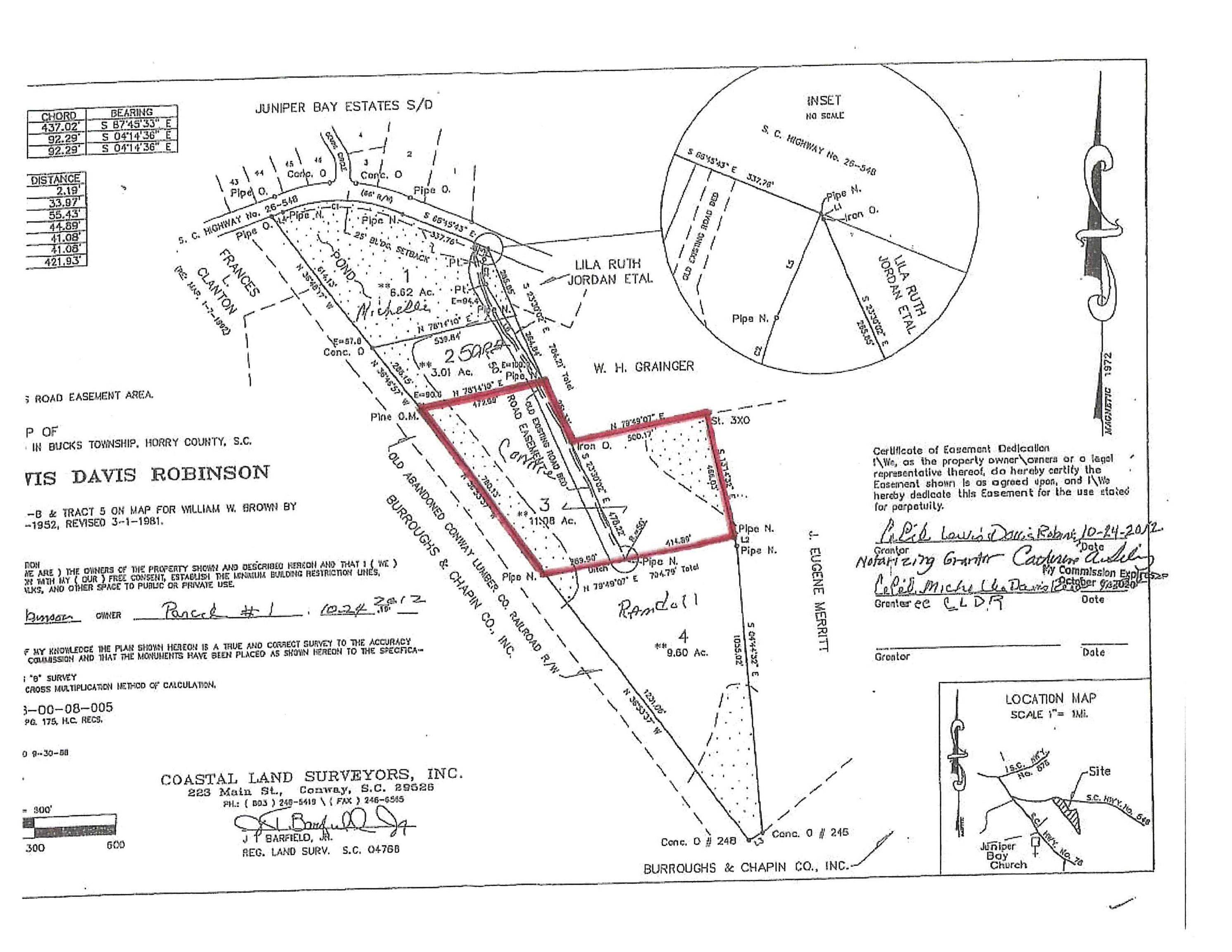 11 prime acres located on Highway 548 just outside of Conway. The property is zoned FA and is in the path of progress. Egress and ingress to the tract from Highway 548 is through a dedicated easement. Survey is available.