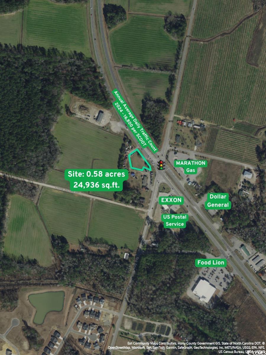 An ideal site location near the corner of intersection S.C. 9 and S.C 905 in Longs, South Carolina. With approximately 215 ft. of road frontage, this is an ideal location for a quick serve restaurant, express lube, bank or medical office. Location Highlights: 16,800 AADT for 2024 per SCDOT 8 Miles to North Myrtle Beach