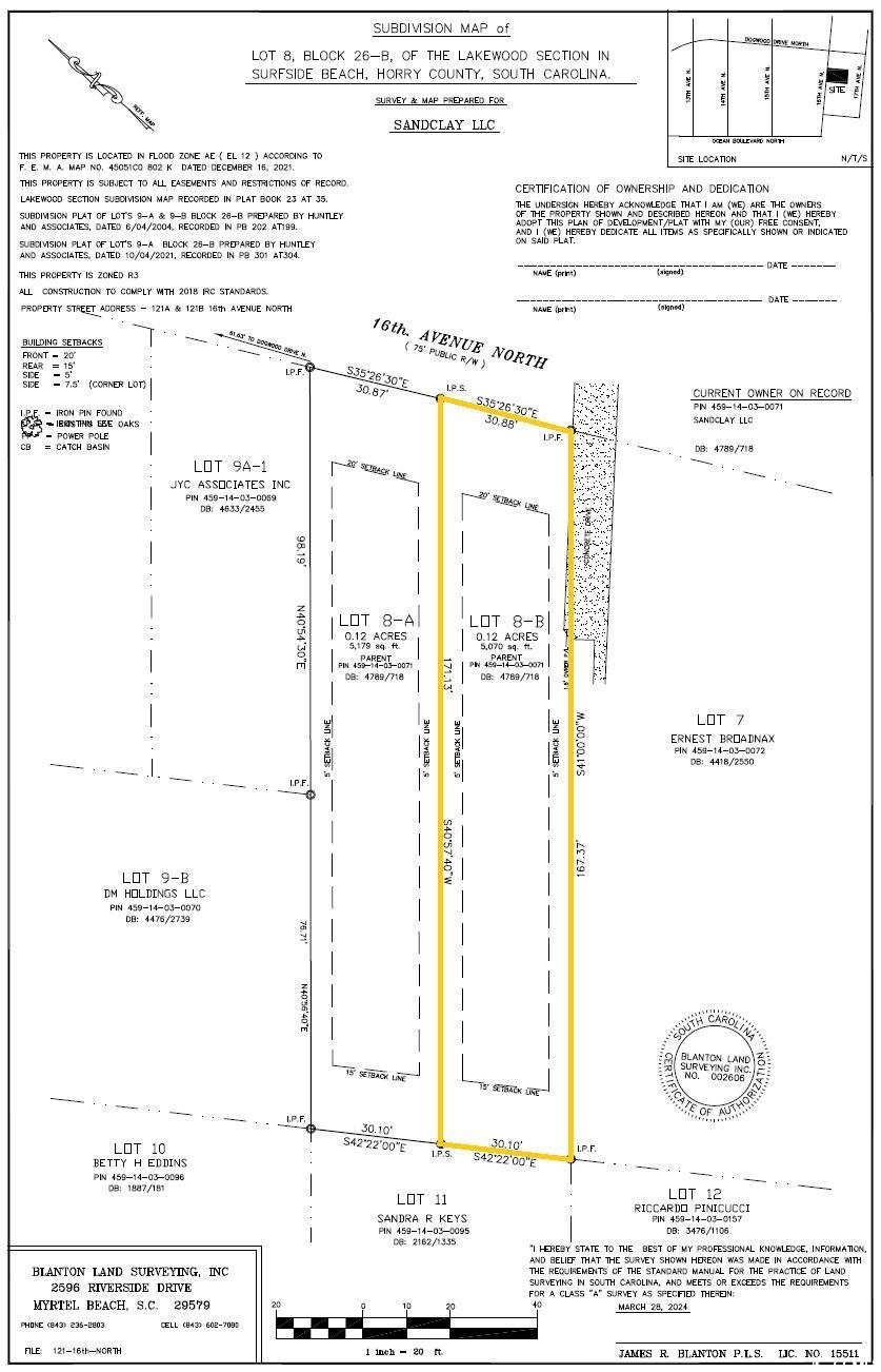 Hwy 17 Business North to Surfside. Take a right onto 16th Avenue North. Travel east several blocks. 121B will be on your right. Look for the newly cleared lot with the Sea Star Realty sign.Courtesy of Sea Star Realty Sales, Llc