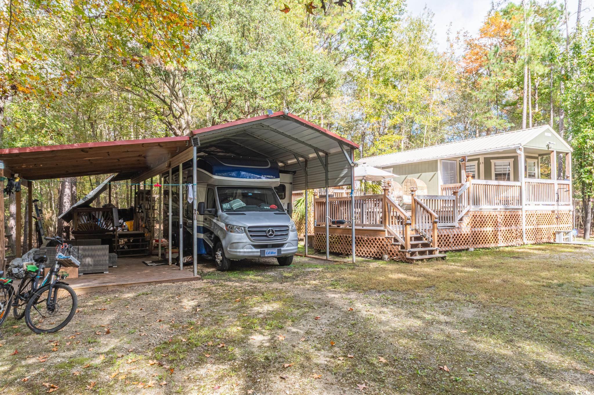 Discover this unique 4.49-acre buildable property tucked away on a quiet cul-de-sac in the desirable All Saints Landing community of Conway, South Carolina. This expansive tract offers no HOA restrictions and features a small pond, power and water connections, and two existing septic tanks already on site. Additional highlights include multiple carports, RV hookups, and a secondary non-dwelling structure (not permitted for residential use), providing excellent flexibility for storage or workshop space -- All furniture included. Zoned CFA (Commercial Forest Agriculture)one of Horry Countys most versatile and sought-after zoning classificationsthis property is perfect for those seeking room to store RVs, boats, or recreational equipment. Enjoy the convenience of a county-maintained boat landing just minutes away, with easy access to Highway 22, the dining and entertainment of downtown Conway, and a short drive to the beaches of Myrtle Beach.