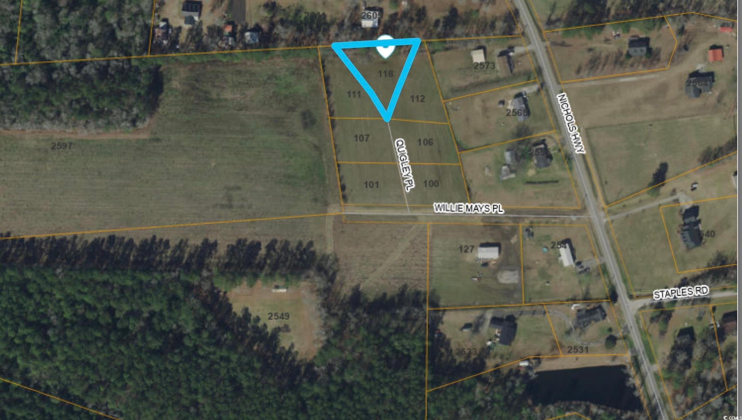 Take hwy 319 towards Aynor to Nichols hwy. Continue on Nichols Hwy to Willie Mays Pl. Use 2555 Nichols Hwy Aynor SC 29511 if using GPS and turn beside that address. You will see Quigley Pl Rd and lots will be located at the end of Quigley Pl Rd.Courtesy of Diamond Shores Realty