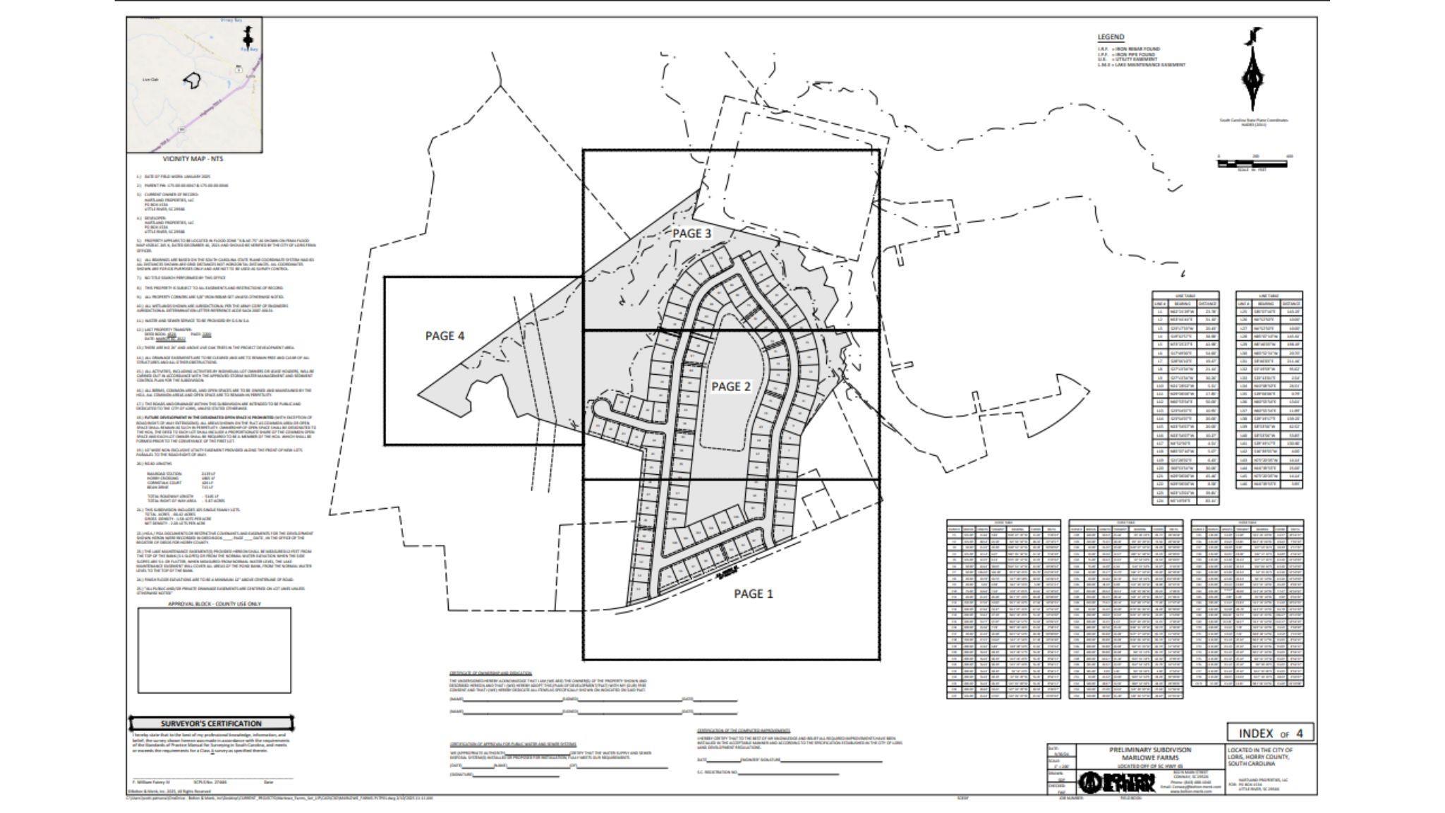 Prime development opportunity along Highway 45. Tracts 1 & 2 offer shovel-ready land with approvals in place and immediate development potential in the rapidly growing Loris/Horry County corridor. Positioned along a publicly maintained highway, this site provides excellent access and visibility, ideal for residential subdivision. Site plans reflect 105 single-family lots across 66.42 acres. Strong regional housing demand and growth make this a rare opportunity to scale in one of the fastest-growing residential corridors in Horry County. Excellent location and access along Hwy 45 with shovel-ready status and major approvals in place.