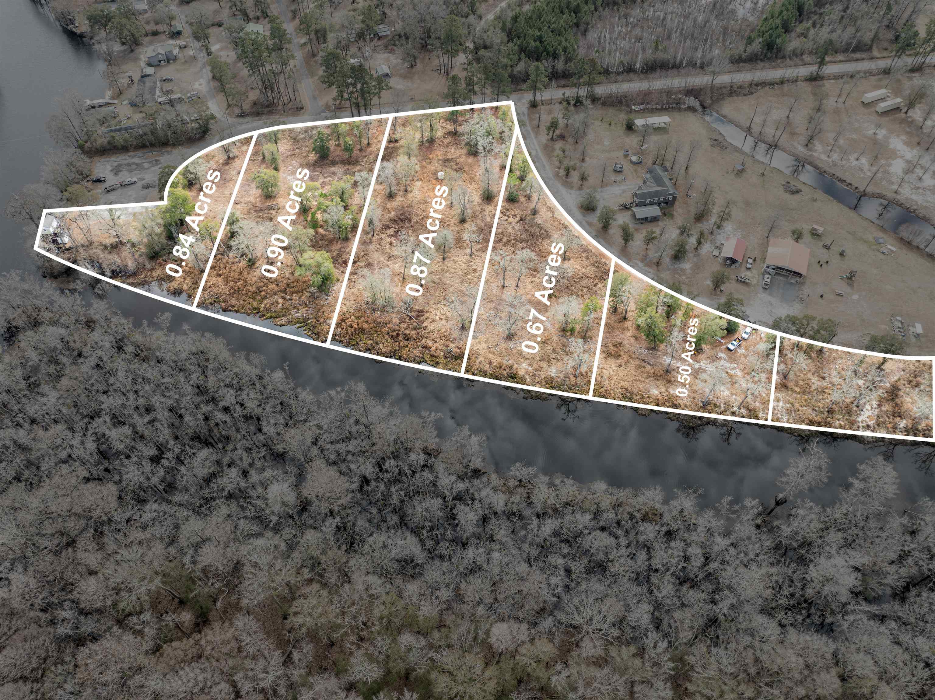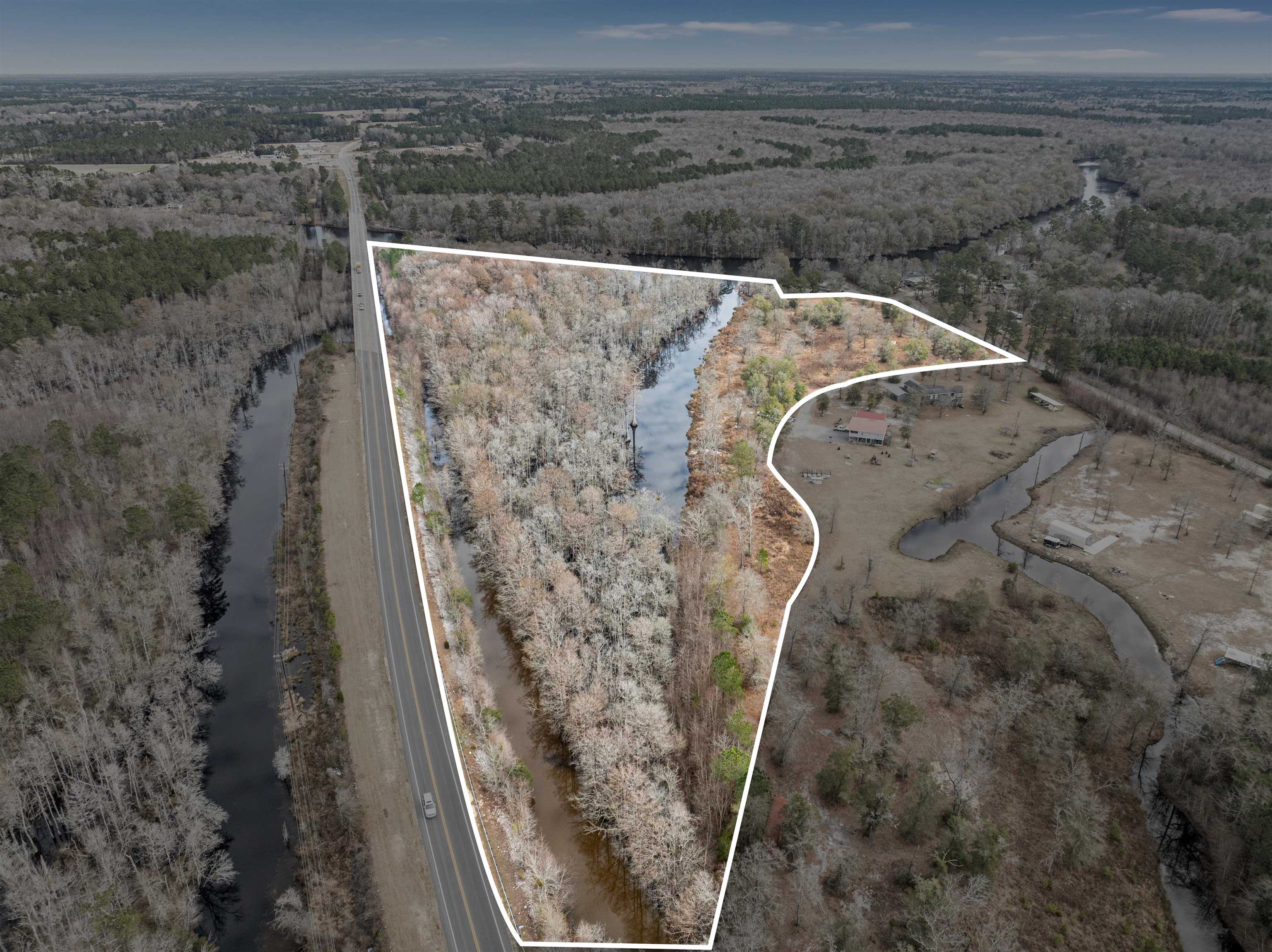 Approximately 21.8 acres of land along the water of the Black River at Reds Landing Road just outside of the town of Andrews. Of the land that can be used along the canal leading into the Black River there are plats showing cutting the land up into, 4 to 6 lots that could be resold or keep it all for your own use.