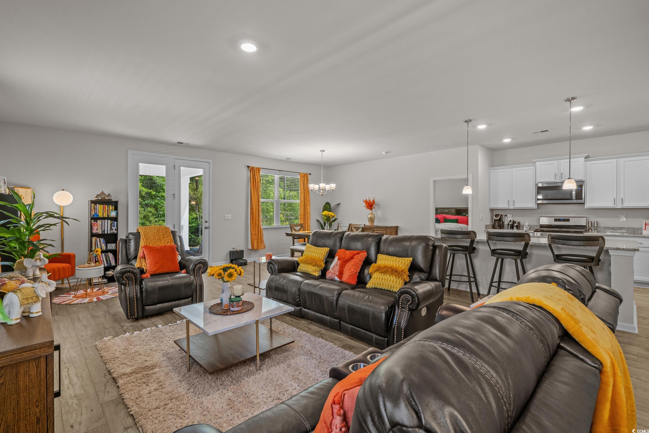 The Space Between Busy and Peaceful! Theres a sweet spot that can be found between the sunny and warm energy of the beach and the quiet rhythm of nature. Thats exactly where 847 Flowering Branch Avenue sits. Tucked away on a peaceful cul-de-sac street with no neighbors directly across from you and woods just beyond the backyard, this single-level home offers a sense of calm you can feel the moment you pull in. Step inside to a welcoming flowing layout where the kitchen island invites conversations, laughter, and connection. The heart of the home blends seamlessly into the dining and living areas, creating a perfect setting for gatherings large or small. Outside your door, youll find more than just a beautiful home, youll find a complete lifestyle. Enjoy a community designed for connection, with a beautiful pool and clubhouse, fitness room, lakeside firepit, and bocce court. Just minutes away, in addition to the pristine shoreline, the North Myrtle Beach Park & Sports Complex offers walking and biking trails, dog parks, playgrounds, athletic fields, open fields perfect for picnics and throwing a football. An amphitheater, guided segway tours, electric bike rentals, a gorgeous lake for catch and release fishing, wakeboarding at Shark Wake park and more. If being close to dining, shopping, medical centers, and activities is your vibe but you still want to be quietly removed from the crowds, this is the home and community you have been looking for. A like-new home offering space, simplicity, and serenity.