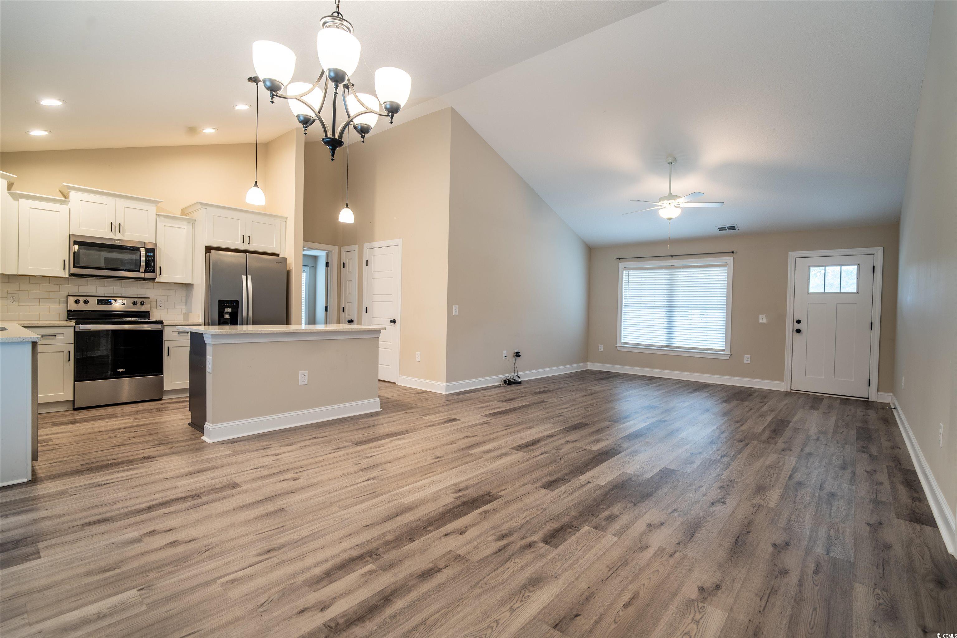 This home features 3 bed and 2 bath with all LVP flooring and granite countertops throughout. The kitchen boasts a lovely, vaulted ceiling, and open concept to the living and dining areas. Stainless steel appliances furnish this beautiful kitchen with soft close cabinets, tile backsplash, kitchen island, and pantry. The master has tray ceilings and separates his and hers closets in the spacious master bathroom. The master bath also features a double vanity, soft close cabinets, and shower. This split bedroom plan has 2 guest bedrooms with a guest bath offering soft close cabinets, tub/shower combo and linen closet. Outside enjoy your large covered screened back porch in this lovely county setting on 0.44 Acres with NO HOA! This home will have a side load garage. Call today and ask how you can make this your future homesite.