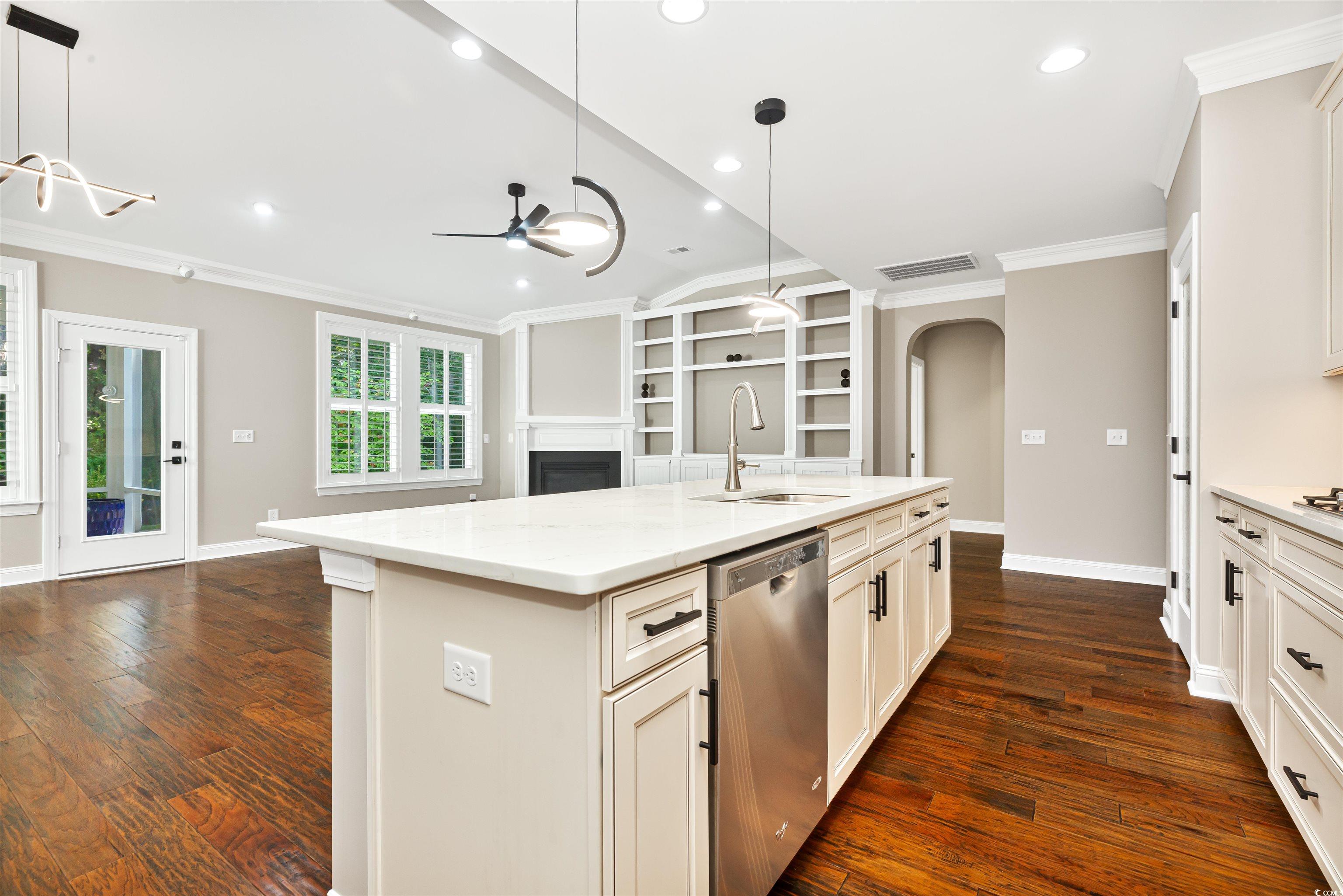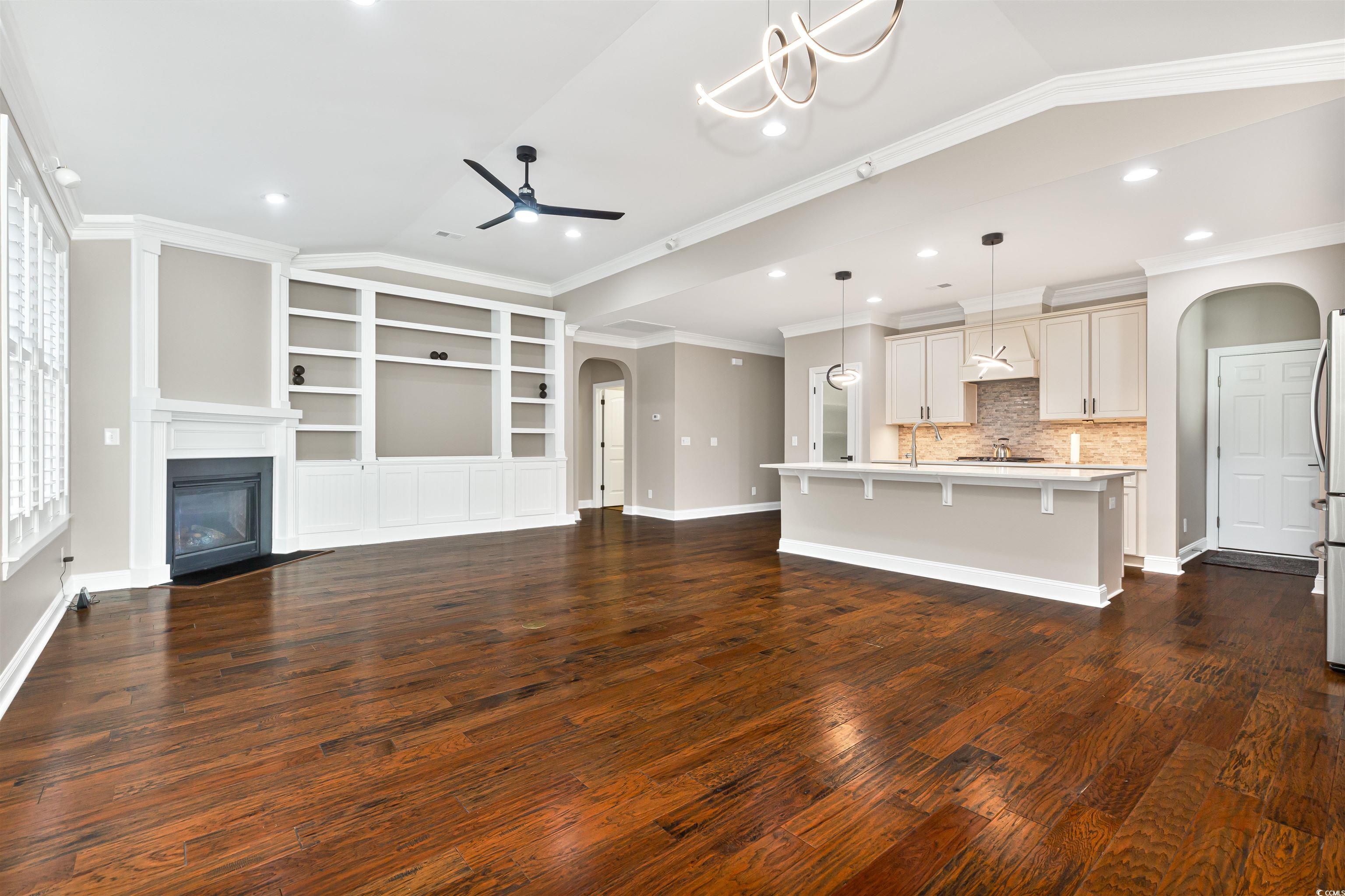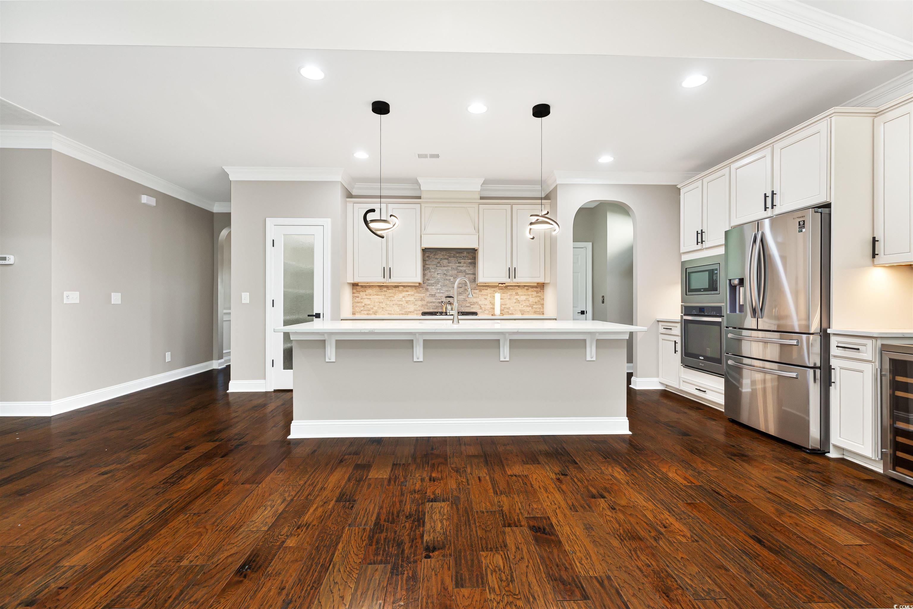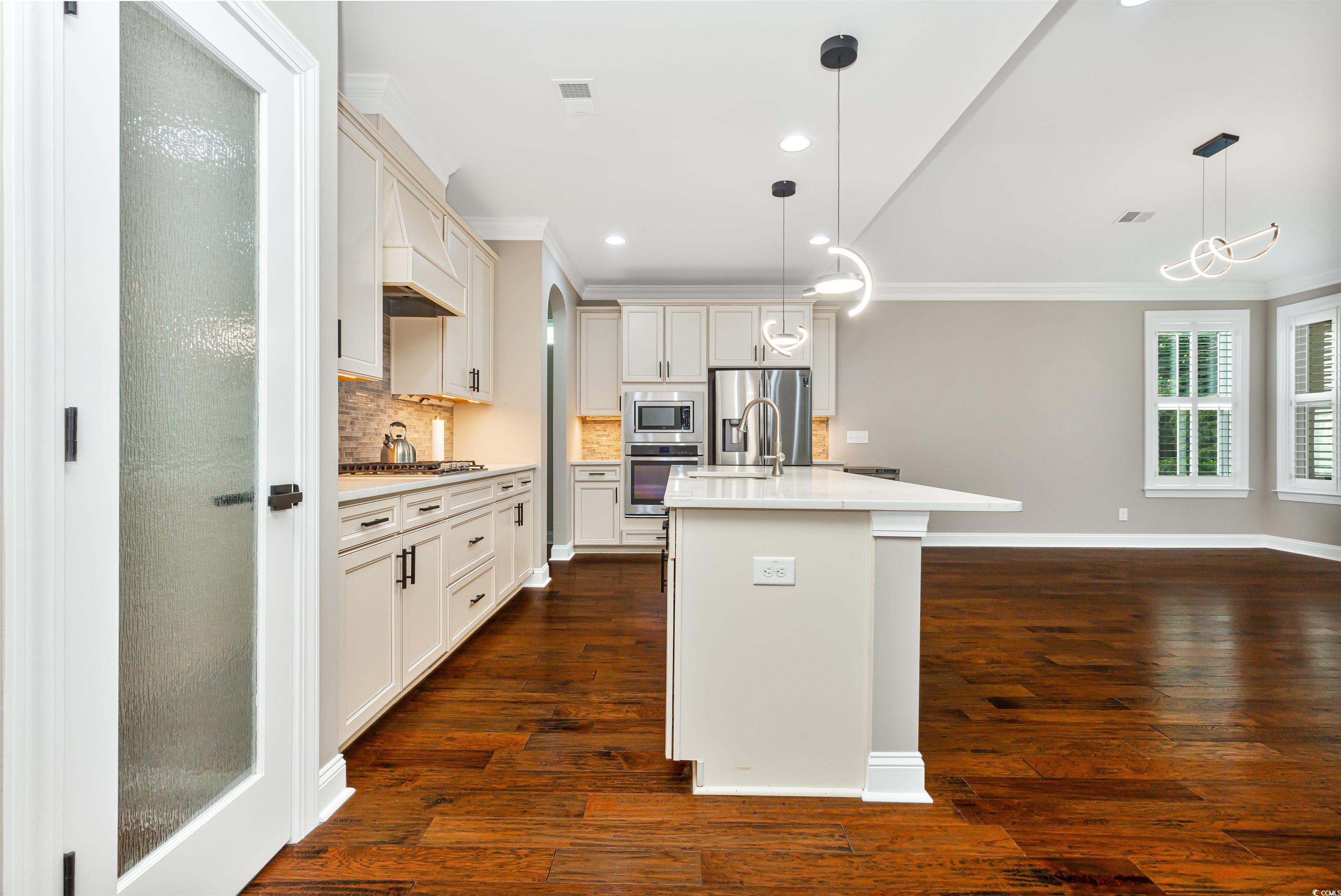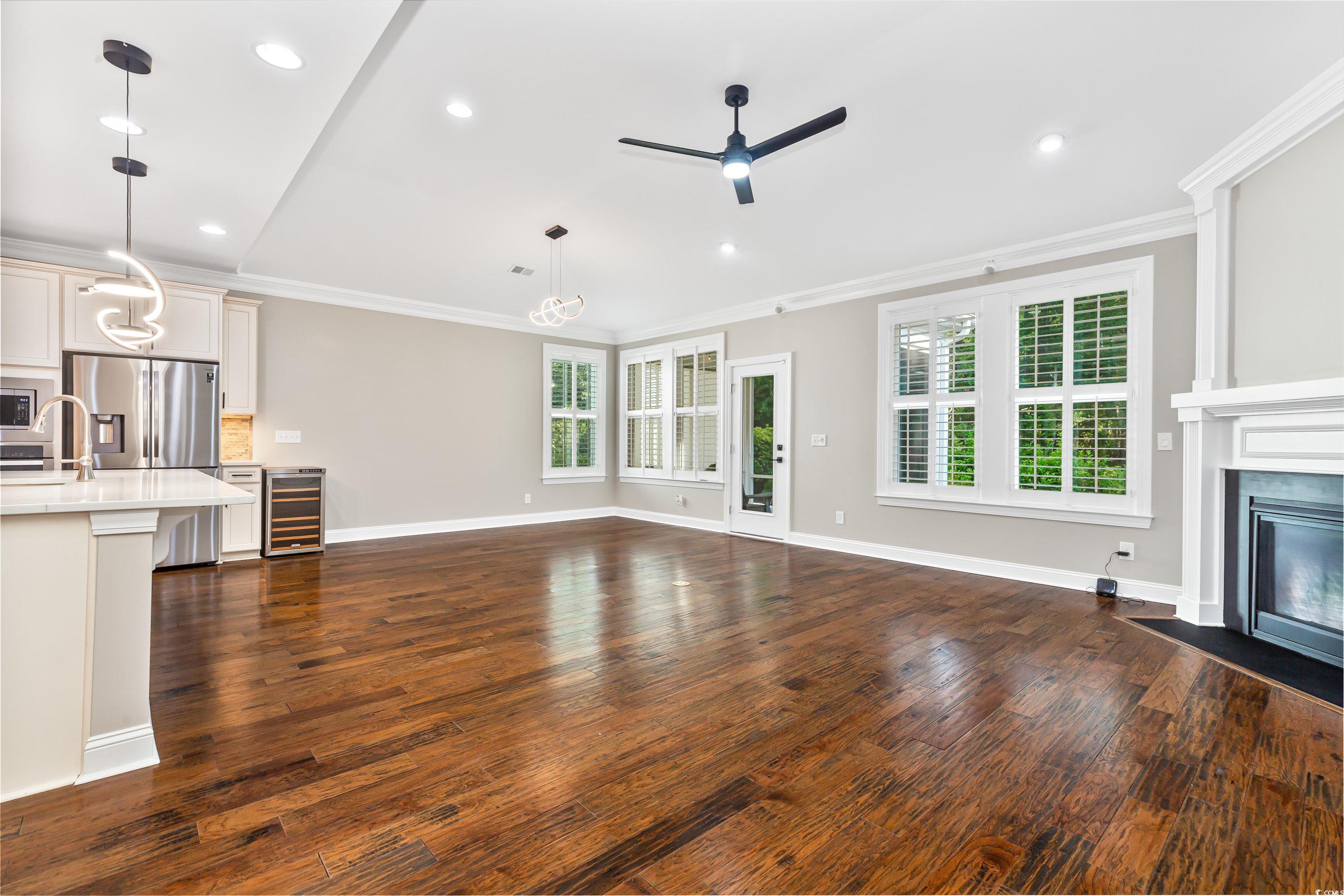 Welcome to this stunning 3-bedroom, 2-bathroom home located in the highly sought-after Balmoral natural gas community within The Market Common. This meticulously maintained property offers a rare 3-car garage complete with a floating tile floorperfect for added storage or hobby space. Step inside to a spacious kitchen featuring elegant upgrades, stainless steel appliances, and a generous walk-in pantry, ideal for both everyday living and entertaining. The home boasts hardwood floors throughout the living areas and flex room, complemented by a cozy fireplace that adds warmth and charm. Enjoy the airy feel of 9-foot ceilings in every room, with vaulted ceilings in the living and dining areas, and a tray ceiling with crown molding in the primary bedroom. The primary suite also includes a large custom closet, and all bedroom closets feature built-in organizers for maximum convenience. Step outside to a private backyard oasis, perfect for relaxing or entertaining. You'll love the screened-in porch and the extended patio, complete with a retractable awning for year-round comfort. Just minutes from the beach, this golf cart-friendly community puts you close to everything; groceries, restaurants, shopping, and entertainment. Whether you're hosting friends or enjoying a quiet evening at home, this is coastal living at its finest. Don't miss your chance to make this beautiful home yoursschedule a showing today! Absolutely No Pets Allowed!
