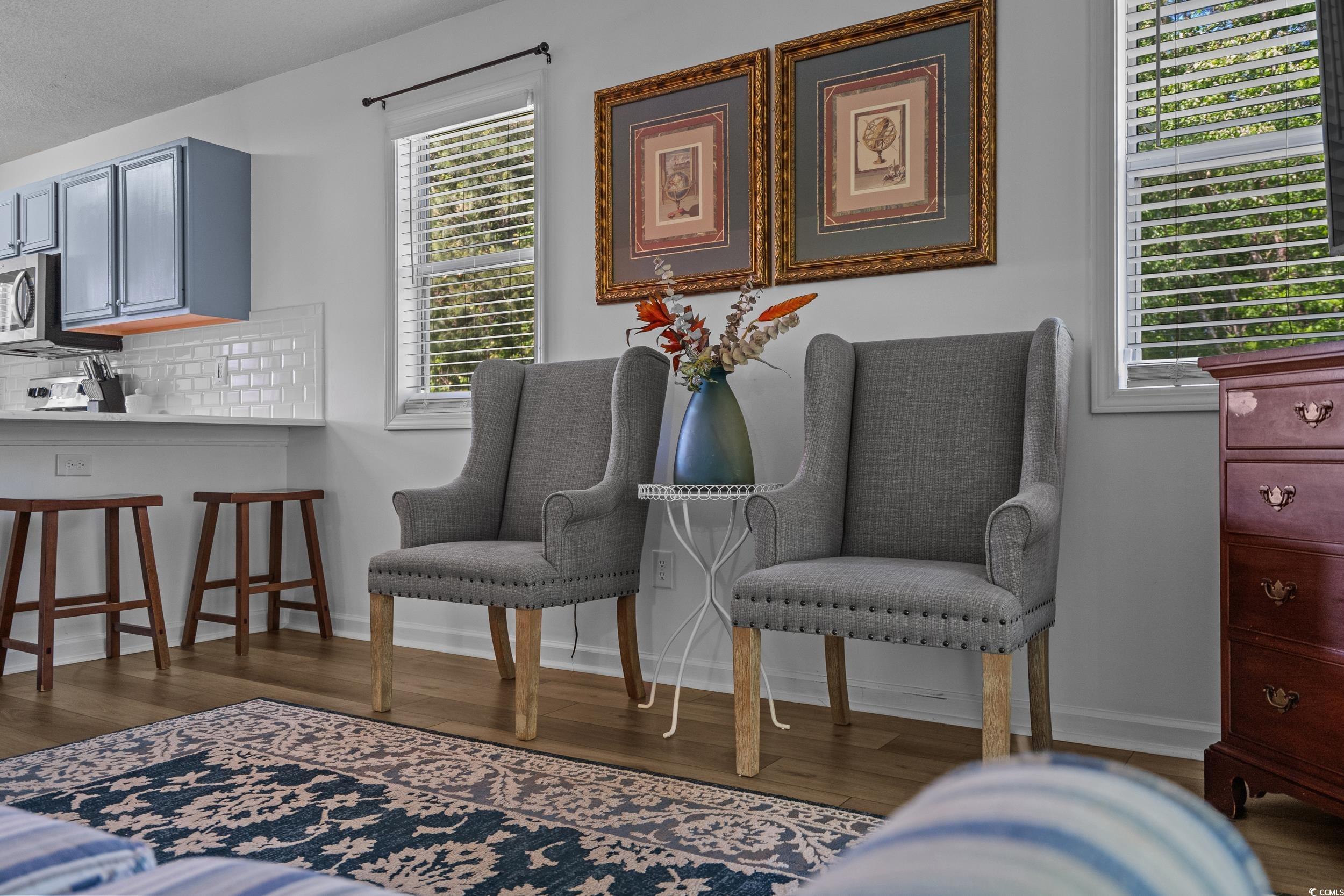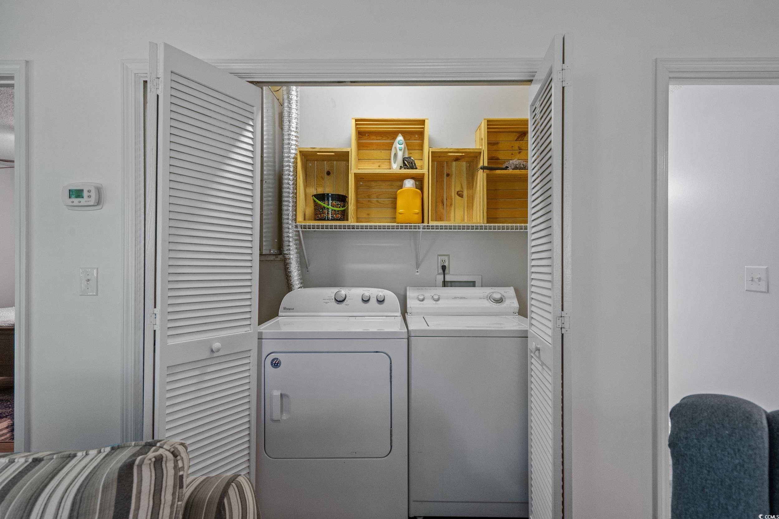 This spacious 2-bedroom, 2-bathroom ground-floor condo offers comfort, style, and convenience. Perfect for beach living, youll love the open layout and relaxing coastal vibe. Enjoy your morning coffee or evening wine on the screened-in back porch, a peaceful spot to unwind. Located just walking distance to the community pool and only 7 miles from the ocean, you're close enough to feel the breeze but tucked away for a peaceful escape. Whether you're lounging at Surfside Beach, exploring Myrtle Beachs top attractions, or dining at nearby restaurants, this condo puts you in the heart of it allwithout the noise. Step inside this bright and modern 2-bedroom, 2-bathroom ground-floor condo and feel instantly at home. The open-concept living and dining area offers plenty of space to relax, featuring comfortable seating, a smart TV, and tasteful coastal dcor. Large windows let in natural light, creating a cheerful and welcoming atmosphere. The fully equipped kitchen includes everything you need to prepare meals during your staystainless steel appliances, cookware, dishes, a coffee maker, and a breakfast bar for casual dining. The primary bedroom features a queen-sized bed, an en-suite bathroom, and a large closet. The second bedroom includes a plush twin bed with pull out trundle and easy access to the second full bathroom. Enjoy your morning coffee or evening wine on the screened-in back porch, a peaceful retreat with views of the surrounding greeneryperfect for quiet moments or casual conversation. With central AC, in-unit washer and dryer, and free Wi-Fi, everything you need for a comfortable and convenient stay is right here. Shorter lease terms available.
