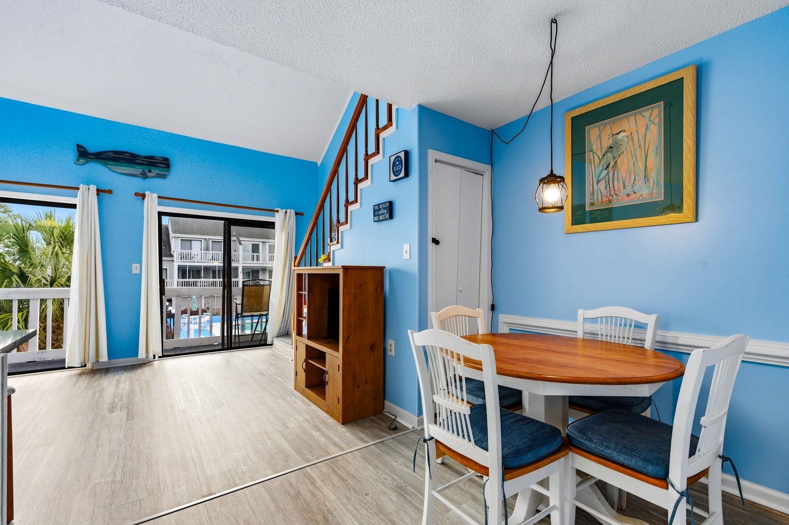 Sit on your private balcony and enjoy the views of the sparkling outdoor community pool in this charming 2 bedroom 2 bath condo located in the peaceful Golf Colony Resort complex. This vibrant newly repainted condo has soaring vaulted ceiling with a fan, stylish furnishings, an inviting main living space that showcase two sliding glass doors that opens up to the relaxing balcony. The family friendly kitchen is equipped with quartz counter tops and a white on white appliance package, a dining area, and a delightful breakfast bar. The main level is finished with a nice sized bedroom, full guest bath, and extra storage closets. As you venture upstairs you will find a loft bedroom with private access to a full bath. This condo affords you easy access to the beach and golfing along with all of the other activities and happenings in Myrtle Beach and Little River including fun eateries, award winning off-Broadway shows, public fishing piers, Little River Waterfront, and intriguing shopping adventures along the Grand Strand. Conveniently located to your everyday needs, including grocery stores, banks, post offices, medical centers, doctors offices, and pharmacies!