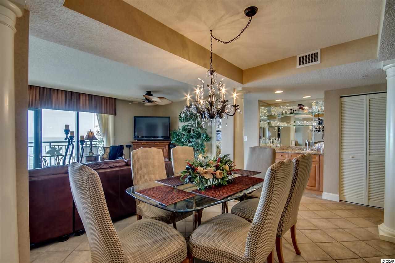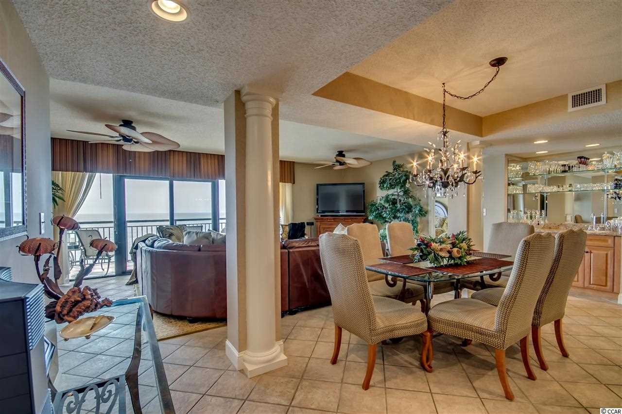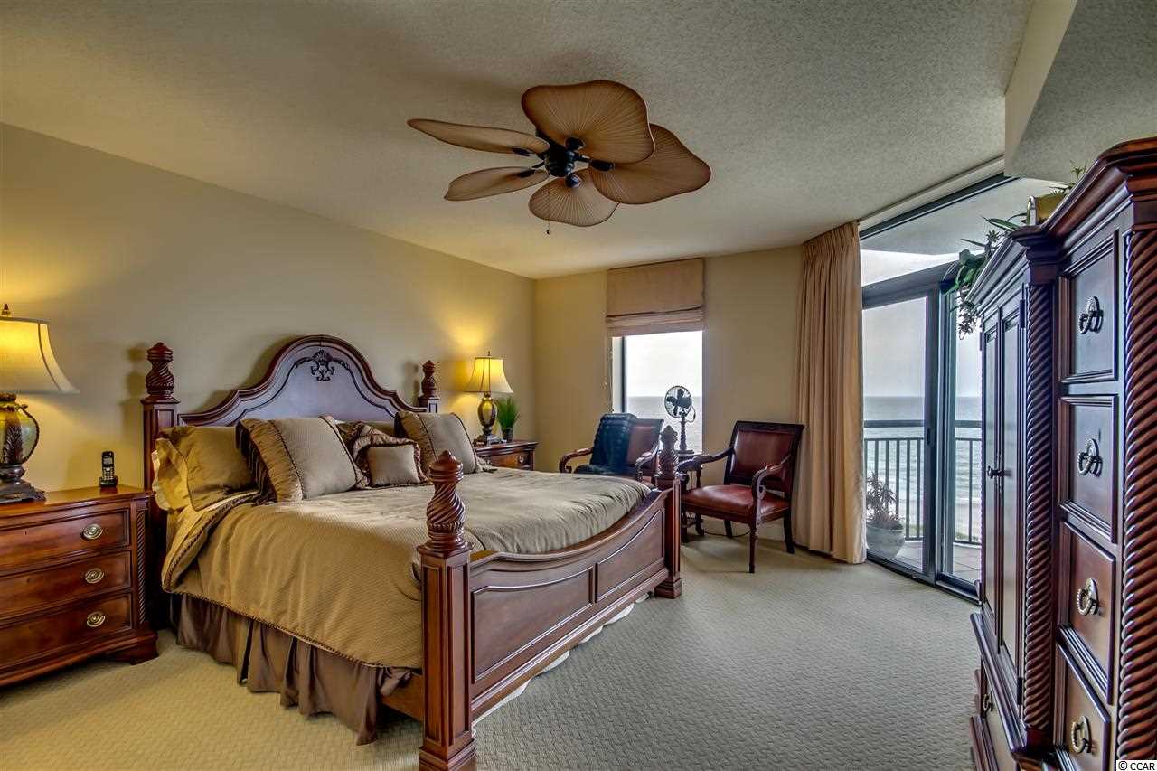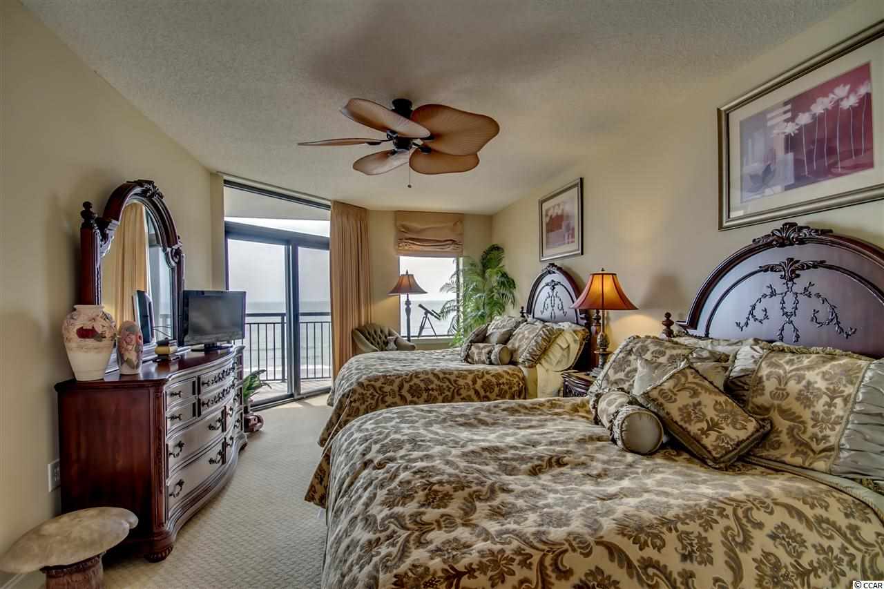 One of a kind, custom floor plan direct oceanfront condo. A MUST SEE. Open floor plan with 5th bedroom set up as office. Custom furnished with Tommy Bahama with many preconstruction upgrades. Wet bar, tile floor throughout, carpet in bedrooms, tile balcony, granite in kitchen and all bathrooms, custom fans and chandeliers, stainless steel built-in appliances, custom cabinets and many more. Southwind on the Ocean is located in an upper-class area of million-dollar homes, and enjoys a close proximity to Restaurants Row, Broadway at the Beach and loads of entertainment shows. Listing agent is related to owners.