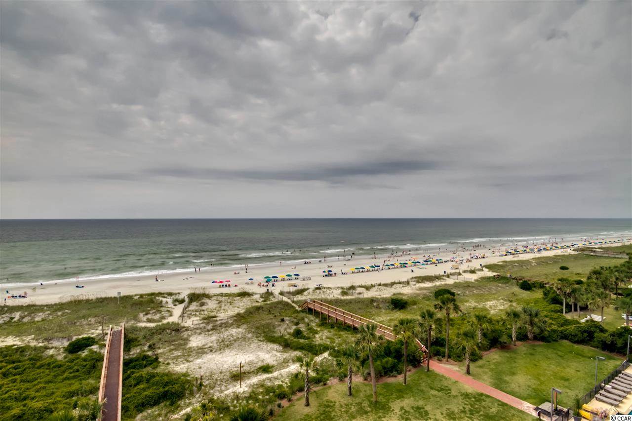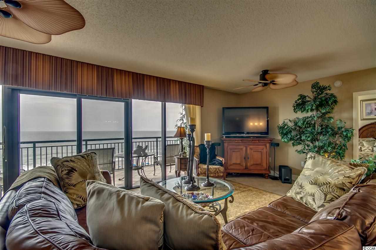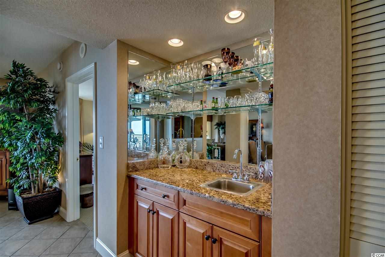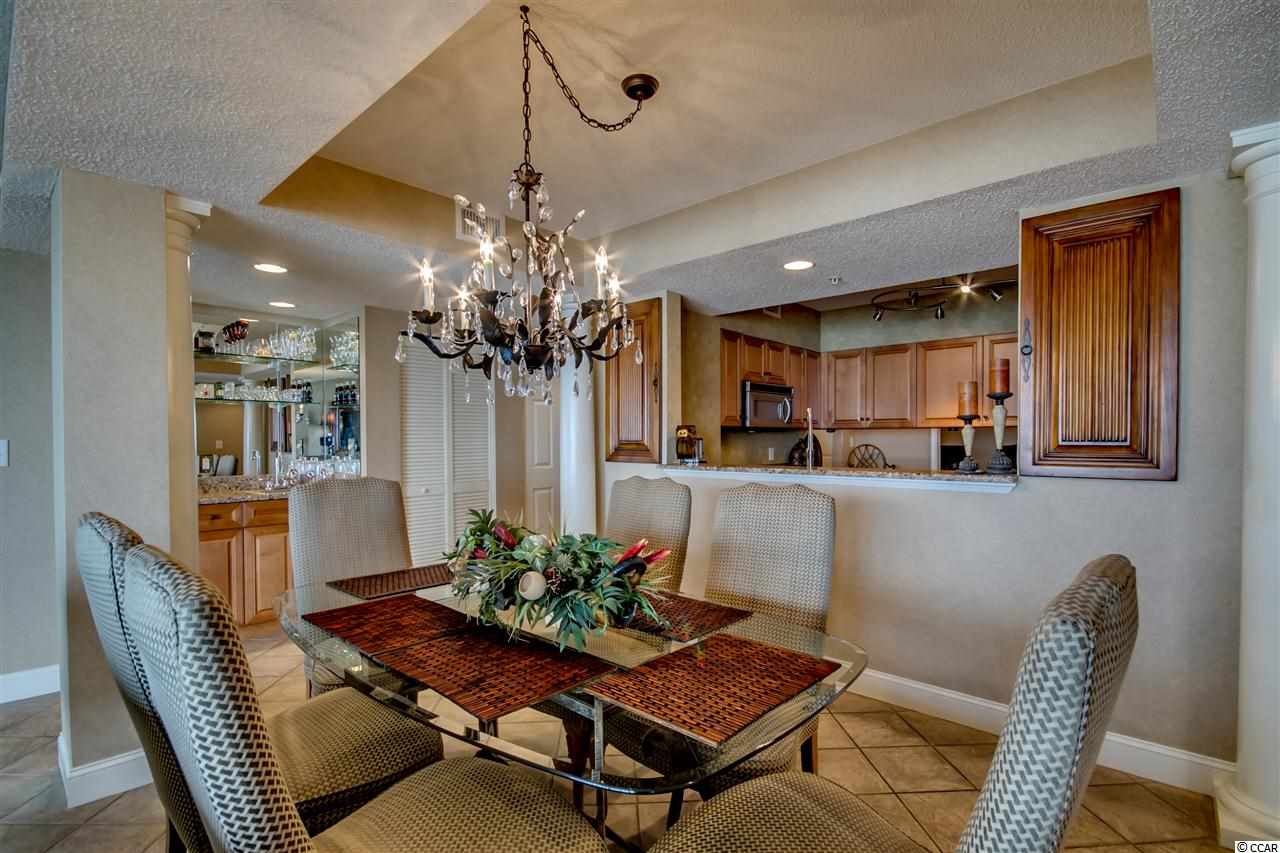 One of a kind, custom floor plan direct oceanfront condo. A MUST SEE. Open floor plan with 5th bedroom set up as office. Custom furnished with Tommy Bahama with many preconstruction upgrades. Wet bar, tile floor throughout, carpet in bedrooms, tile balcony, granite in kitchen and all bathrooms, custom fans and chandeliers, stainless steel built-in appliances, custom cabinets and many more. Southwind on the Ocean is located in an upper-class area of million-dollar homes, and enjoys a close proximity to Restaurants Row, Broadway at the Beach and loads of entertainment shows. Listing agent is related to owners.