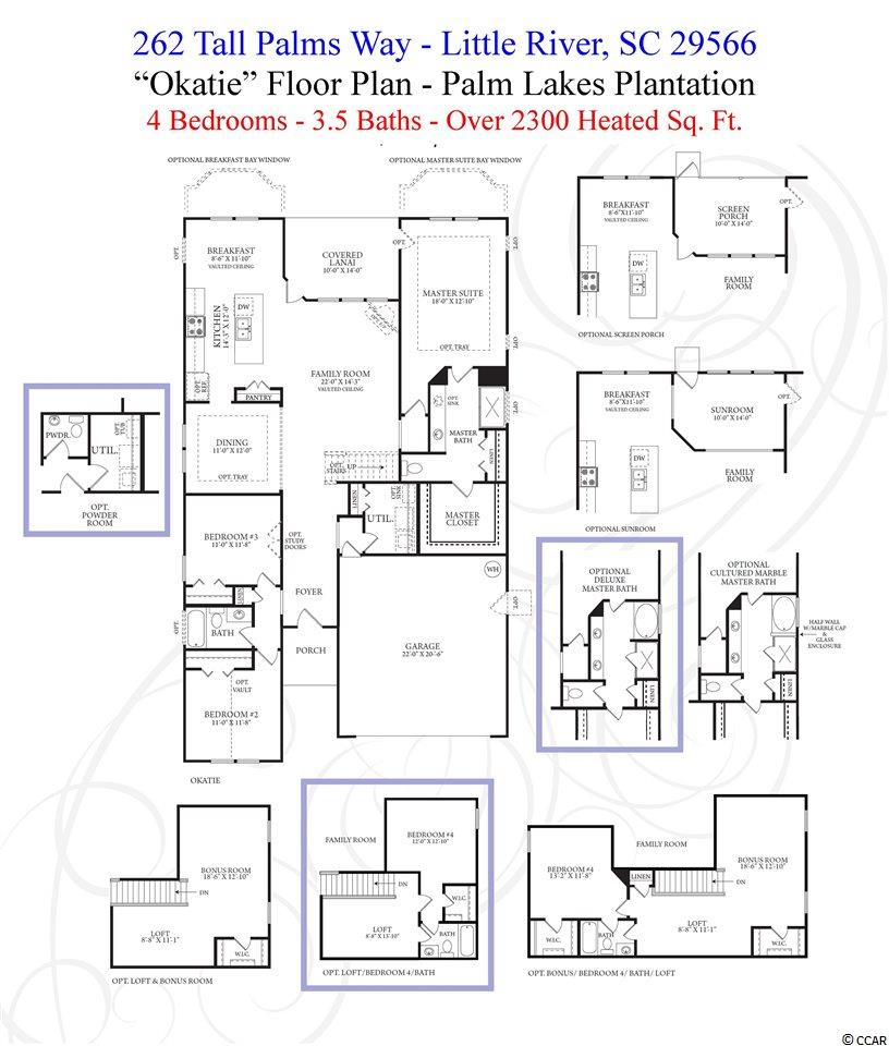 ""Affordable Luxury Living"" in this 4BR-3.5BA PALM LAKES PLANTATION residence. Quiet neighborhood, low Horry County property taxes, great local schools, and only 5 minutes to North Myrtle Beach. This home boasts the best of both worlds and is only 2 years old! Spacious Kitchen includes large pantry, granite counter tops, 42"" upper cabinets, stainless appliances, breakfast bar, breakfast nook, and opens into Great Room with vaulted ceilings. 3 Large Bedrooms on the First Floor, including oversized Master Bedroom. Master Bedroom includes custom walk-in closet organizers, double vanity sinks, soaking tub, shower, and linen closet. Other rooms include Formal Dining Room, Rear Covered Patio w/ Natural Gas hookup for grill, 2-Car Attached Garage, Bonus Room/Recreation Room, and additional Bedroom Suite on 2nd Floor. Extra attic and closet storage available throughout home. Upgraded features include: built-in Taexx Pest Defense System, Security System, Ceiling Fans in all Bedrooms, Bonus Room, & Porch, Irrigation System, Fiberoptic Internet, Natural Gas neighborhood. Developer has started construction on neighborhood Amenity Center.