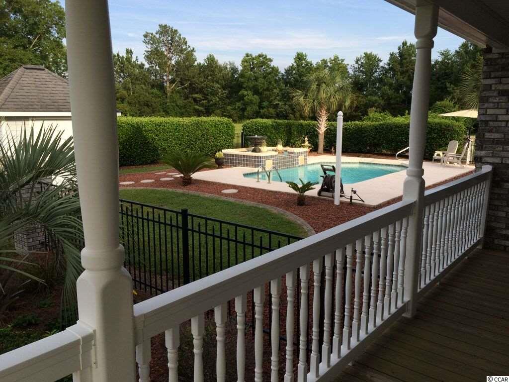 Experience a combination of Country Living and European Flair. This all brick home with surround porch is 3693 heated sq. ft. Gorgeous landscaping has concrete curbing with decorative stones, palms and plants. The moment you step past the leaded glass entry door you will be intrigued by the European charm and character of this home. All oak floors in living room, dining room, and bedrooms. Spacious living room with tile fireplace that could be gas or wood. Formal Dining room has a wonderful bay window with window seat overlooking the gorgeous in ground pool with fountain. Kitchen has abundant maple cabinets , corian counter tops, stainless steel appliances and clay tile floor. Stunning Carolina Room features tile floor, Finland style vaulted pine ceiling, three walls of windows with French doors opening to the large patio area with hot tub. Master suite is downstairs with private bath which includes large garden tub, shower, double sinks and walk in closet. Upstairs are two large bedrooms with full bath. From kitchen there is a hallway with pantry leading to the oversized 3.5 car garage and HUGE bonus room (mother-in-law suite) above the garage. You will be astonished at the meticulous craftsmanship as you enter the bonus area. Soaring vaulted pine ceiling, laminate floors, kitchen area, full bath, living room area, and separate bedroom. Enjoy relaxing in the custom Finland style sauna room located in a private bath with shower. Home also has video security system, decorative black metal fencing enclosing the back yard, beautiful in ground pool with fountain, Hot Tub and deck area, ceiling fans throughout.