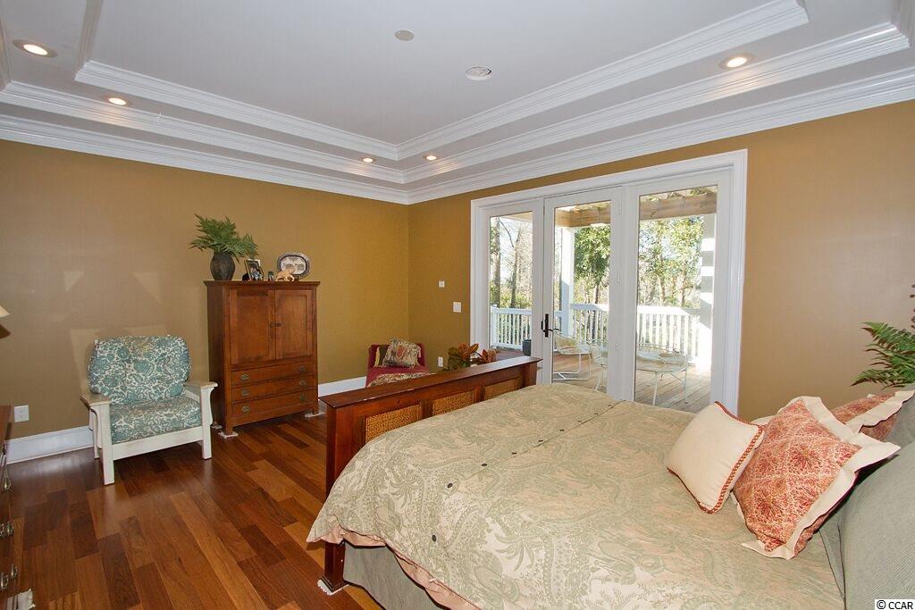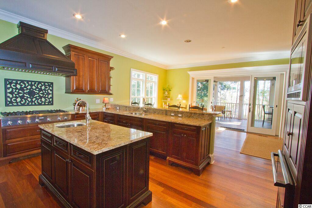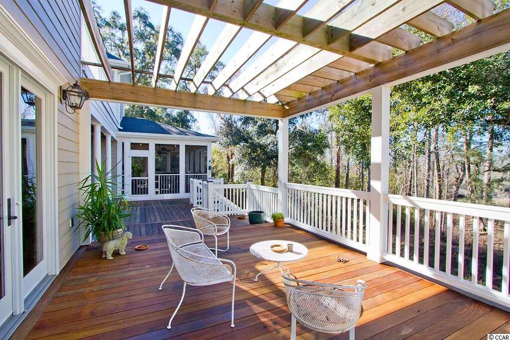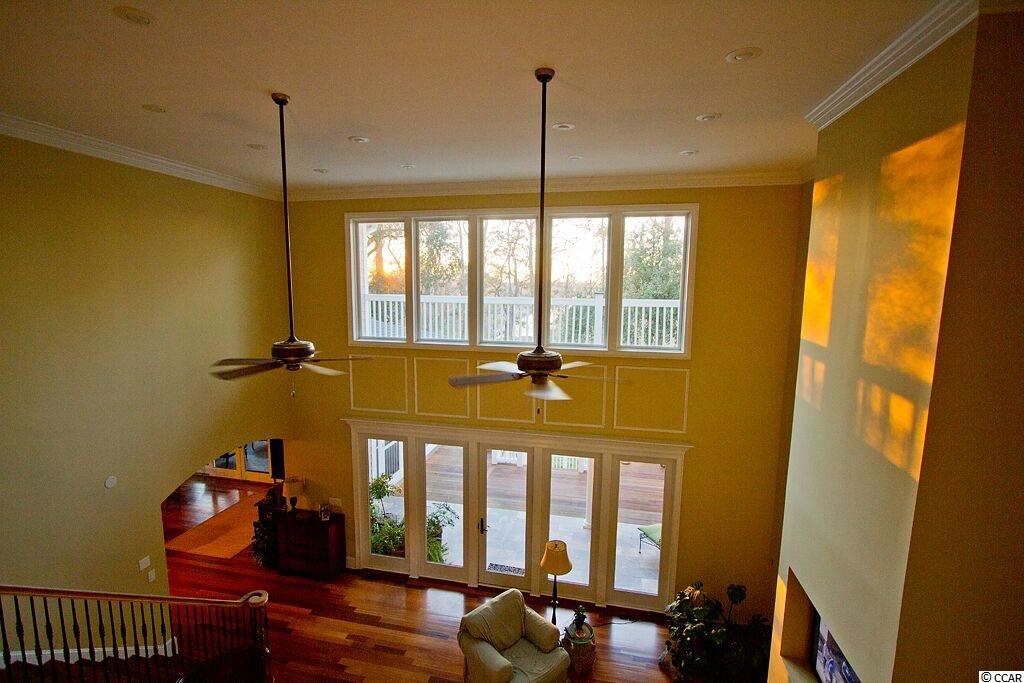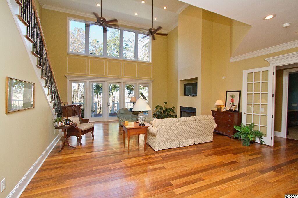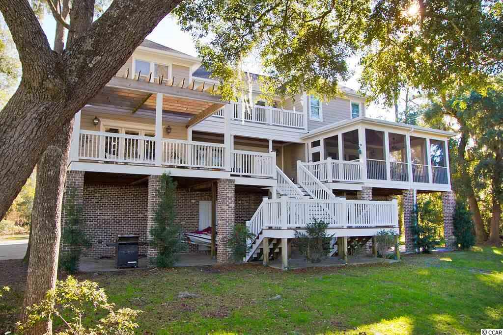 Handsome Lowcountry Home overlooking the Intracoastal Waterway and marsh in Ricefields, one of Pawleys Island's most beautiful river front communities. Enjoy spectacular sunsets over the Waccamaw River framed by beautiful moss-draped live oaks from a variety of perfect spots both inside and out! Charleston charm abounds throughout the 5300 heated sq. ft floor plan offering three levels. The main floor features a beautiful foyer, large living room with fireplace and vaulted ceiling, formal dining room with coffered ceiling, and fabulous kitchen with warm cherry cabinets, Thermidor refrigerator, double oven, six burner gas cooktop, commercial grade hood, granite counters, double sink, large pantry, breakfast bar, and breakfast room with a separate bar for entertaining. Also on the main level is the Master suite with tray ceiling, large tiled shower, private watercloset, heated tile floors and access to the adjacent study. Outdoor living spaces include a screened porch, pergola covered porch, an open, tiled deck, perfect for star gazing or sun bathing, and a ground floor lanai that is just begging for the addition of a summer kitchen! Upstairs is an additional 3 bedrooms and baths, flexible space for a den, study, or nursery, and an open deck for enjoying the gorgeous river and marsh views. The ground level was built as a mother-in-law suite with a bedroom, bathroom, and huge recreation room. There are three garage bays, and ample storage, including a double stacked closet that could be an elevator shaft. Other features include: Epay wood flooring on the front porch, Brazilian cherry floors throughout the enterior including the bedrooms, two 80 gallon water heaters, wrought iron railings on the staircase, and crown moulding. The home is fully wired for everything, including a generator. Does the front door look familiar? It was custom designed by a local craftsman to mimic the door of the beautiful plantation home at Hobcaw Barony. Ricefields offers its residents a full array of wonderful amenities including a community pool, boat landing access to the Waccamaw River, a beautiful nature trail, streetlights, and sidewalks. Ricefields...it's a great place to live!