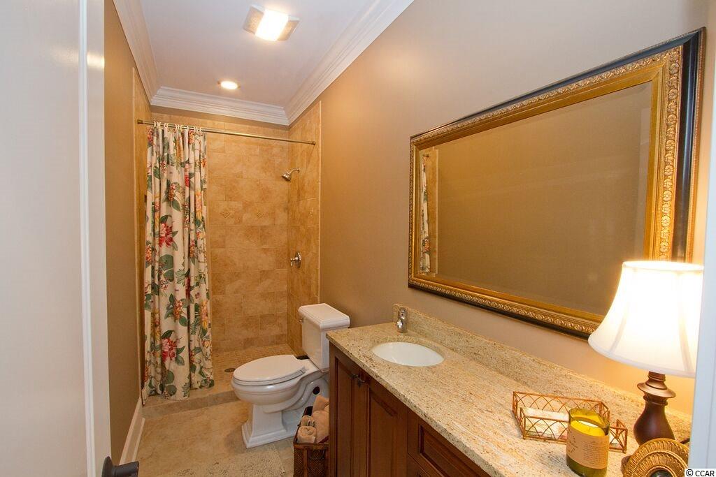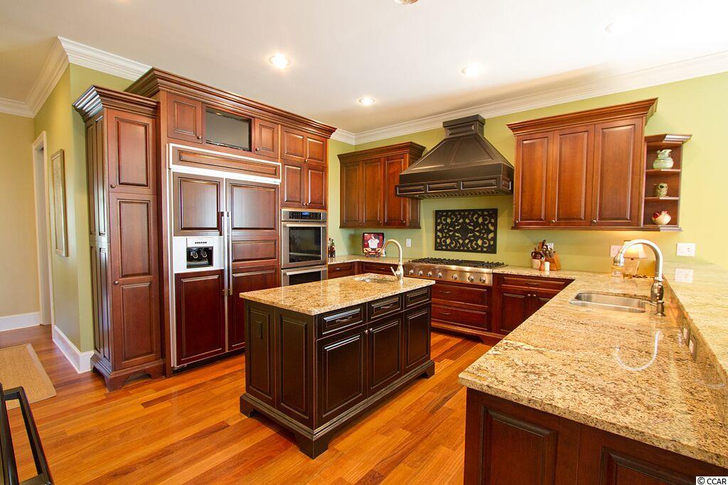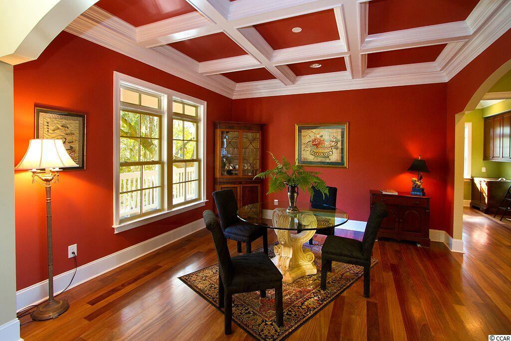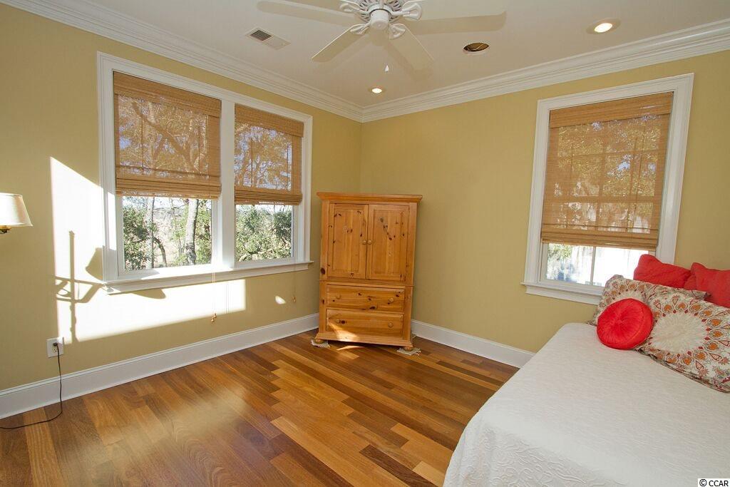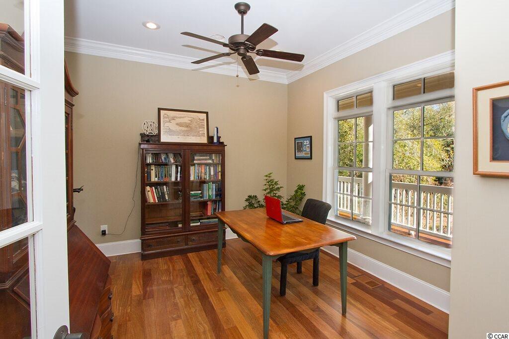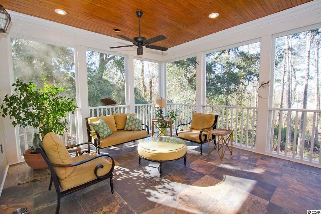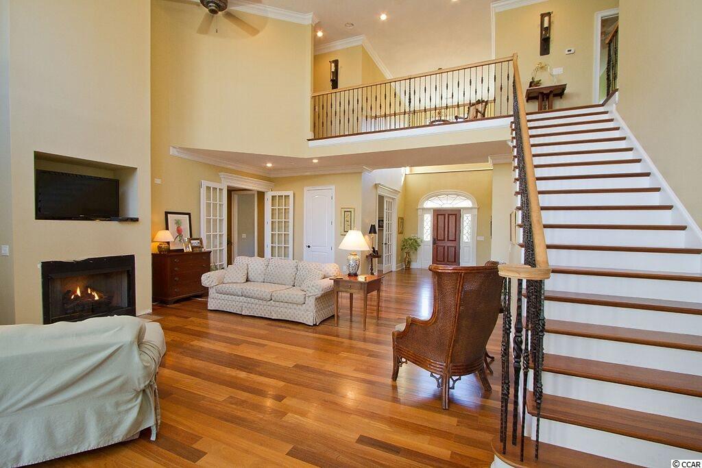 Handsome Lowcountry Home overlooking the Intracoastal Waterway and marsh in Ricefields, one of Pawleys Island's most beautiful river front communities. Enjoy spectacular sunsets over the Waccamaw River framed by beautiful moss-draped live oaks from a variety of perfect spots both inside and out! Charleston charm abounds throughout the 5300 heated sq. ft floor plan offering three levels. The main floor features a beautiful foyer, large living room with fireplace and vaulted ceiling, formal dining room with coffered ceiling, and fabulous kitchen with warm cherry cabinets, Thermidor refrigerator, double oven, six burner gas cooktop, commercial grade hood, granite counters, double sink, large pantry, breakfast bar, and breakfast room with a separate bar for entertaining. Also on the main level is the Master suite with tray ceiling, large tiled shower, private watercloset, heated tile floors and access to the adjacent study. Outdoor living spaces include a screened porch, pergola covered porch, an open, tiled deck, perfect for star gazing or sun bathing, and a ground floor lanai that is just begging for the addition of a summer kitchen! Upstairs is an additional 3 bedrooms and baths, flexible space for a den, study, or nursery, and an open deck for enjoying the gorgeous river and marsh views. The ground level was built as a mother-in-law suite with a bedroom, bathroom, and huge recreation room. There are three garage bays, and ample storage, including a double stacked closet that could be an elevator shaft. Other features include: Epay wood flooring on the front porch, Brazilian cherry floors throughout the enterior including the bedrooms, two 80 gallon water heaters, wrought iron railings on the staircase, and crown moulding. The home is fully wired for everything, including a generator. Does the front door look familiar? It was custom designed by a local craftsman to mimic the door of the beautiful plantation home at Hobcaw Barony. Ricefields offers its residents a full array of wonderful amenities including a community pool, boat landing access to the Waccamaw River, a beautiful nature trail, streetlights, and sidewalks. Ricefields...it's a great place to live!