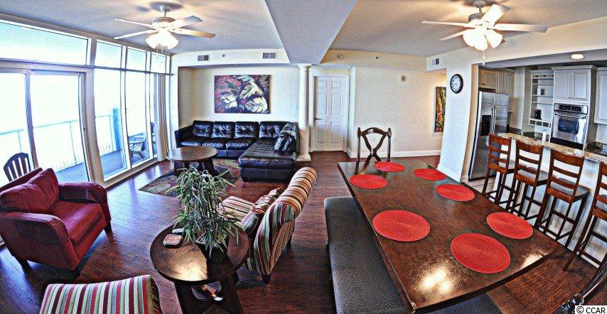 When you see this lavishly-appointed fifth-floor end unit at Ocean Blue Resort, you might just decide not to share! This 5-bed, 4-bath oceanfront condo is absolutely perfect for Summer Rentals, though, as families will love all the space that the open floor plan provides, the full granite-and-stainless-equipped kitchen, and the breathtaking view from its private balcony. Whether youre looking for a lucrative rental property or just your very own slice of heaven on the beach, this gem is everything anyone could want from an oceanfront condo and then some. Dont delay; book your showing today!