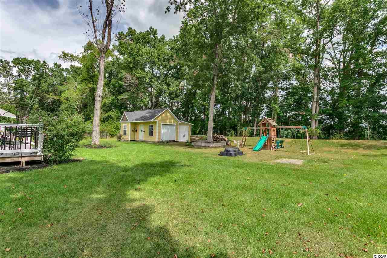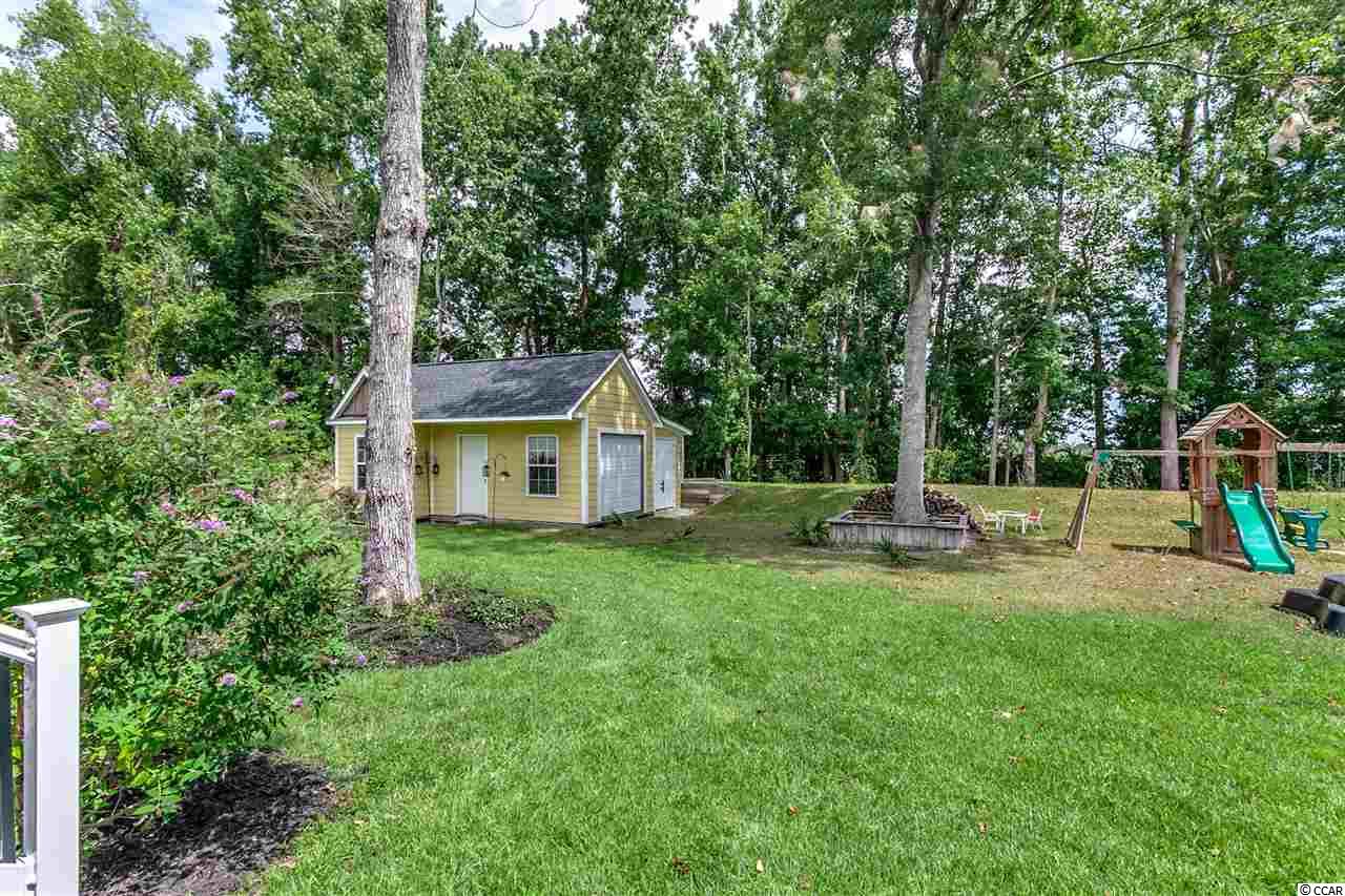 Pristine in Pelican Bay the gated Waterway Community. This spectacular 5 bedroom/ 4.5 bath custom build home offers 2 master suites, media room, beautiful laminate wood floors, ceramic tile, crown moldings, fully equipped kitchen with stainless steel appliances and luxurious granite and this home is also handicap accessible with handrails in doorless shower, handrail for commode and pocket doors. You will enjoy the sun room, mud room, formal dining and spacious living room with fireplace. All this on a big half acre landscaped lot with detached workshop for all your hobbies and toys! Large backyard allows room for a pool! This beautiful, private neighborhood offers a boat ramp and day docks. Located in the Ocean Drive school district in North Myrtle Beach! Don't miss out on this amazing home!
