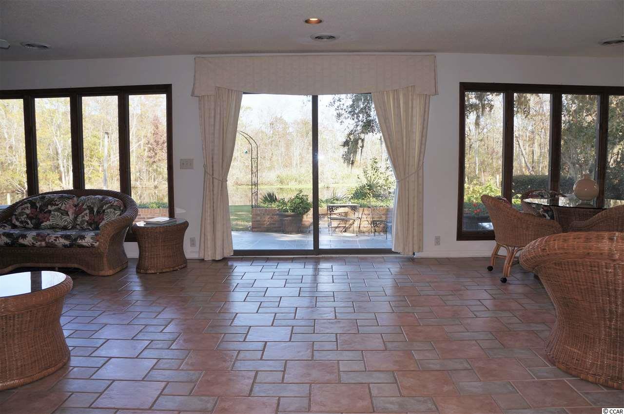Custom estate situated on Waverly Creek with direct access to the Intracoastal Waterway. 1.2 acres of Lowcountry living with beautiful oak trees. 200 feet of waterfront and private, 2 slip dock. Grand foyer and vast living room, overlooking the creek. Vaulted ceilings and 2-sided fireplace. Carolina room, 29 X 13, that includes living and dining space. The kitchen includes a keeping room, fireplace, large island, wet bar, butlers pantry and access to the screened porch. Large formal dining room and two half bathrooms encourage entertaining. Charleston garden with waterfall. The master bath has a large tub, separate shower, dual sinks, vanity, large walk in closet and separate water closet. Upstairs has a den and bedrooms, each with a private bath. 3-car garage. Above the garage is a guest suite with kitchen and bathroom. Rocking chair front porch, private Charleston garden, large patio, screened porch and private dock on the creek all add to outdoor comfort of this beautiful home.