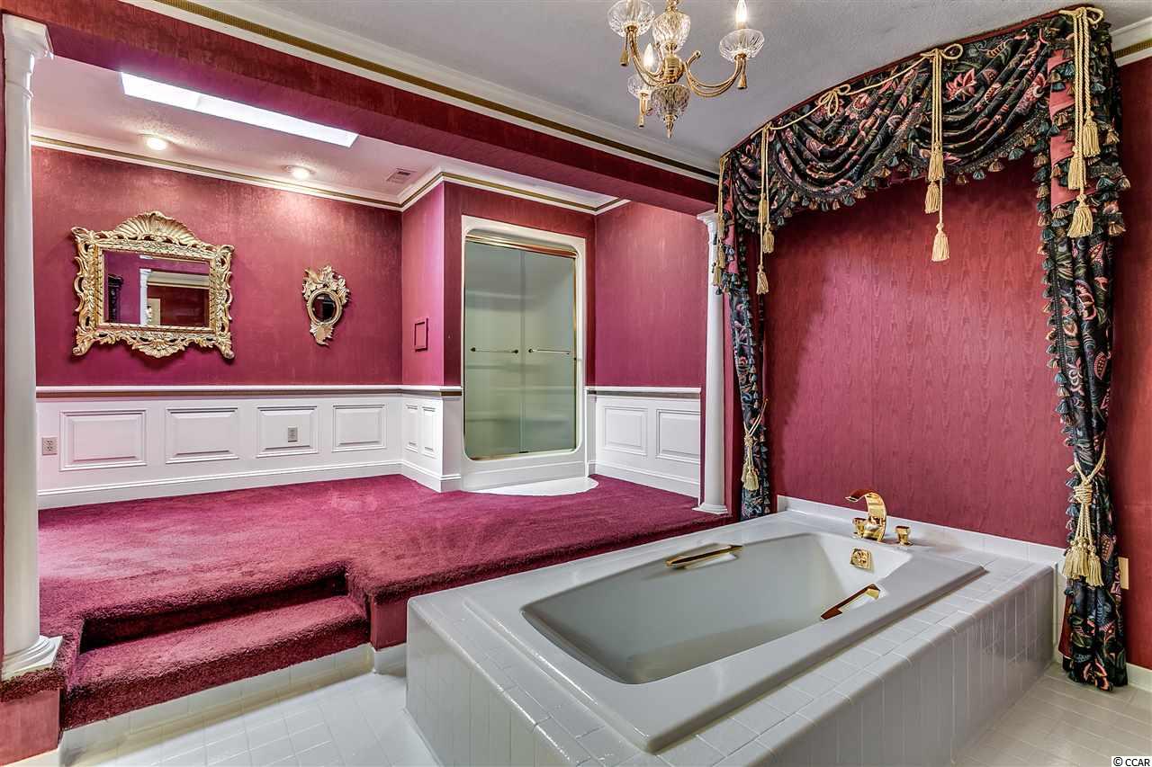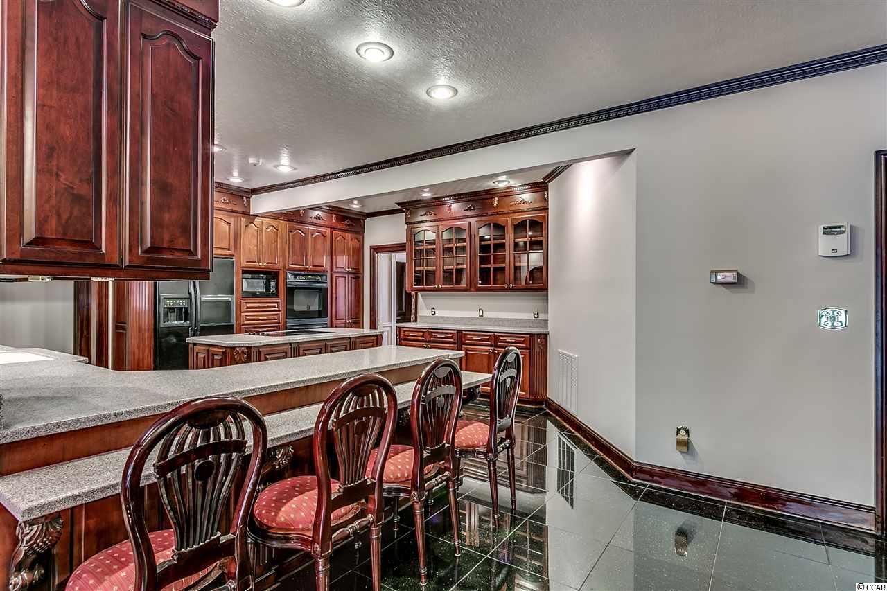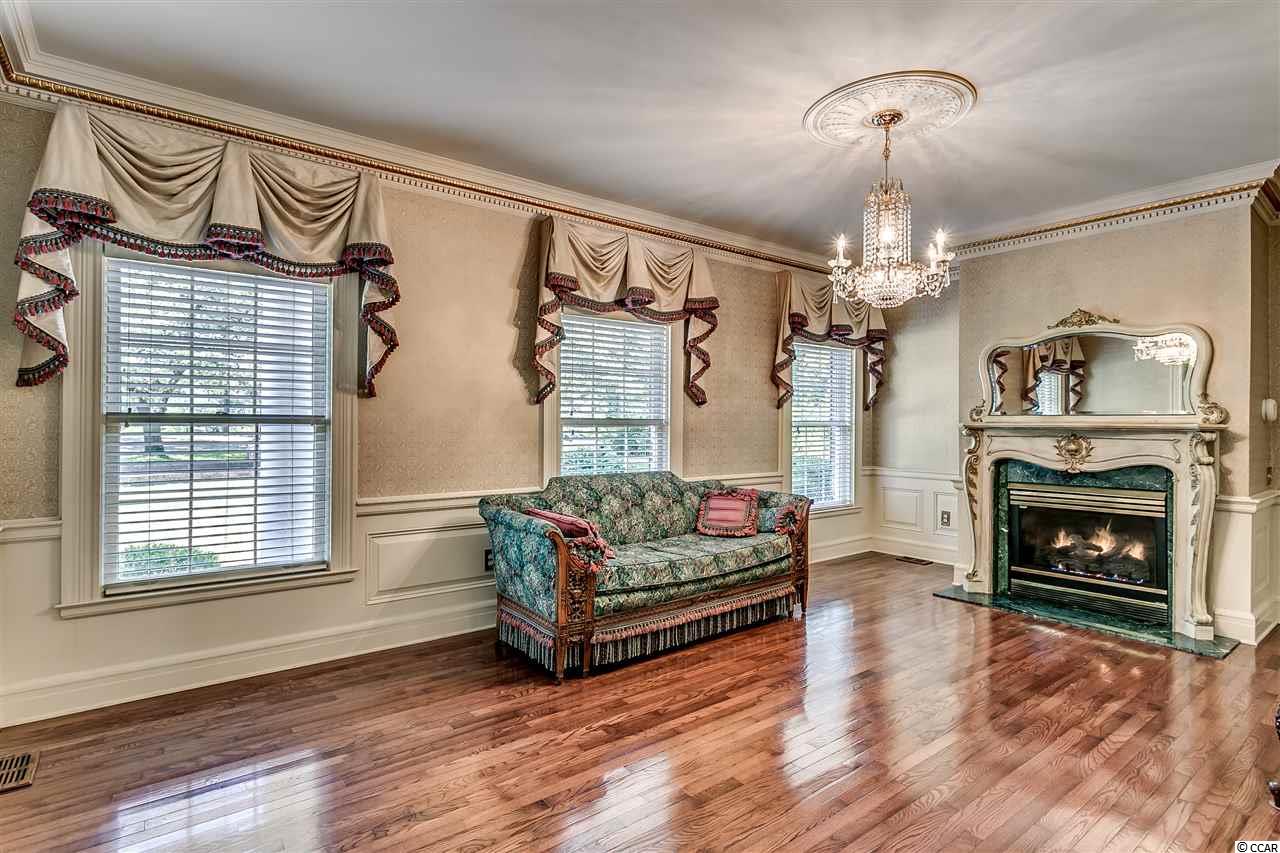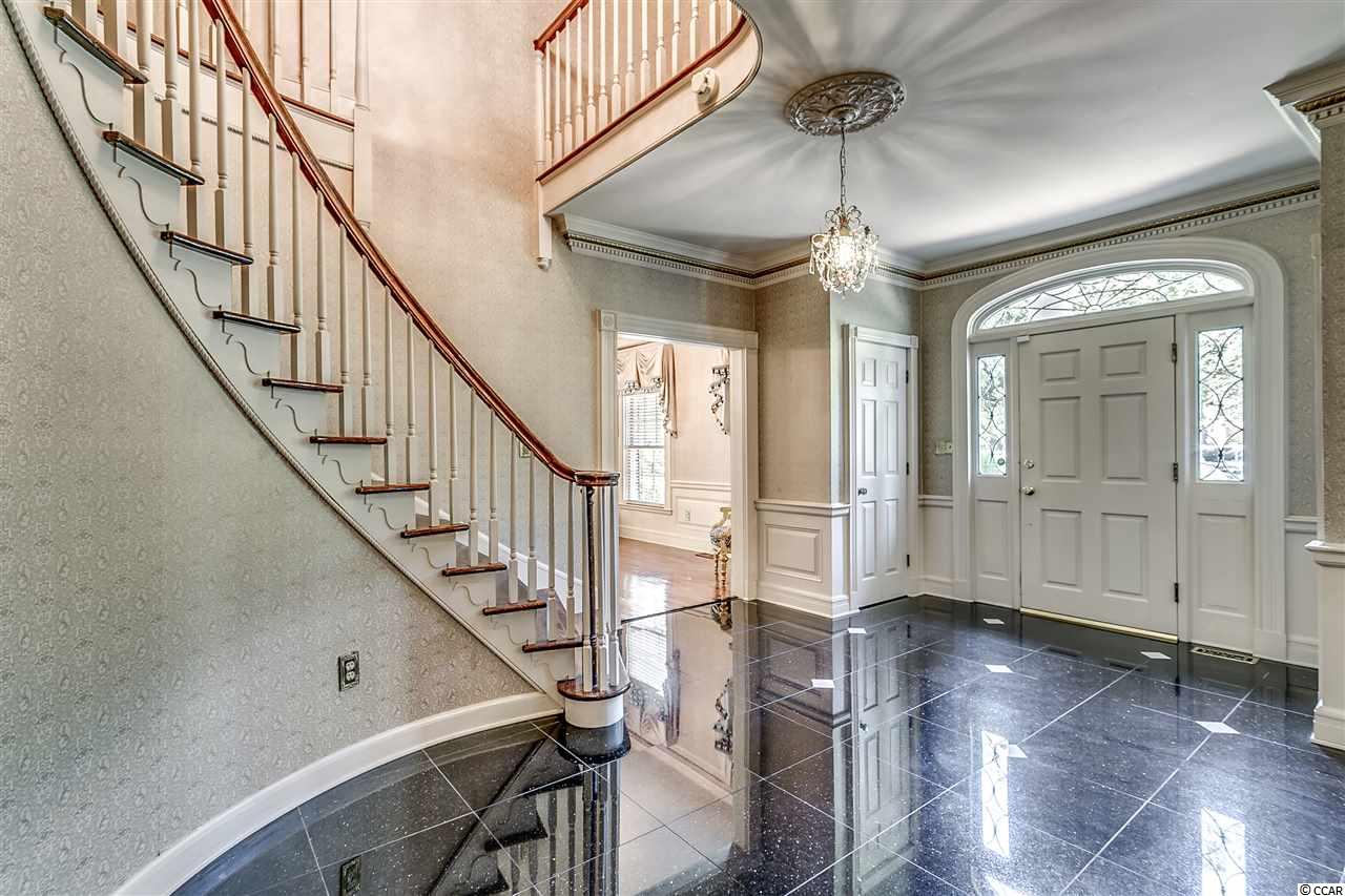 Exceptional waterfront lifestyle, offering a harmonious blend of comfort and splendor, this 5 bedroom, 4.5 bathroom estate is situated on 3.5 peaceful acres bordering the Waccamaw River. A perfect balance between formal and casual living, the home offers both grandeur and quiet spaces to retreat and recharge. Private backyard oasis features a heated salt-water pool and hot tub, a pool house with outdoor shower, bathroom and Summer Kitchen with a built-in BBQ! The design incorporates generous dimensions, incredible natural light and timeless finishes, such as hand-carved wooden architectural detailing throughout the home, five marble-set gas fireplaces, one of which can be converted to wood-burning and a combination of timeless hardwood and marble flooring. Elegant granite tiled foyer provides a graceful entrance to this spacious home. Sweeping 20ft ceilings, beautiful solid Cherry wood walls, a large marble-set fireplace and grand staircase set the stage for the Formal Great Room, which is crowned by the majestic crystal chandelier, adorned with a painting of the Four Seasons by artist Diana Neville. Beautifully appointed kitchen offers handsome granite floor, Corian counters, Custom wood cabinetry with hand carved accents, large kitchen island with cooktop, breakfast bar and breakfast nook with bench seating. First floor Master Retreat offers a spacious bedroom with two closets, which spills through double French doors down into a spacious sitting area with built in desks, built in bookcases, a beautiful bay window with bench seating and two additional closets. Floor plan encompasses two spacious guest bedrooms, which share a sophisticated bathroom offering a vanity and shower/tub combination. Just up the beautiful hardwood staircase, you will find the library, overlooking the Formal Great Room through awe-inspiring hand-blown glass windows and complete with a marble-set fireplace. A second Master Suite also awaits, featuring wainscoting, a cultured marble-set fireplace (color can be changed!) and a romantic Master Bathroom with Roman bathtub and separate shower, His & Hers sinks, and separate vanity. Spacious upstairs guest bedroom features a separate vanity area with built-in shelving and cabinetry, dazzling white bathroom with bathtub and a large, walk-in closet. Enjoy river views from all upstairs bedrooms! This well-planned house allows a seamless flow between indoors and outdoors, ideal for entertaining! Outdoors you will find your private backyard oasis, complete with a salt water pool, hot tub and pool house! Lush, mature landscaping provides the beauty of Azaleas, Hibiscus, Oak, Crepe Myrtle and Dogwood trees, all maintained by a 14-zone irrigation system! Encapsulated crawlspace with dehumidifier and all new duct work in 2016 has display pad in the kitchen to show the temperature and humidity of the crawlspace! Underground pet fence installed around perimeter of property, you will only need a collar and receiver! Community offers a lake with benches for watching wildlife as well as a private community boat landing and a covered picnic area, which are just to the right of your large lot! Seller has gathered information and estimates for building your own private boat ramp and dock, parallel to the community landing. This is an incredible opportunity to for an addition to an already amazing home! Location could not be better!! Enjoy all the perks of peaceful urban life while still being only a short distance away from all Myrtle Beach has to offer, as you are less than a mile from International Drive, providing convenient access to the beaches! Property is in Flood Zone-X!! NEVER flooded during hurricanes or flooding due to elevation!! Water was 15 ft from retaining wall at highest!