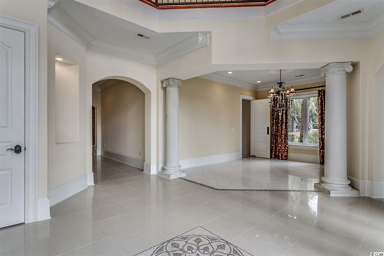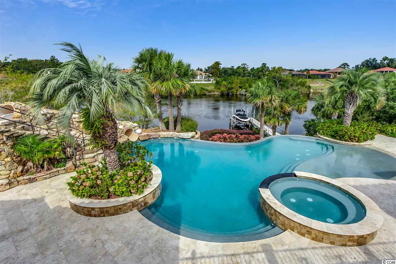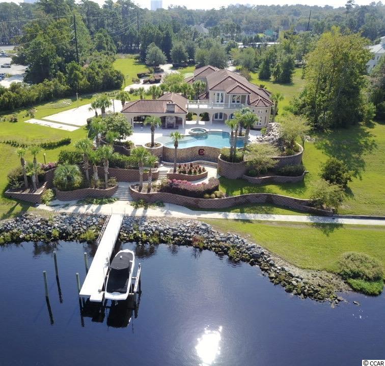 This magnificent waterway estate is paradise! Located in the gated community Bal Harbor at Grande Dunes, this 5 bedroom, 5 and 1/2 bath home is on 2 lots totaling 1.47 acres with 228' of waterfront directly on the Intracoastal Waterway. There are two docks on the property with one 13,000 lb. boat lift in place. The large resort style infinity swimming pool has an oversized spa with waterfall, rockfall, water slide and beach (zero) entry. The over 1,000 square feet of outdoor living space and covered summer kitchen are a dream! The front yard has a beautiful circular driveway with live oaks and azaleas all the way around a large putting green. The side yard has a full sand volleyball court and 4 elevated tee boxes which turns the putting green into a 100 yard par 3. Inside the large master suite has two closets, two showers, a large whirlpool tub and high ceilings. Plantation shutters throughout. The oversized 3 car garage has garage doors on front and back so that you can drive through one side and out the other. Other features include a home theater, game room with wet bar, 8 exterior security cameras with night vision, security system, outdoor speakers and landscape lighting throughout the entire property. Ownership in Grande Dunes includes membership to the Grande Dunes Ocean Club. Grande Dunes has a public resort golf course and a private members course, a deep water marina, on site restaurants and more.