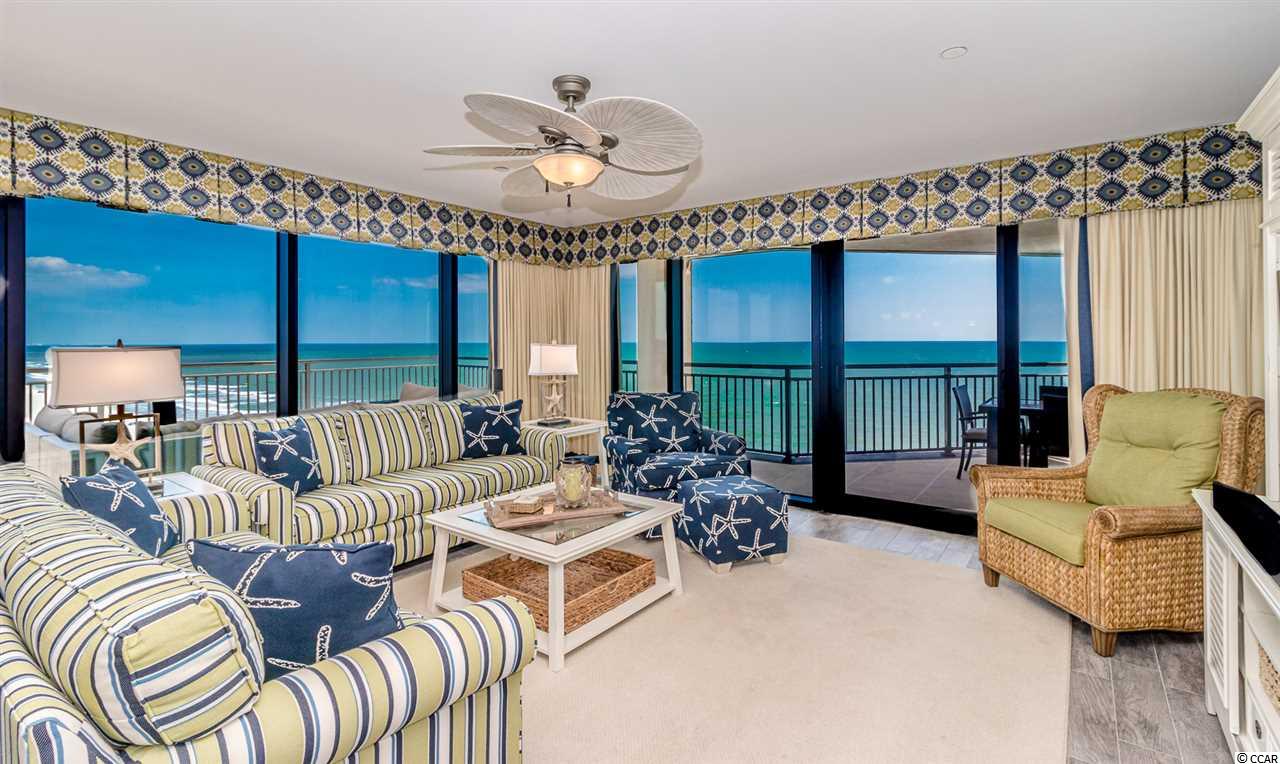 OCEANFRONT PENTHOUSE! It's all about location, location, location!This rare find (unit PH-8E) has recently undergone a complete transformation! This tastefully decorated unit has received a full remodel down to the studs. No expense was spared on both the finishes and furnishings. This immaculate penthouse comes fully furnished. Light fills the spacious living areas as soon as you walk in the door. Enjoy oceanfront views from the living room, dining room, kitchen and master bedroom! The open layout features a new kitchen with Kraft Maid cabinetry, Whirlpool Gold SS appliances, top grade Curava countertops (also in all bathrooms) and N'Finity wine cooler. The kitchen is open to the spacious dining room and living room which feature floor to ceiling windows/doors. Step out of the living room doors to an over-sized 1200 square feet wrap-around grand balcony with plenty of space to entertain! From the fully refurbished balcony you can see all the way to North Myrtle Beach! Enjoy the unobstructed sunrise views under the covered 300 square feet outdoor dining area or soak in the sun on the adjacent open air 900 square feet lounging space. The balcony comes complete with beautiful Portofino all weather wicker furniture. Hurricane grade, floor to ceiling Arcadia and Kawneer windows and sliding glass doors are newly installed. Surfmaster penthouse 8E is TRULY one of a kind and all you need are your flip flops and swim suit! This one won't last, so call today! Welcome home! Square footage is approximate and is not guaranteed. Buyer is responsible for verification.