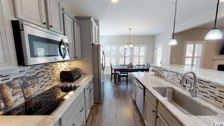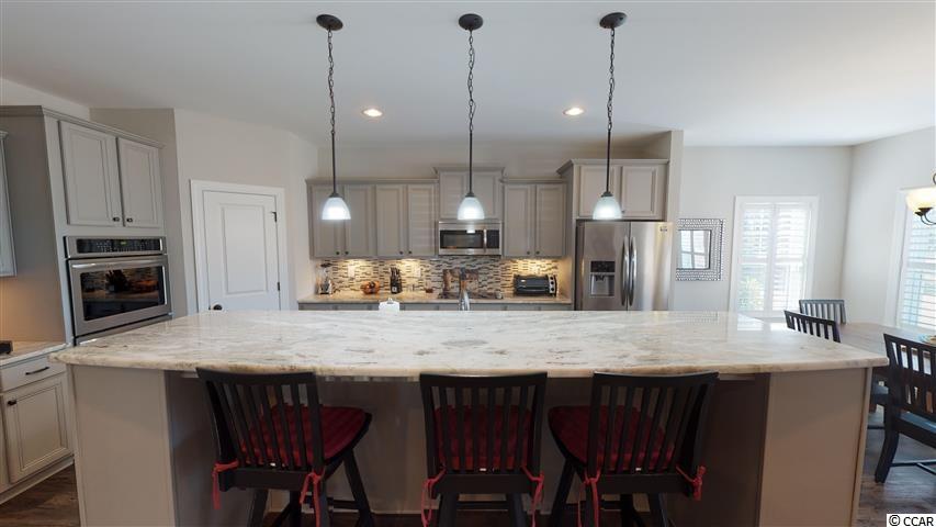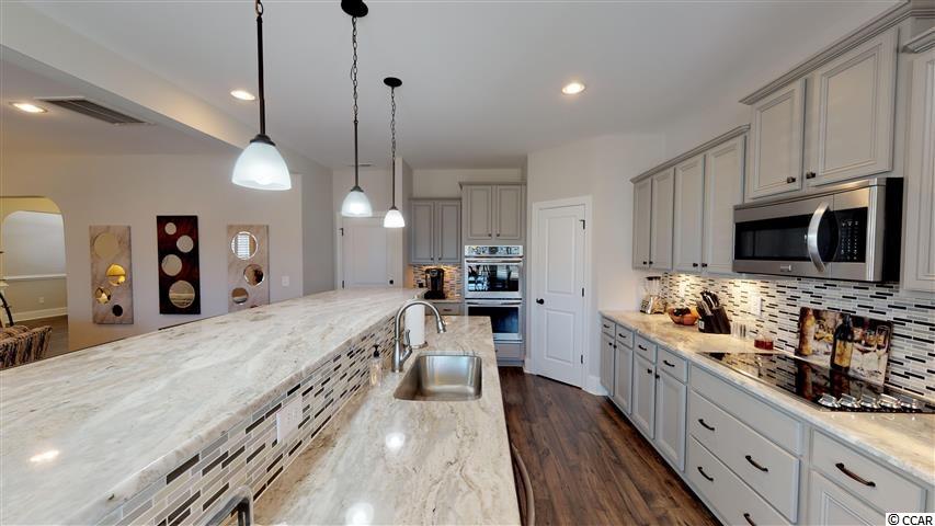 Do not miss this stunning home in the well desired neighborhood of Pelican Bay! This gated community is located on the Intracoastal Waterway right across from North Myrtle Beach with easy access over the Robert Edge Parkway Bridge. Located on a 0.98 acre lot, this home boasts 4 bedrooms with en suite bathrooms and a 5th bedroom that can easily be a bonus or media room. Open Concept Living with a large living room featuring a fireplace in the center and a stunning dining room with coffered ceiling off to one side. The kitchen is a chefs dream with an oversize island in the middle, double oven and beautiful granite countertops. Downstairs is completed with a large bedroom and en suite bathroom that could easily be used as a guest suite or mother-in-law quarters. Upstairs features one of the largest Master bedrooms and baths you have seen to date with the same beautiful granite as in the kitchen, walk in shower and a massive walk in closet. Two other bedrooms with attached bathrooms, a 5th bedroom and a spacious laundry room round of the top floor. This house has not one but two 2 car garages for all of your workshop or storage dreams. The oversize lot lends itself for privacy and lots of space for outdoor activities. A screened in porch and patio round off the outdoors in the backyard and are a perfect set up for entertaining. Pelican Bay offers a boat ramp for its residence and a opportunity to store the boat as well. This beautiful home was build in 2016 by H&H and has a ton of great features such as Plantation shutters throughout, tons of storage, security system and low maintenance exterior. Please ask for the feature sheet and check out the amazing 3D tour to explore this home! You do not want to miss this so call today to schedule a showing! Square footage is approximate and not guaranteed. Buyer is responsible fro verification.