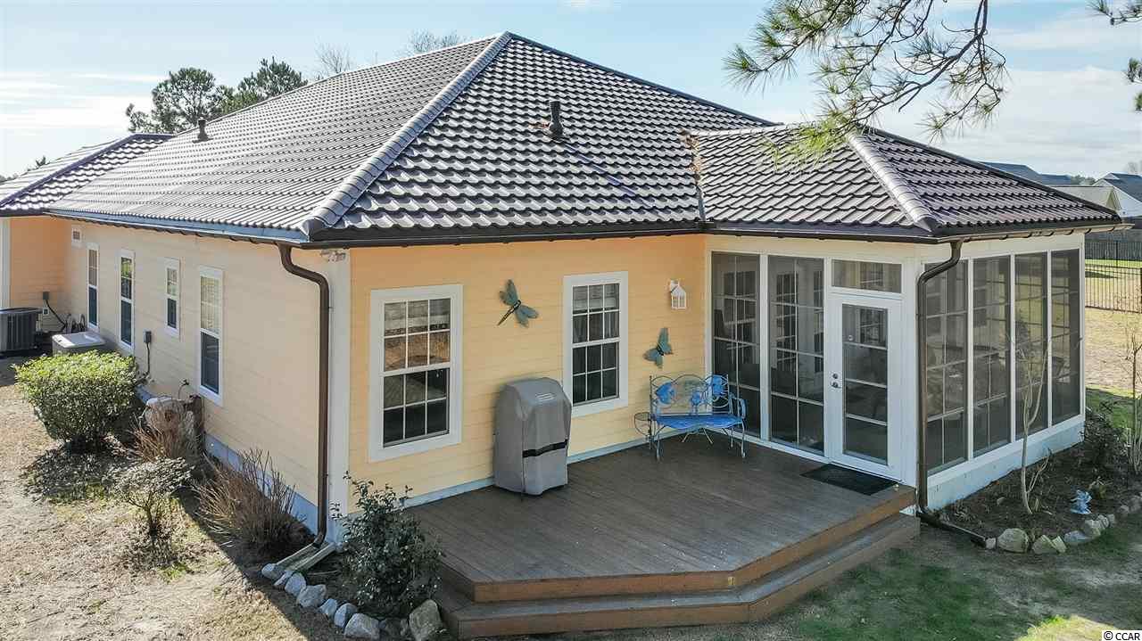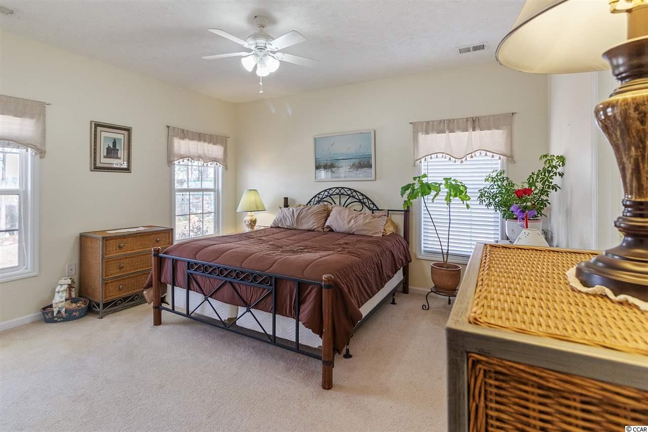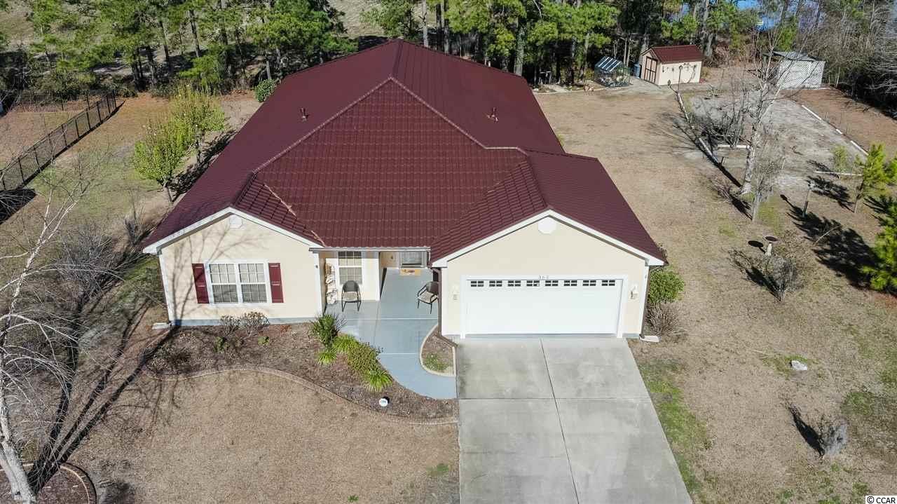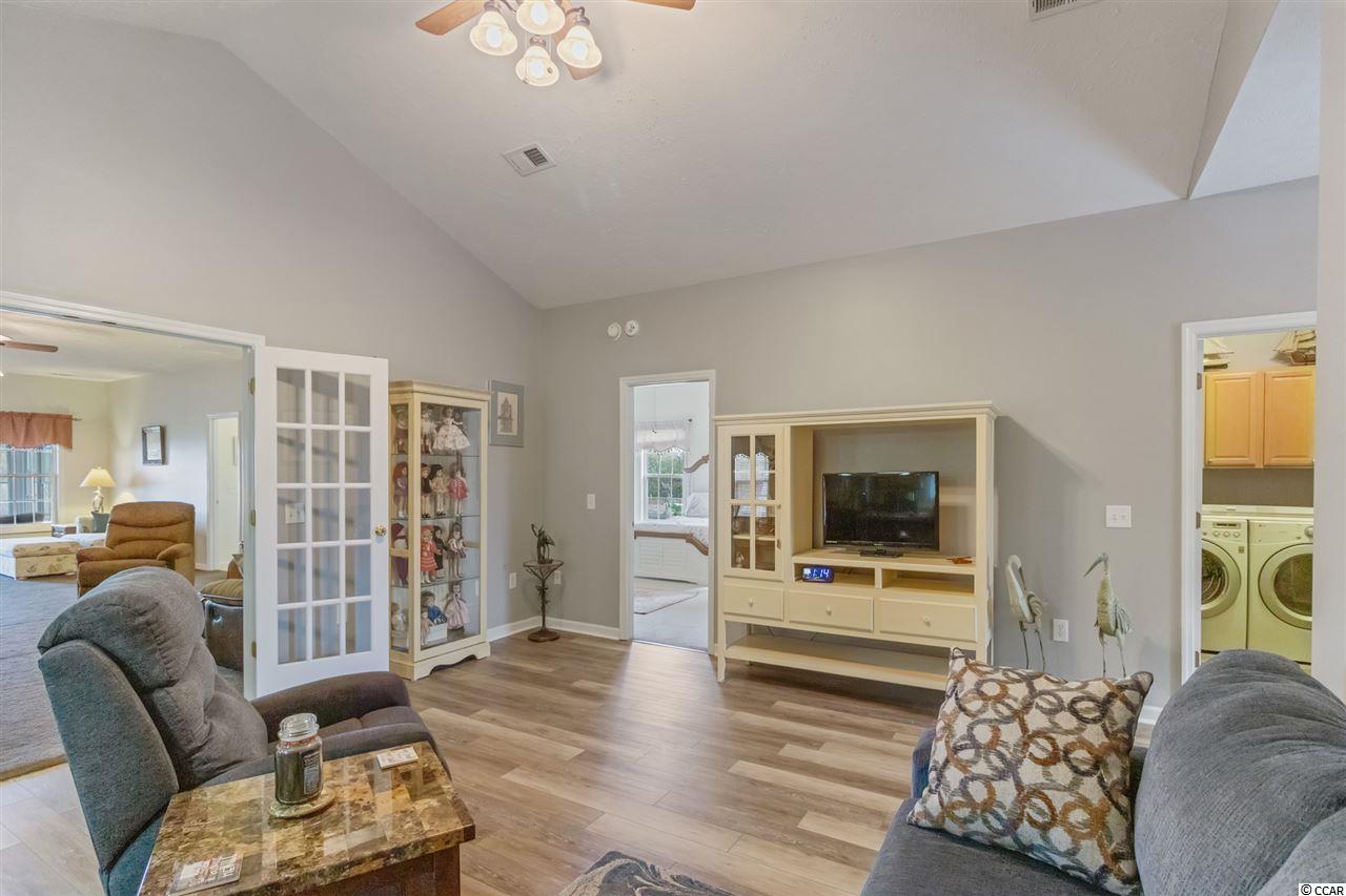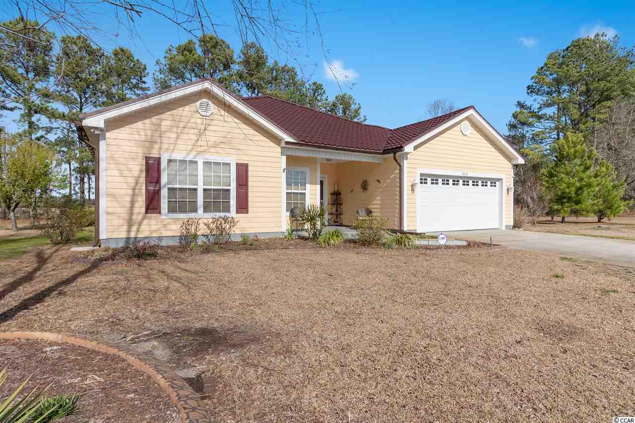 If you're looking for a spacious home with 2 master suites and great room sizes look no further! Over 1/3 of an acre in the NO HOA community of Porters Bay, just a few minutes from downtown Loris and a short drive to North Myrtle Beach. As you enter the single-level home you're greeted with a large foyer and new laminate plank floors. Vaulted ceilings and ceiling fans open the already bright room, connecting to the eat-in kitchen. The kitchen offers stainless appliances including a new upgraded LG refrigerator, counter space for a breakfast bar, and an area for your dining room. To the front of the home you have two rooms and a full bath down its own hallway- add a door and you could easily have a mother-in-law suite! The larger of the two bedrooms measures 23x11- ample space for large furniture or a sitting area! With a split floorplan, one of the two 'Master' bedrooms is on the other side of the living room. This room includes a ceiling fan, a huge walk-in closet, and attached full bath with dual-sink vanity. You'll be taken back at the size of the great family room at 32 x 17.5. This offers an additional living space with room for a sectional, pool table, formal living room, or all at the same time! From here you can walk to the guest bedroom, or the 2nd Master suite, which has a shower, soaker tub, and dual vanity. Going toward the garage you have a laundry room with included front-load washer and dryer. The two-car garage has extra depth allowing space for a freezer, shelving, or workbench. The sunroom/screen porch at the back of the house is fully enclosed, with full-wall windows allowing you to enjoy the outdoors regardless of the weather. The Worthouse roof is a major upgrade - the look of terracotta with the durability of a steel roof! Including a 50 year warranty and is rated against hail and up to a category 5 hurricane- with upgraded seamless gutters to match! If you enjoy gardening there is plenty of room in the garden, with an included detached shed and greenhouse to keep plants safe year-round. With so many custom features and no HOA you'll want to put this to the top of your list! Square footage is approximate and not guaranteed. Buyers responsible for verification.