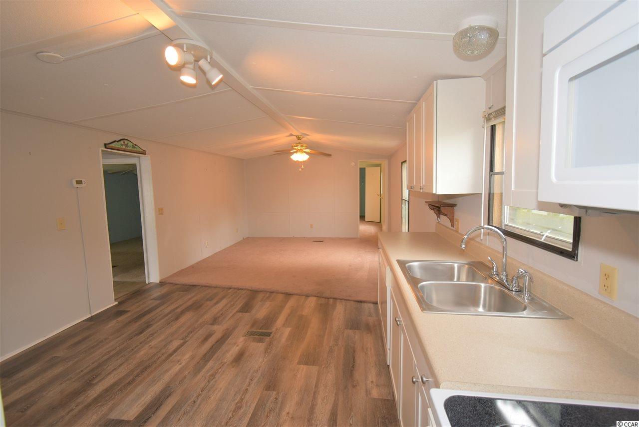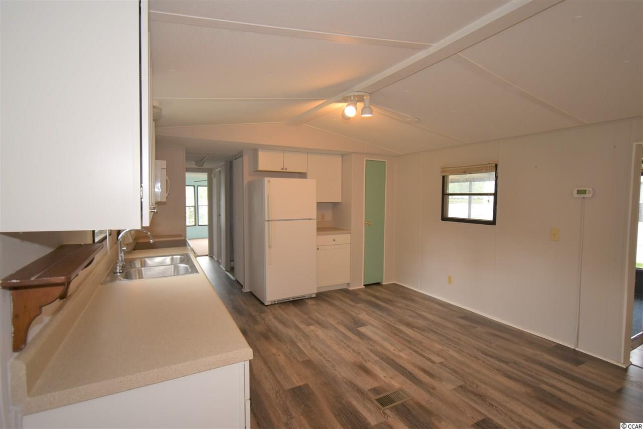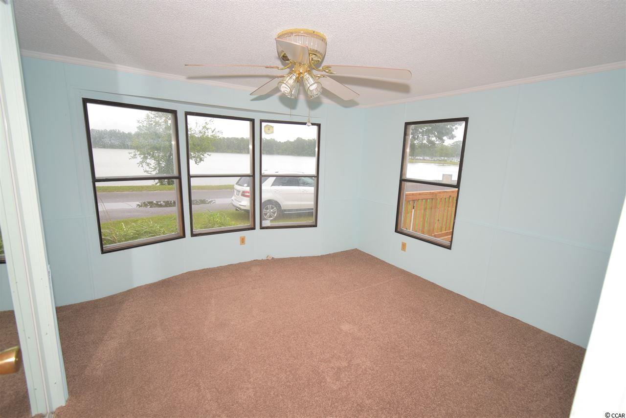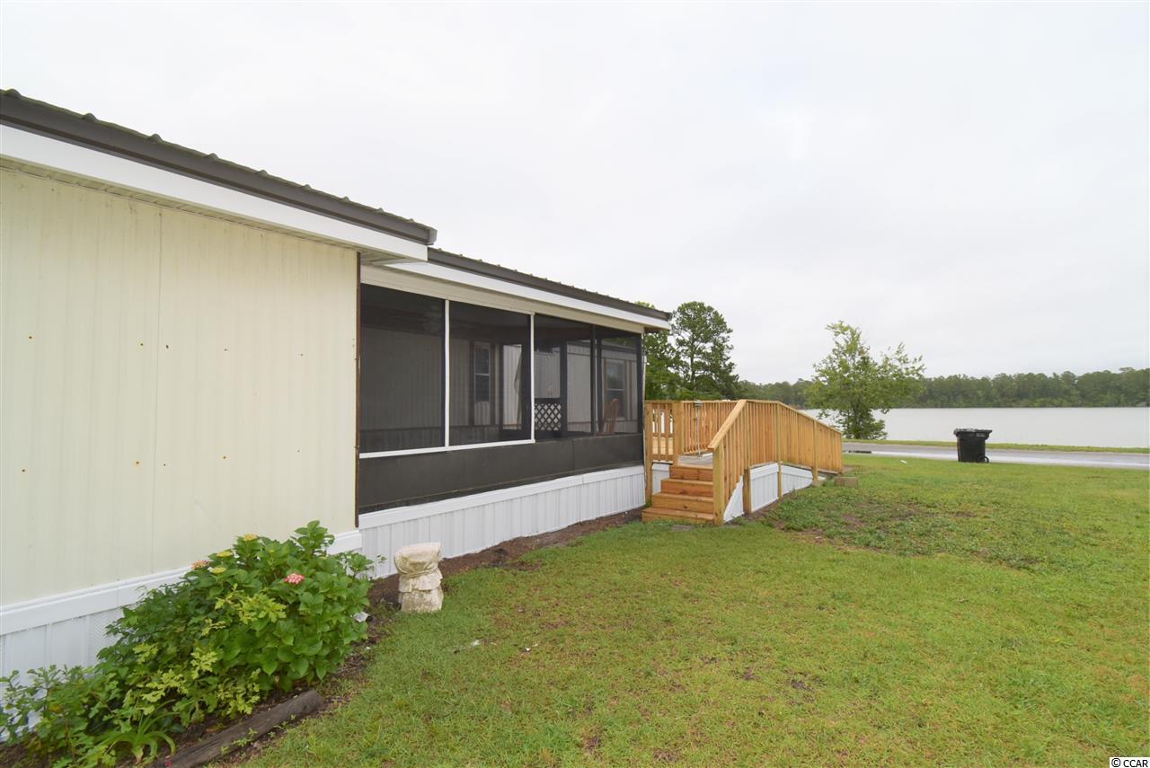 Spacious 4 bedroom, 2.5 bath mobile home on corner lot (leased land) facing the lake! Home offers a open concept living, dining and kitchen areas, a huge screened porch, New large front deck (with ramp, not new), great yard and 2 sheds! New metal Roof! New back door stoop and steps. New skirting. New light fixtures in 2 full baths. New kitchen cabinets, new LVP flooring in kitchen and new microwave! Some new carpeting in home as well. Wood shed was built 3.5 years ago. Very sturdy material. A must see!