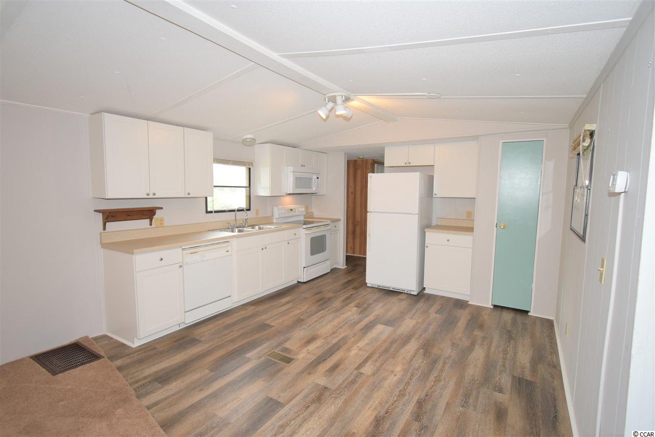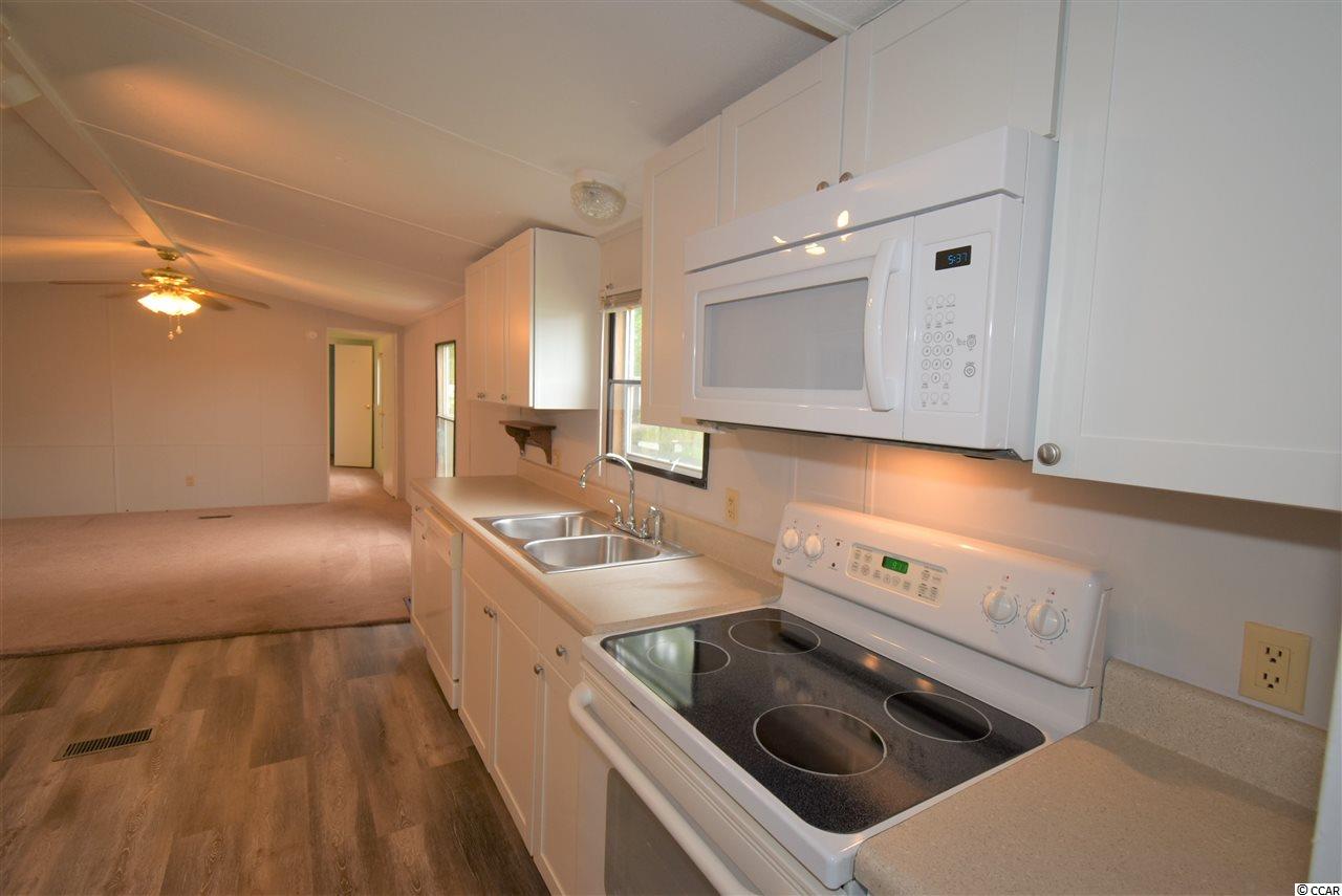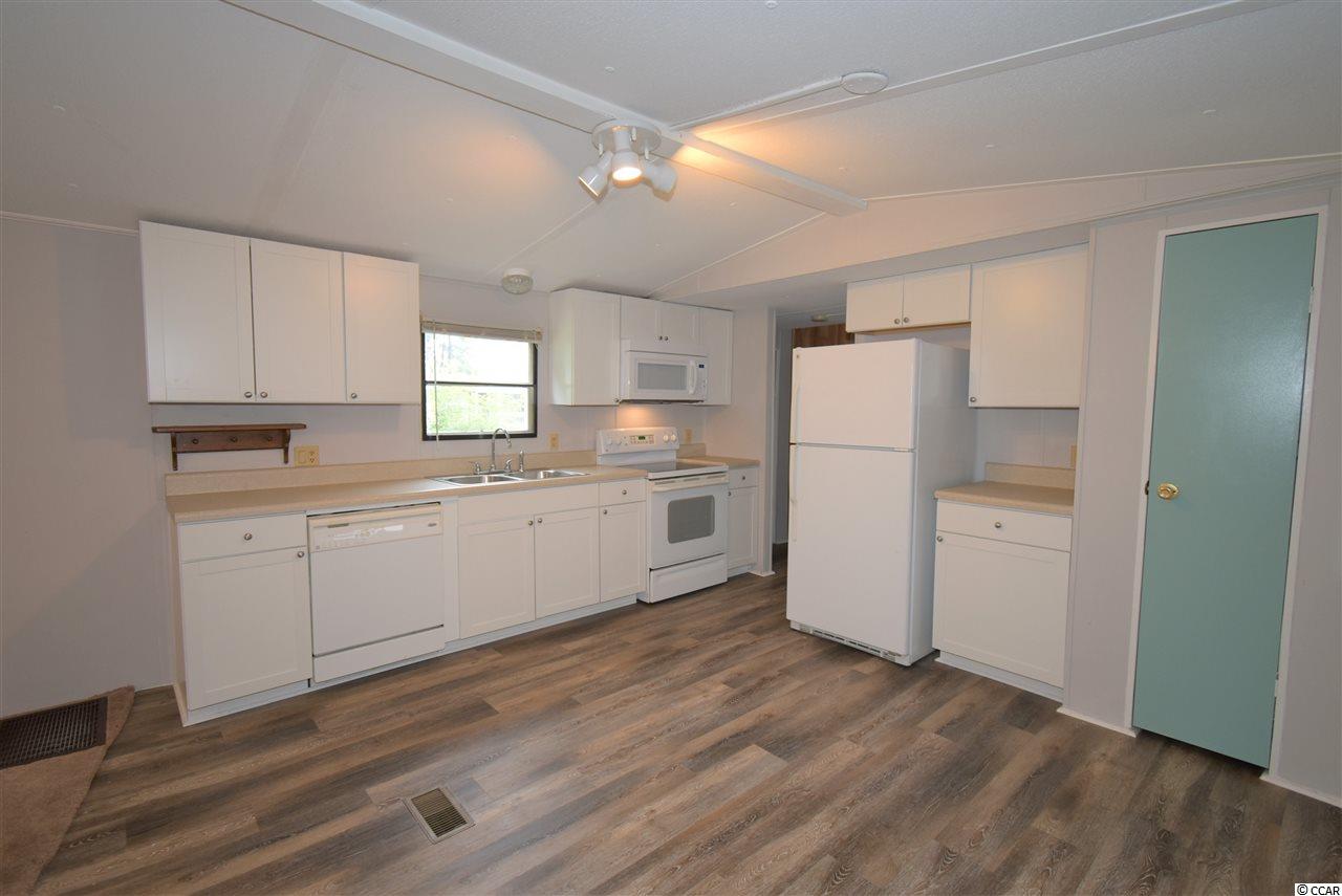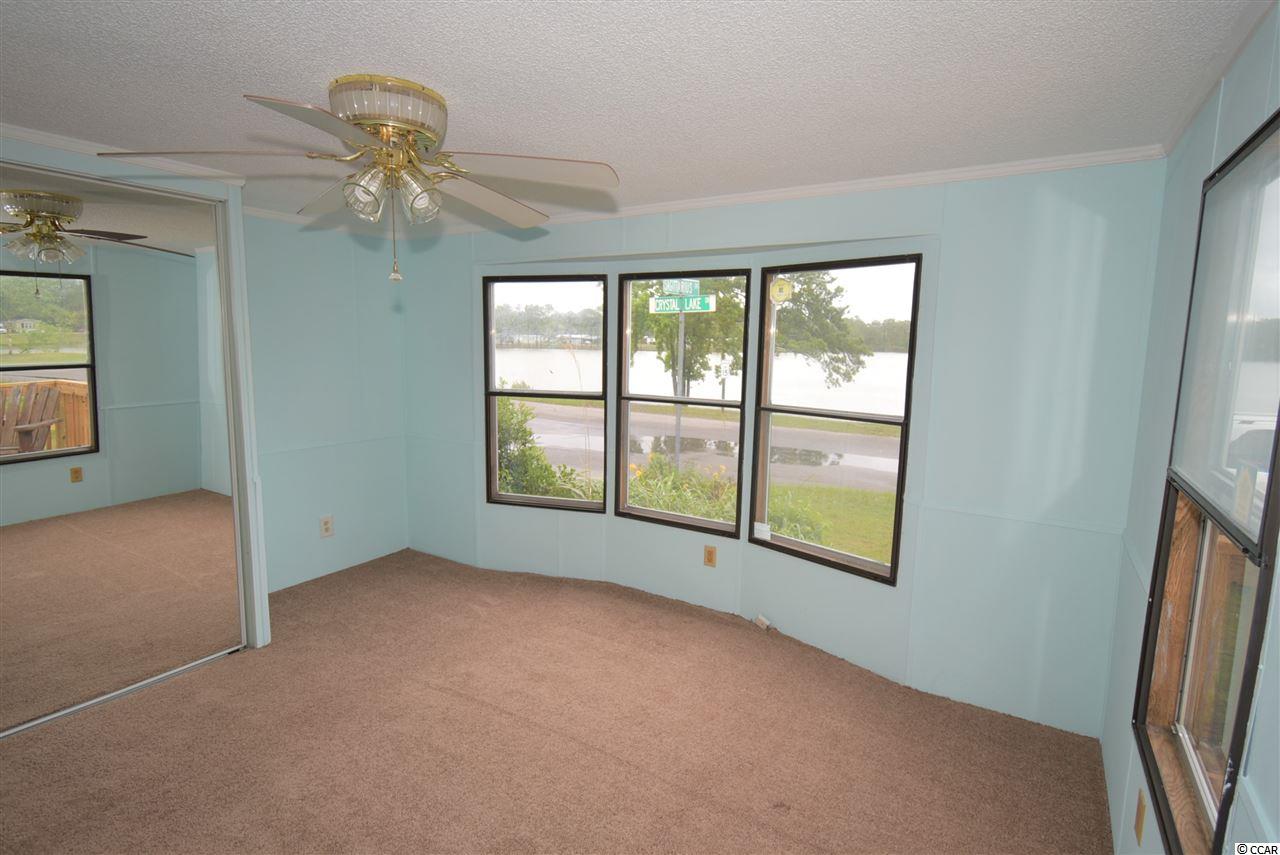 Spacious 4 bedroom, 2.5 bath mobile home on corner lot (leased land) facing the lake! Home offers a open concept living, dining and kitchen areas, a huge screened porch, New large front deck (with ramp, not new), great yard and 2 sheds! New metal Roof! New back door stoop and steps. New skirting. New light fixtures in 2 full baths. New kitchen cabinets, new LVP flooring in kitchen and new microwave! Some new carpeting in home as well. Wood shed was built 3.5 years ago. Very sturdy material. A must see!