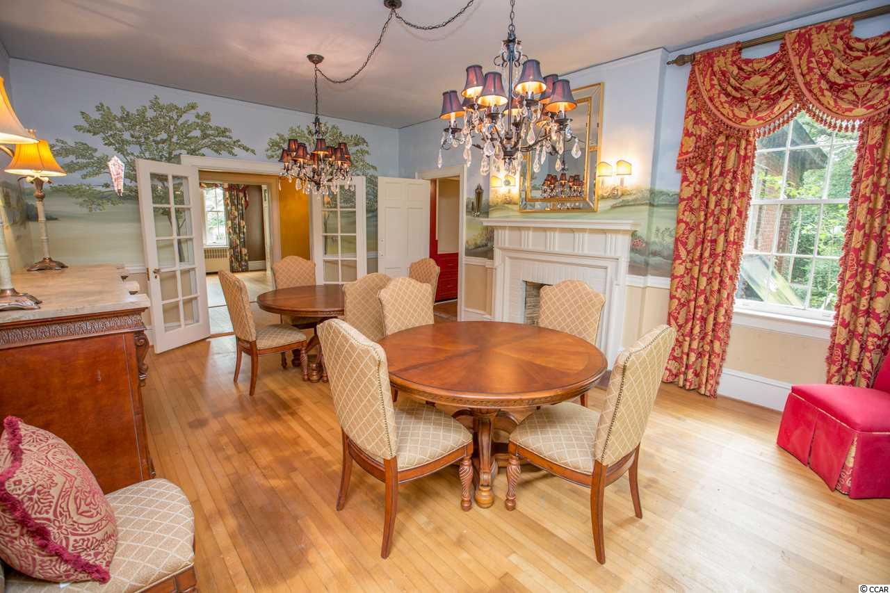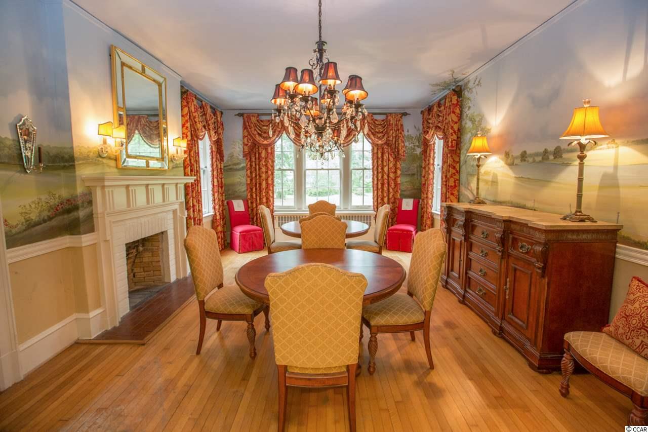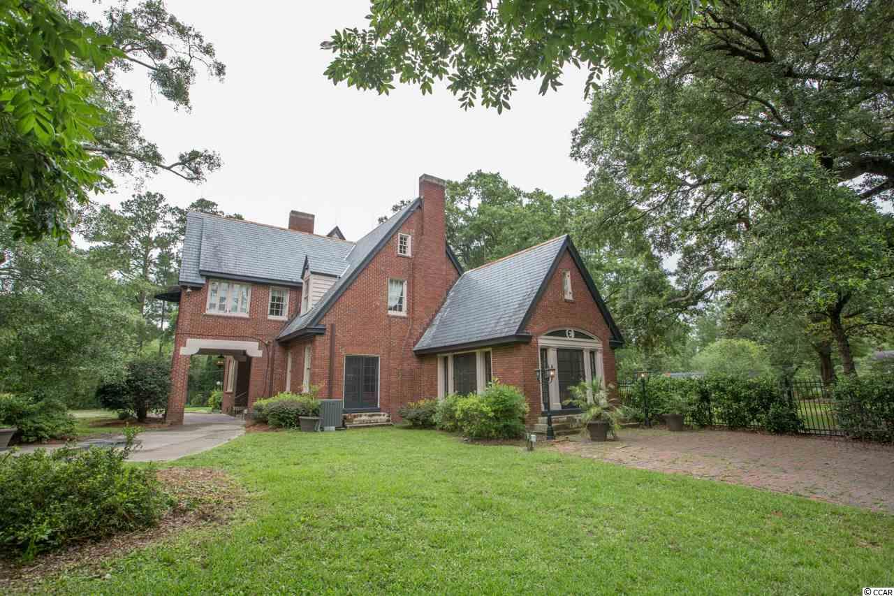 Circa 1924 - A rare opportunity to own this stunning English Tudor style home with over 6,200 heated/cooled square feet and situated on 2.09 acres of land adorned with enchanting live oak trees is located in the heart of Conway SC and just 25 minutes to area beaches. Henry Ambrose the GM for Conway Lumber 1906-1937 had the home built for his lovely wife Maude. She named the home Dunmeade, which was her Grandmother's name. The brick residence with its steeply pitched slate roof, Porte Cochere entry from the rear that gives you a place to pull up out of the weather, a detached 3 bay garage all are rich in 1920's architectural details. The charming entrance welcomes you to gracious living and dining rooms perfect for entertaining. Also on the 1st floor you will find your kitchen with a butler's pantry, huge additional walk in pantry and rear entry porch. One winding stairway from the entry of the home and one rear stairway in the kitchen will take you to the 2nd floor that offers your master bedroom with a private bath and plenty of windows that fill the room with natural light. Three additional bedrooms, 2 full baths, a large office/7th bedroom with walk in closet, built in bookshelves and a laundry room complete the 2nd floor. The 3rd floor boasts 2 bedrooms, a full bath, extra storage plus a spacious bonus/media room that was once used as a kindergarten classroom. This 6 bedroom, 4.5 bath home even includes a basement with it's own wine cellar. Additional features include swimming pool, ornamental fence with brick post with decorative lighting on top, swing entry gates, 8 interior fireplaces, white pine and oak flooring throughout. Garage could be restored or redesigned as a pool house amenity with a kitchen for entertaining. With the addition of a stairway the 2nd level over the garage could be assessed and has many possibilities since it is framed as an apartment. Would also make a great art studio or in-law retreat! Radiators in home and boiler in basement left for historical purposes only. Own a piece of history! Take the online tour today to see this special property or call listing agent or your Realtor for appointment. Square footage is approximate and not guaranteed. Buyer is responsible for verification.