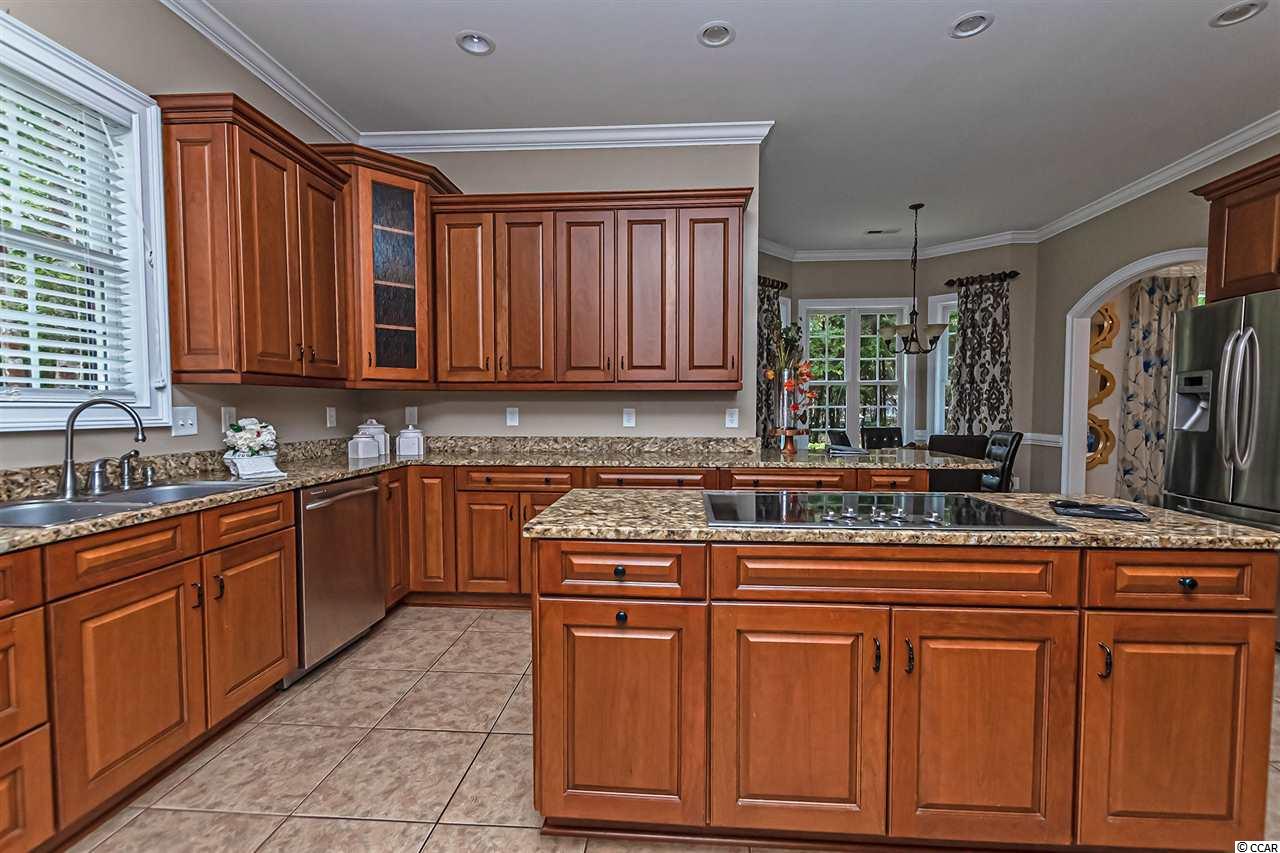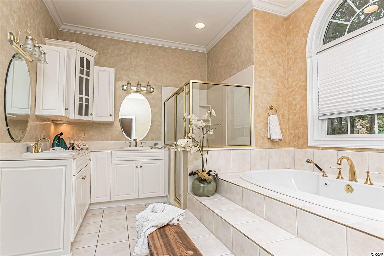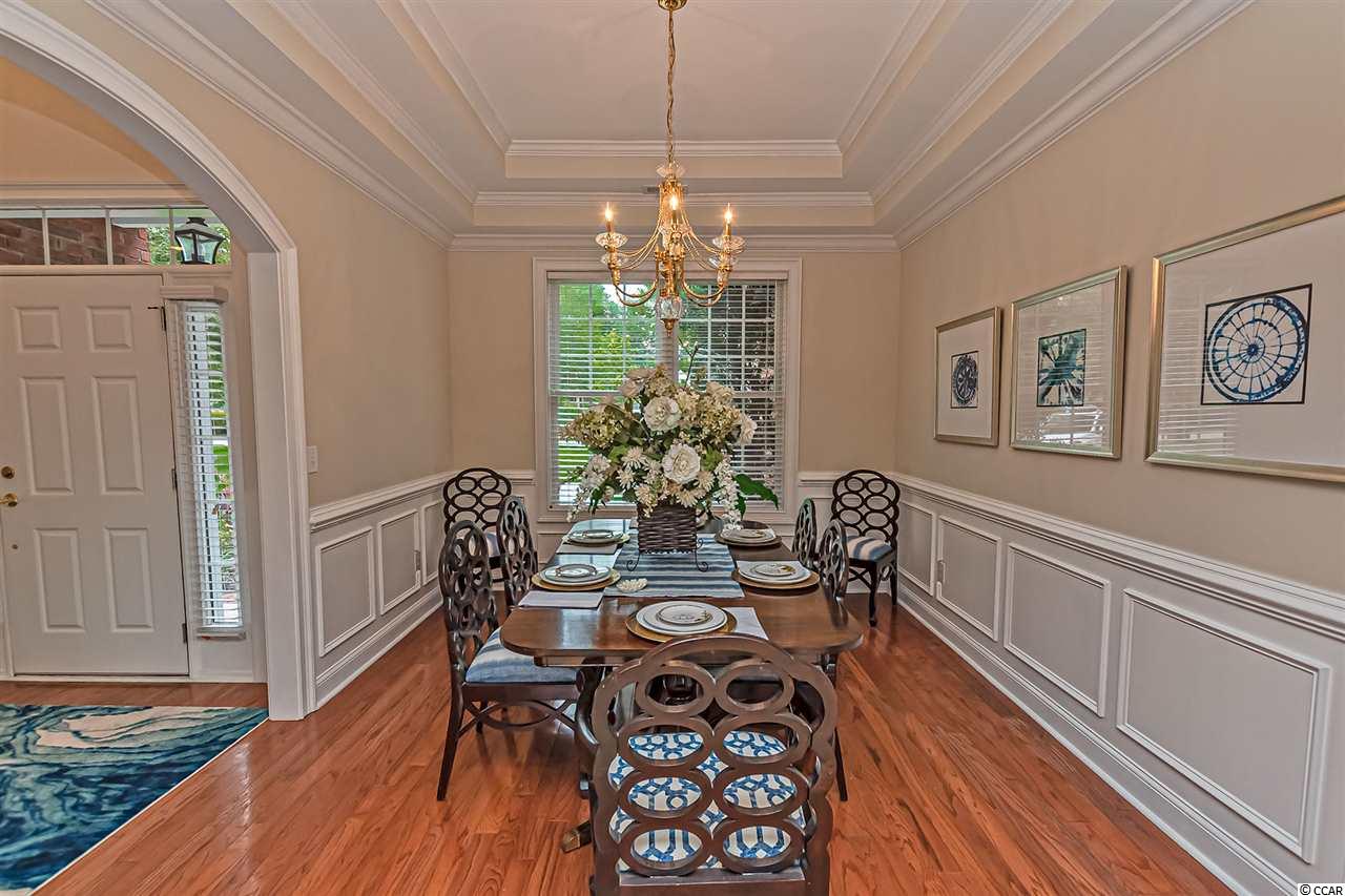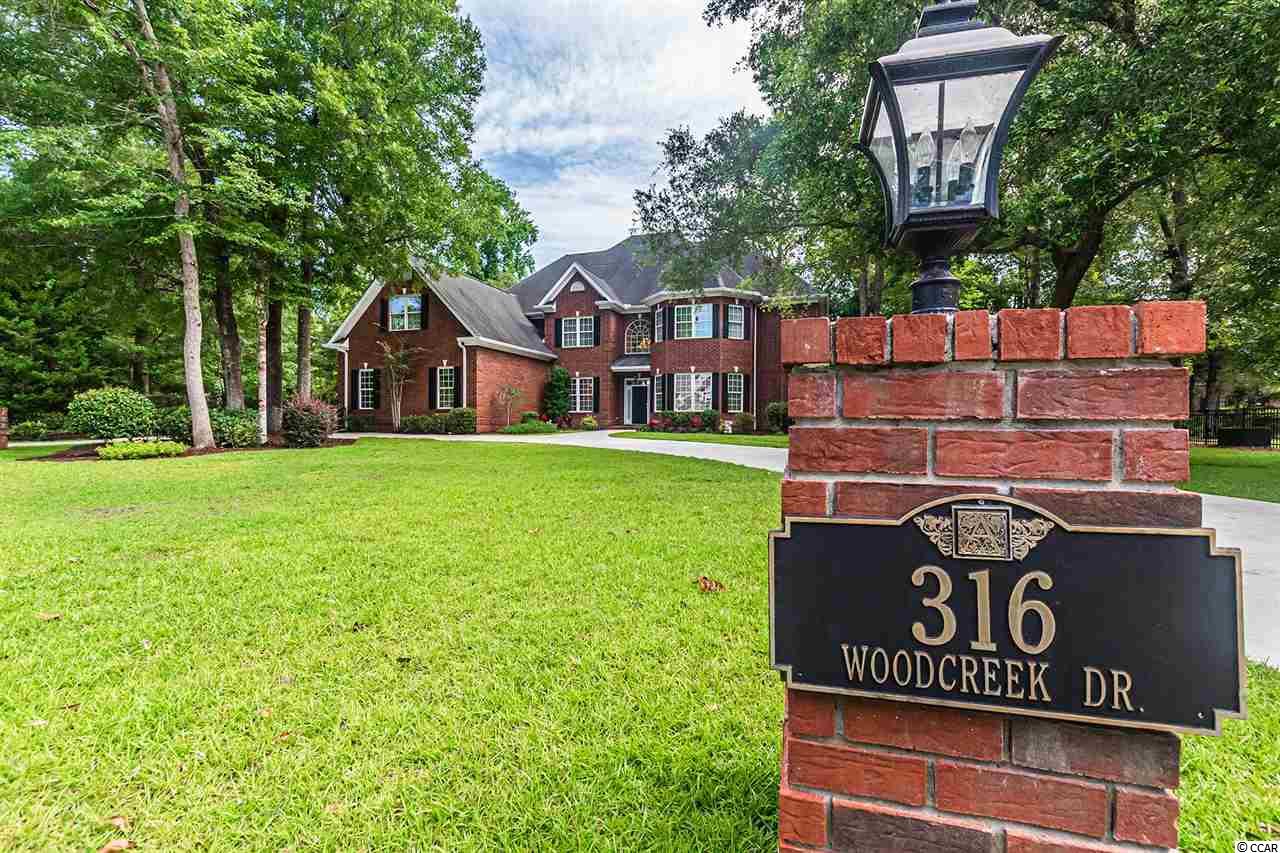 All brick stately home nestled in a small, quiet, hidden gem of a community called Creek Ridge Plantation. This lovely 5 bedroom (4 bedroom + bonus room), 5.5 bath home with a 3-car garage and circular driveway has great curb appeal. You are sure to be impressed from the moment you drive up to this home with its lush landscaping and pretty setting. Perfect for the large or growing family, those who love to entertain and host several guests, this spacious custom-built home is situated on a acre lot at the end of a cul-de-sac and offers privacy in a peaceful setting. Decorating will come naturally in this home with arched doorways, wall niches, shadow box molding, chair rail and crown molding throughout. Enter the home into the stunning 2-story foyer with attractive chandelier with motorized lift for cleaning, cherry hardwood floors, shadow box molding, chair rail and an impressive staircase. A curved entryway to the right of the front entrance leads to the formal living room with hardwood floors and windows overlooking the front yard. The foyer opens to a spacious 2 story family room with soaring ceilings, carpeting, gas burning fireplace, built-in bookcases and an array of windows overlooking the lovely landscaped and private backyard. The chef in the family will enjoy the gourmet kitchen with granite countertops, stainless steel appliances, 42 inch cabinets with pull-out trays, ceramic tile, double oven, a work island with smooth top range, breakfast bar and pantry. The bright and cheery breakfast nook with bay window will be great for casual dining and the screen porch off the kitchen will be ideal for starting your day enjoying your favorite beverage. The formal dining room off the foyer will be the perfect spot for hosting holiday meals and more formal events. Spacious master bedroom suite with double tray ceiling, large walk-in closet, windows bringing in lots of natural light and screen porch overlooking the private backyard. French doors from the bedroom lead to a grand master bath with double sinks, whirlpool tub and walk-in shower. A bath completes the first level. A pretty staircase leads to the upper level that features 4 spacious bedrooms (3 bedrooms + bonus room), 4 full baths, an office area and laundry room. 2 of the bedrooms and bonus room have ensuite bathrooms and the other bedroom has two closets and a full bathroom adjacent to it. The 5th bedroom or bonus room (25x20) features a wet bar with sink and full bath and has previously been used as a game room. The 3-car side load garage and circular driveway will provide lots of parking for cars, golf carts and boats. The oversized patio will be great for grilling and creating memories with family and friends. Termite bond and irrigation system. Most of the house interior recently painted, 2 newer HVAC systems (2016), 2 newer hot water heaters, new fans, newly sodded and professionally landscaped yard. Neighborhood access to Collins Creek via a lighted boardwalk and day dock. Boat storage is allowed. Enjoy the best of Murrells Inlet living in this well designed, spacious home in this small, private neighborhood with custom built homes. This is a fabulous family home! Do not miss seeing this one, it will surely impress! Conveniently located just minutes from the beach, golf courses, Murrells Inlet Marshwalk, restaurants and shopping. Owner is a licensed SC Real Estate Broker in Charge. Owner Financing may be available to qualified purchaser. Square footage and measurements are not guaranteed. Buyer is responsible for verification.