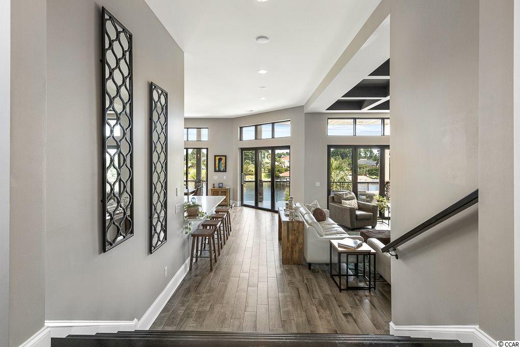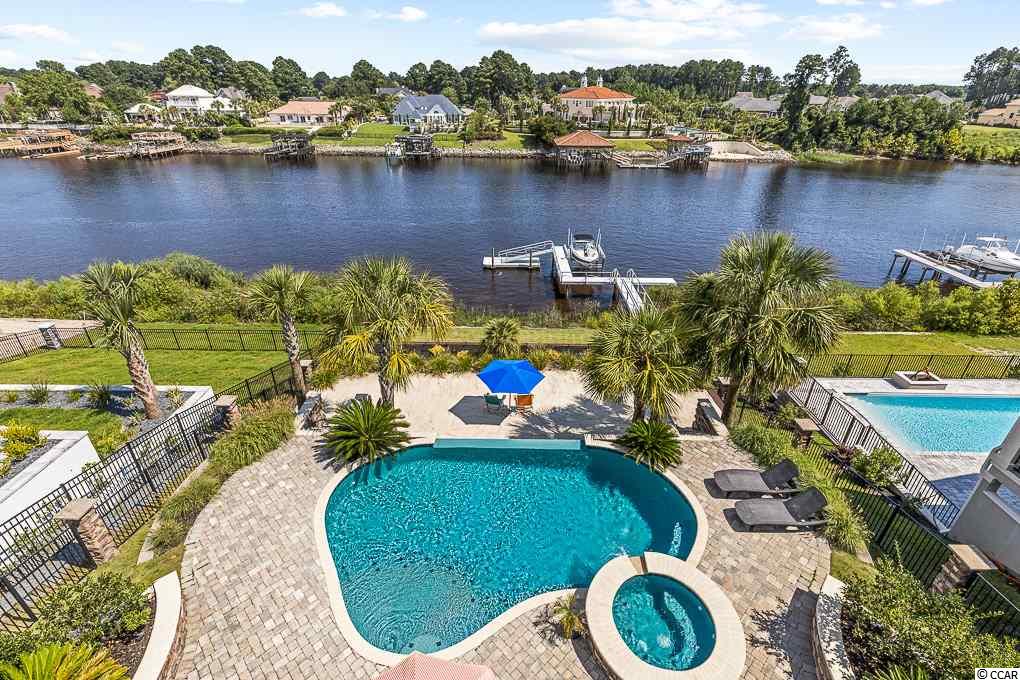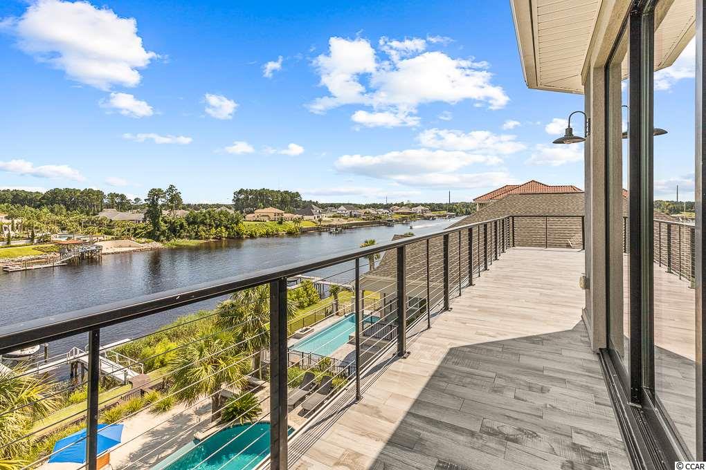 Welcome to this stunning Intracoastal Waterway Oasis in the gated Carolina Waterway Plantation community in Myrtle Beach! This modern designed custom dream home features all of the bells and whistles including customized telescoping and accordian doors that offer panoramic views of the waterway from every level of the home. The gourmet kitchen boasts a six 48"" burner gas range with griddle, quartz counters, double oven with convection, and seamless backsplash with hidden electrical outlets mounted under the cabinetry, whole house water filtration and reverse osmosis. The wide open living spaces throughout the home are ideal for indoor/outdoor entertaining. The main level features living, dining and kitchen spaces along with two bedrooms each with accompanying ensuite. The spectacular views from the enormous third floor master suite will take your breath away. Relax and unwind in a deep soaking jetted tub or cool off in a large walk in shower. Custom closets, two additional bedrooms, and a gathering space on this level. The ground floor boasts some of the most unique features this home has to offer. In addition to a sixth bedroom complete with en-suite, this level features a large playroom and custom designed safe-room being utilized as a ninja gym. Open the doors from this level and hop in to your private, infinity edge, salt water pool with hot tub. When your ready for a little rest and relaxation, head to the second tier and soak up some Carolina sunshine on your very own sandy beach! No detail has been spared in this yard. Home features a floating dock complete with a 16,000 lb capacity power boat lift. Carolina Waterway Plantation is a gated waterway community with community amenities including community pool, playground facility, tennis courts, day dock, boat storage and boat launch. Now available for private showings, contact your real estate professional and make this dream home your reality today!