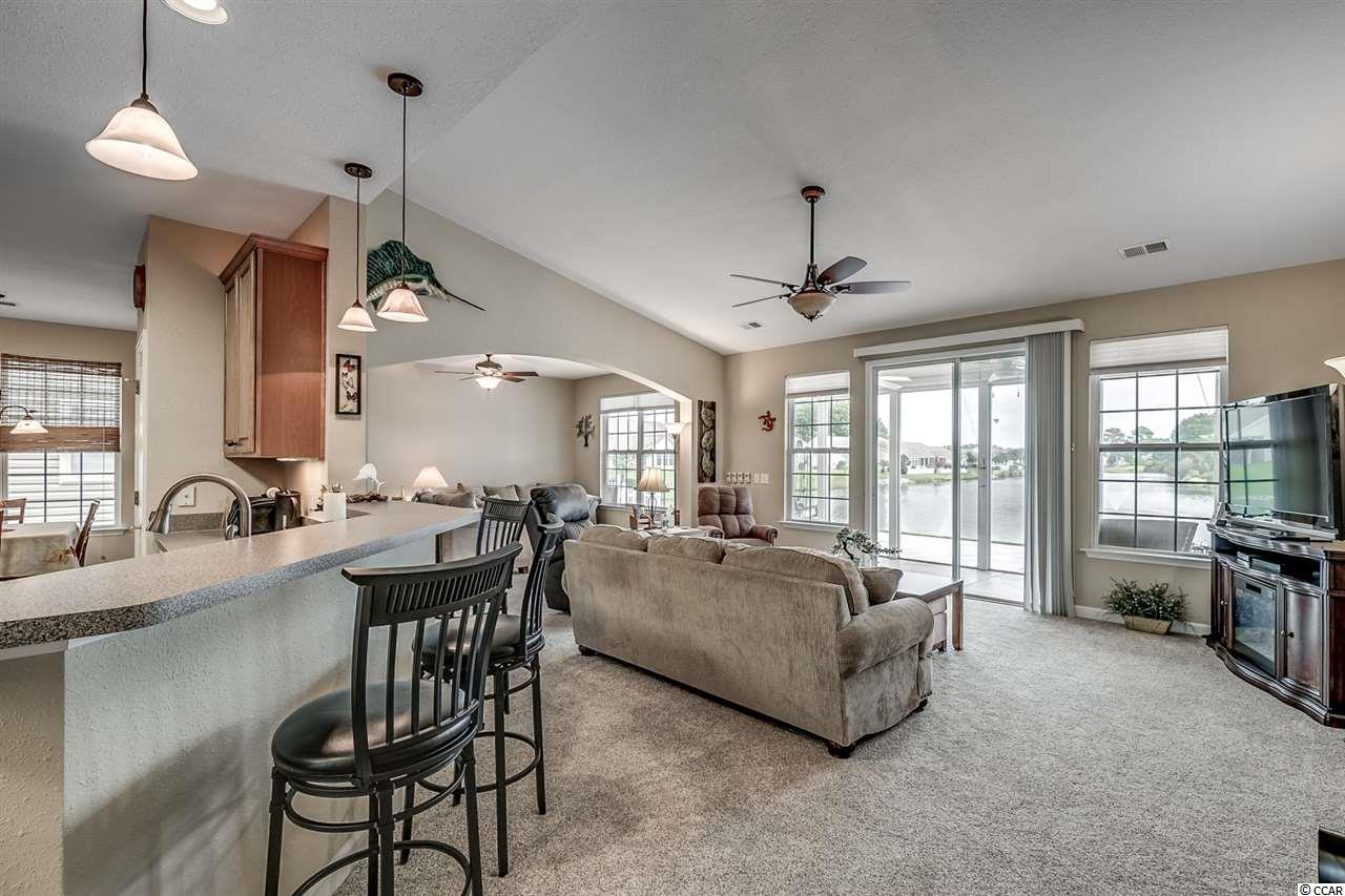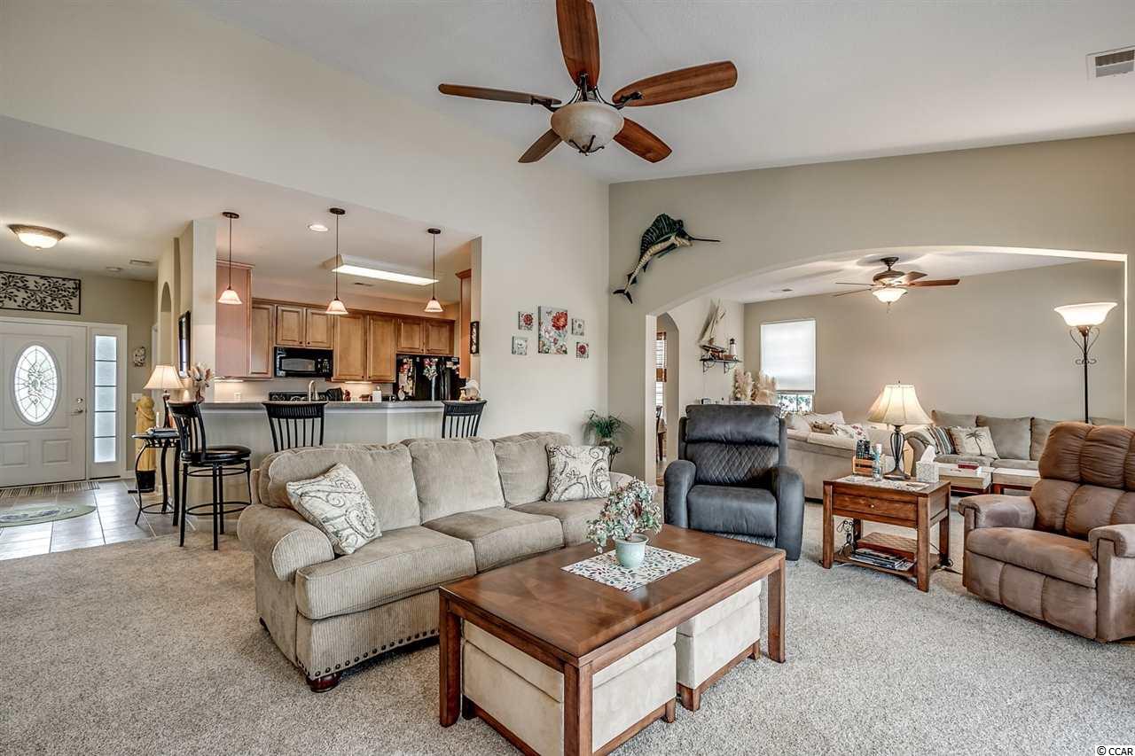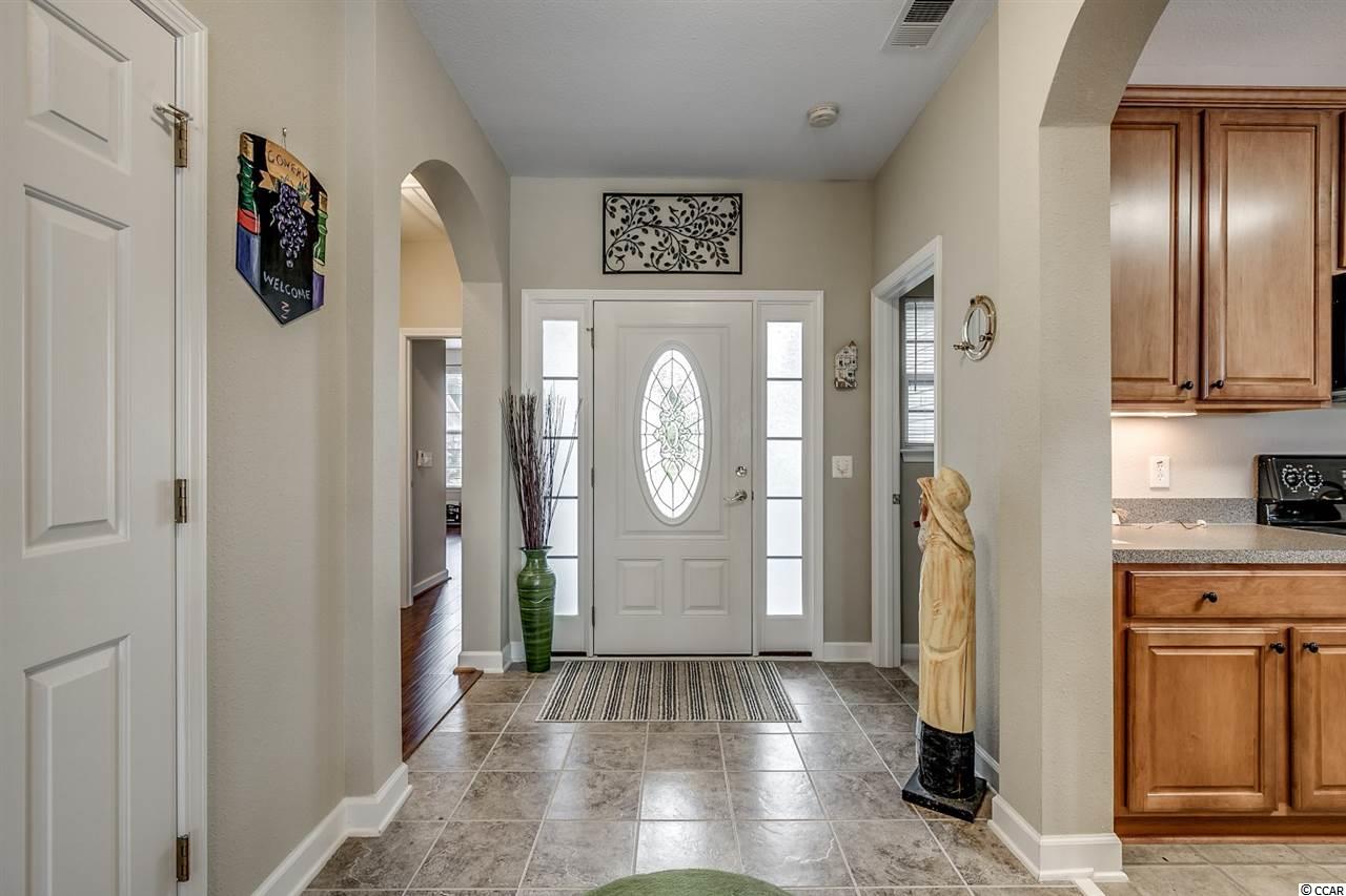 Spectacular, 4 bedroom, 3 bathroom, gorgeous home on a premier lot with an amazing view of the pond and fountain in the Hidden Lakes community in Little River. This meticulously kept home has much to offer inside and out including stamped concrete in front and back, large screened in porch with 3 ceiling fans, additional covered patio area with ceiling fan, open large patio area with evening shade, sidewalk to rear of home, added concrete to widen driveway, concrete treated with Vers-A-Covr concrete treatment, sprinkler system for lawn and beds, sliding garage screen door, extended garage for larger vehicles or additional space, newer garage door opener, gutters, newer HVAC, outside full home surge protector (installed by power company), hot water circulator pump, tiled foyer, open floor plan with great views from many rooms, neutral colors, upgraded fixtures with remotes, upgraded flooring, vaulted ceilings, textured walls and ceilings, nice kitchen cabinets, lower kitchen cabinets with pull out drawers, upgraded appliances, above and under cabinet lighting, lighted pantry, laundry room with cabinetry, large master bedroom has great view of pond, large walk in closets, double sinks, walk in attic space from bonus room, bonus room full bathroom, garage fridge, brushed nickel hardware, tinted windows and closet lighting in all bedrooms. Hidden Lakes has well-kept grounds, community pool, clubhouse, tennis court and playground. All this and close to North Myrtle Beach and Sunset Beach.
