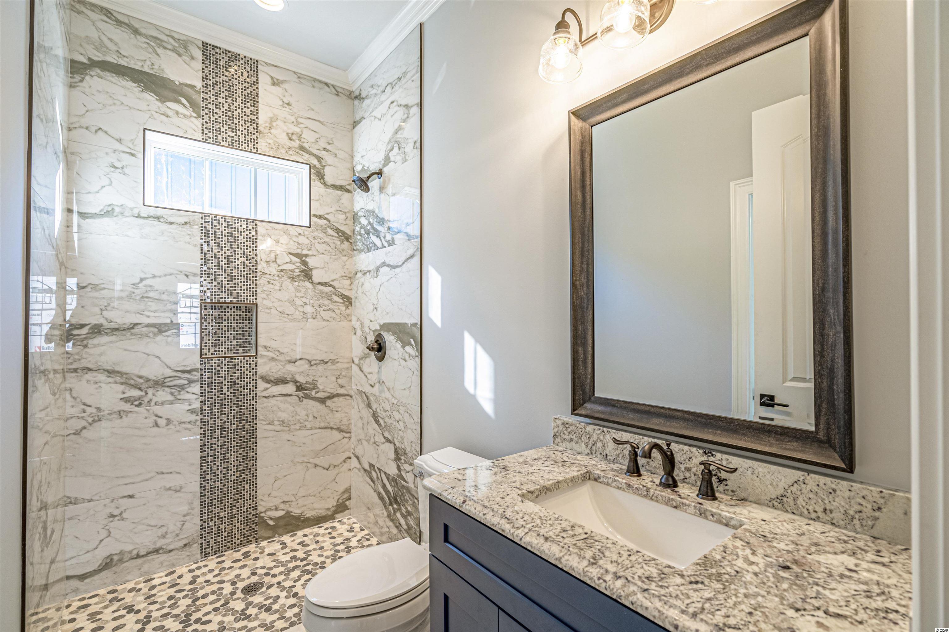 Welcome to Waterbridge, a magnificent custom home neighborhood located in the heart of Carolina Forest. This awesome new construction home will be completed early 2021 and is the complete package! You will find impeccable craftsmanship and luxurious finishes in this beautiful 7 bedroom, 4 bathroom home! The open concept kitchen, living, and dining area is perfect for hosting family gatherings, and is filled with natural light making the space feel warm and inviting. In addition to the open floor plan, you'll find a formal dining room, a second floor bonus room, and a room that could be used as an office or extra bedroom. The spacious master bedroom has beautiful tray ceilings, a large walk-in closet, and a beautiful en-suite bathroom with a double vanity, garden tub, and a luxurious shower. You don't want to miss this gourmet kitchen that has all the must-have upgrades including granite counters, stainless steel appliances, spacious island, pantry, and coffee bar. This custom home includes a screened-in porch with a back patio perfect for hosting! Don't miss out on Waterbridge with their amenities such as a world-class resort style clubhouse, the largest swimming pool in South Carolina, a fitness center, pickleball, tennis, basketball courts, and much more!
