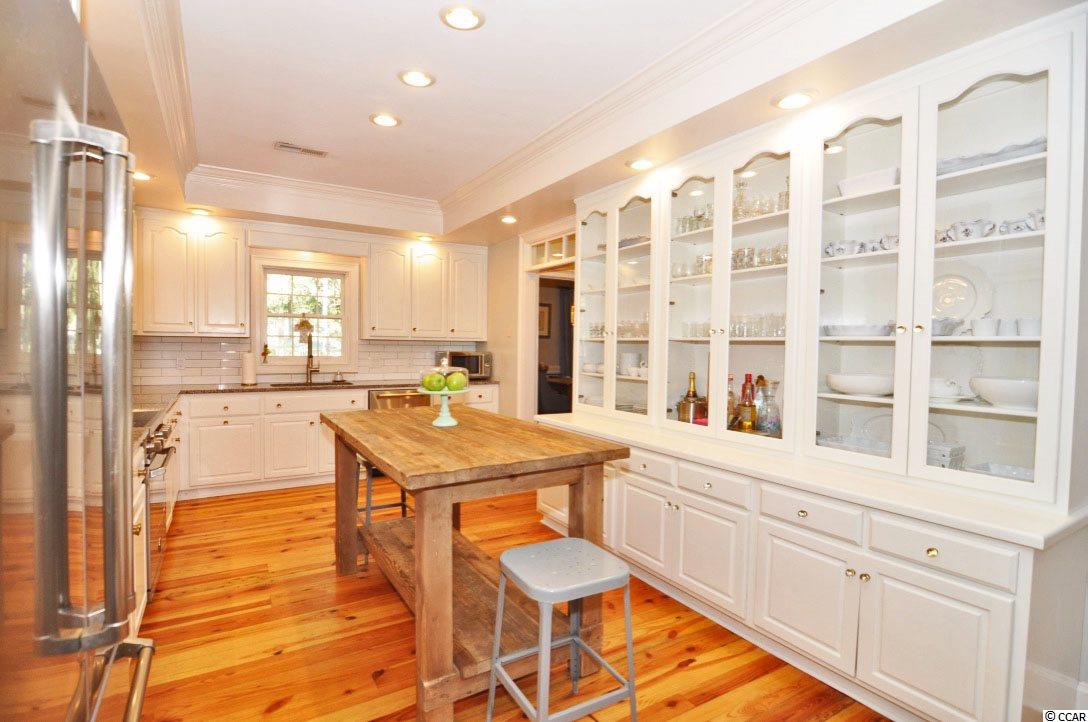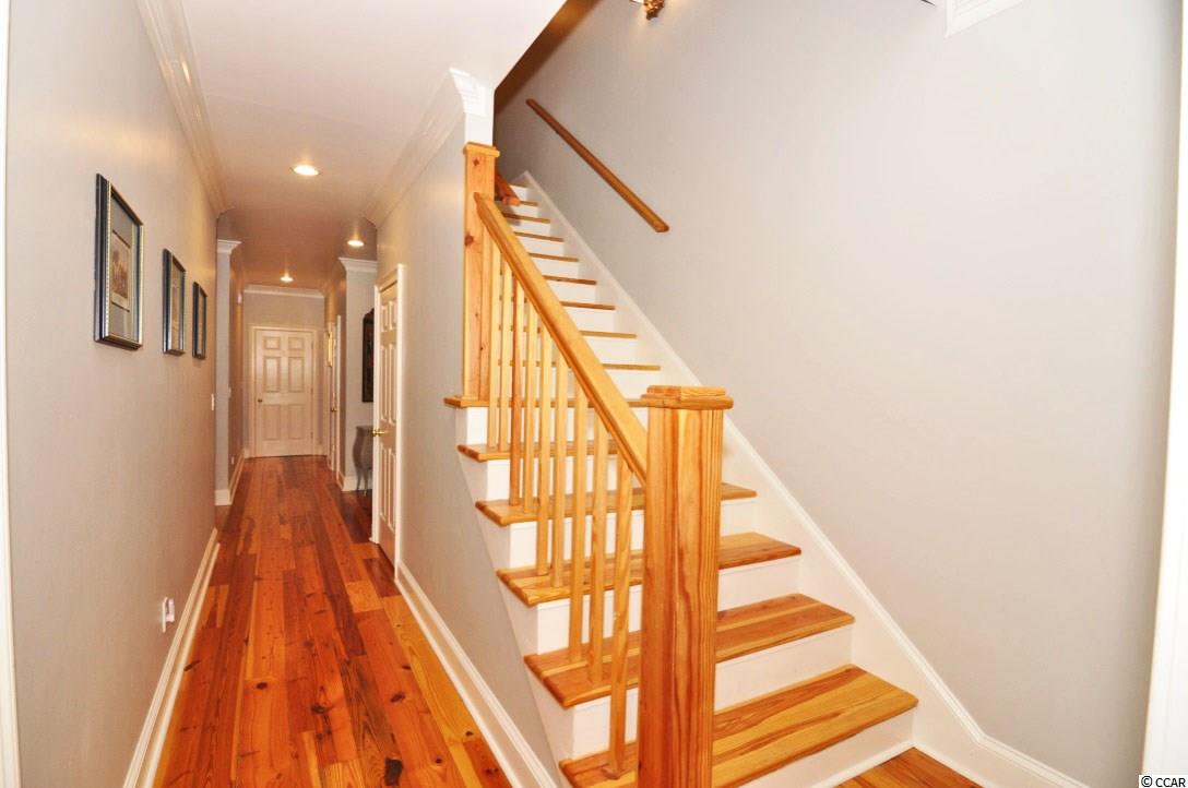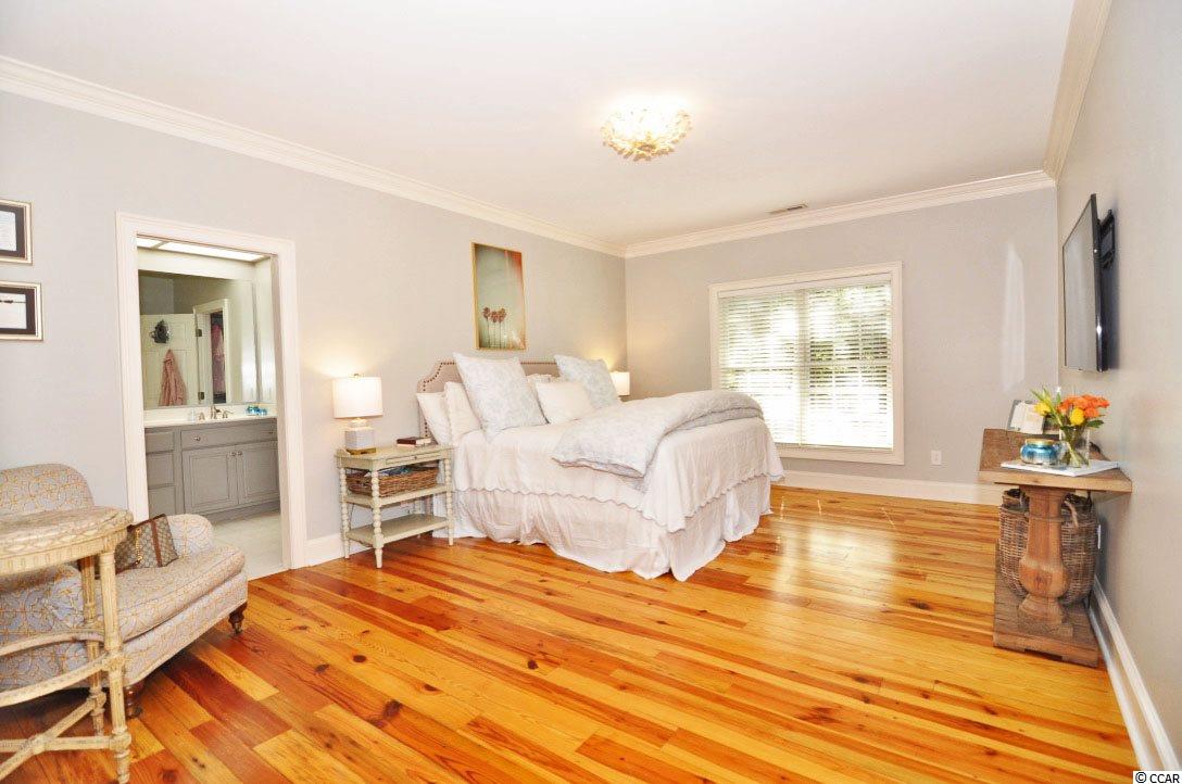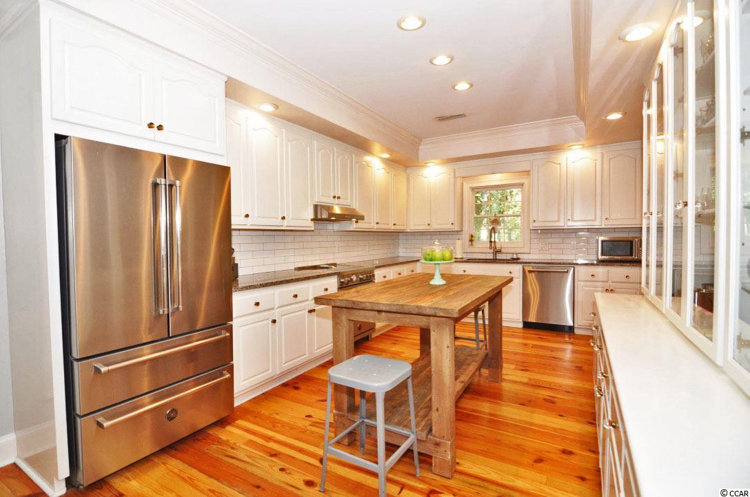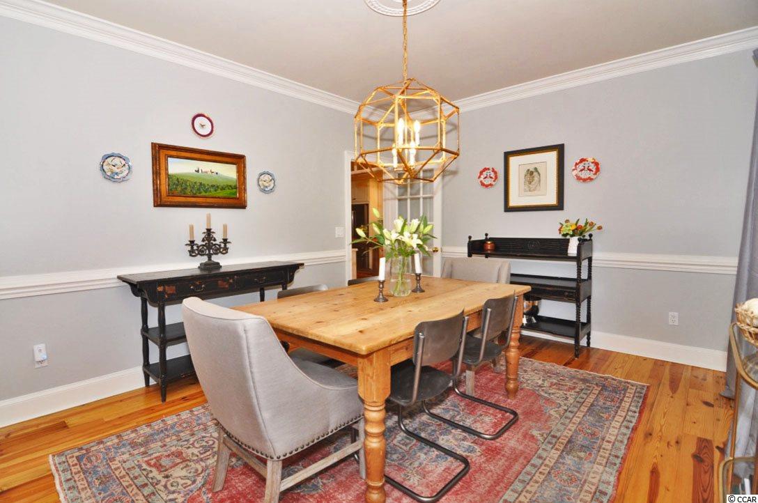 Welcome to 4505 Rice Cart Way which exemplifies true, southern elegance at its finest! This low-country, plantation style home was designed and built by Frasier Wall Architecture/Design. Located in Wachesaw Plantation in Murrells Inlet, SC, this home features reclaimed, antique heart pine floors, which came from an old North Carolina cotton mill. The heart pine floors are throughout all living areas, as well as the bedrooms on the main and upper floor. In addition to the five spacious bedrooms, there is also a formal dining room, formal living space, great room with fireplace, Carolina room on the back of the home, and an expansive bonus area on the ground floor, which could easily become a mother-in-law suite if needed. The exterior features of this home include a true southern covered front porch, covered rear patio area, and raised back deck off the Carolina room with views of the 12th Hole. There is also access from the great room, making this an ideal entertaining space. This large kitchen area flows into the breakfast room and Carolina room making for an open floor concept feel and provides lots of natural light. With plenty of storage, granite counter tops, and custom white cabinetry, all new high-end stainless-steel appliances, and new tiled backsplash, the kitchen is the ideal setup for chefs of any caliber. The master bedroom and bathroom are complete with a large walk-in custom closet, walk-in shower, separate soaker tub, and double sink vanity. Three oversized bedrooms, two full bathrooms, and tons of walk-in storage space make up the third-floor level. Crown moldings and true custom accents are evident throughout the top bedrooms as well. If the top floor doesn't provide enough storage for your family, the ground level has more than anyone could ever dream of! There is more than enough storage space, and many other rooms suited for a workout space, the ultimate man-cave, or just space for the kids/grand kids. This level also includes a full bedroom with solid hickory floors and full bathroom. The owners have repainted interior and exterior of this home and replaced many light fixtures throughout the home as well. This cul-de-sac lot is very quiet and private while also in an ideal location of the neighborhood! Wachesaw Plantation is a gated community, with 24-hoursecurity, Private Golf and Tennis Club, with a private pool and dining facility which overlooks the Waccamaw River/Intracoastal Waterway. The owners of this home will be transferring their equity membership to the new buyers so they can enjoy the amazing amenities that this community has to offer!
