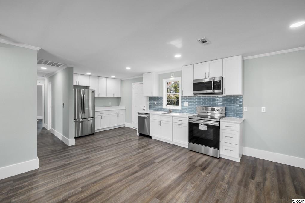 WELCOME HOME! NO HOA home. Completely renovated 4 bed 3 bath ranch. (1 non conforming bedroom). With NEW kitchen, bathrooms, appliances, water heater. There is a spacious living room that leads to the open dining room that leads to the kitchen. The kitchen features quartz countertops, trendy cabinets, all new Samsung stainless steel appliances and an absolutely gorgeous backsplash. You will find 2 suites with walk-in showers and 2 bedrooms, all with new ceiling fans. The master bedroom with elegant barn door, double sinks and tiled shower. All bathrooms have LED lights, new vanities, and a ceiling speaker with Bluetooth support so you can listen to your favorite singer or favorite podcast while you shower. Large, private backyard to grill, or to install a pool, or to park your trailer, RV, boat, etc. This one story home has fresh paint, LVP flooring, and LED lighting throughout. New water heater. HVAC is 4 years old. Excellent location! Conveniently located and less than 5 minutes from the beach, airport, restaurants and shops. Make your appointment today. This one won't last long! Listing agent speaks English and Spanish.