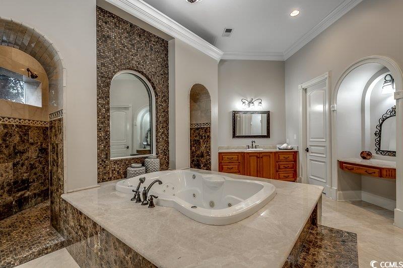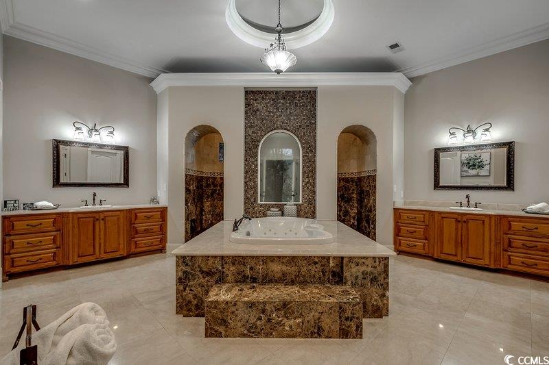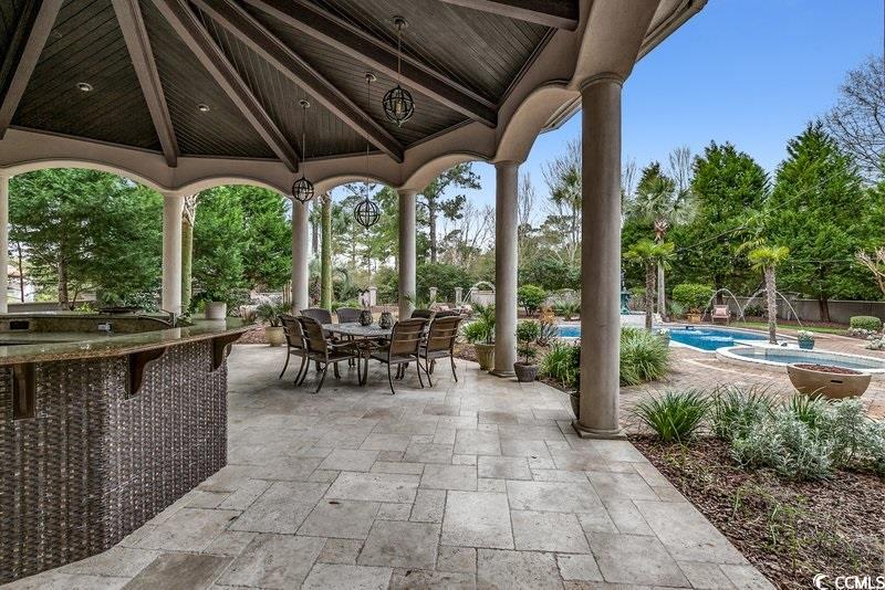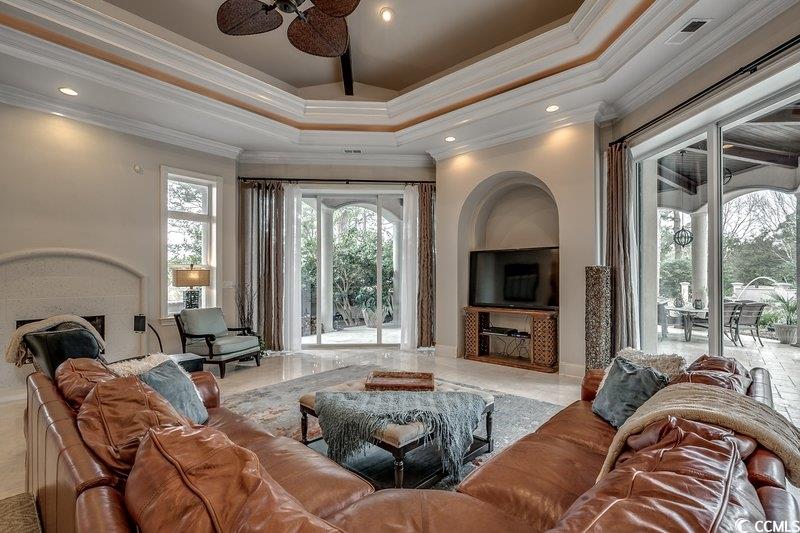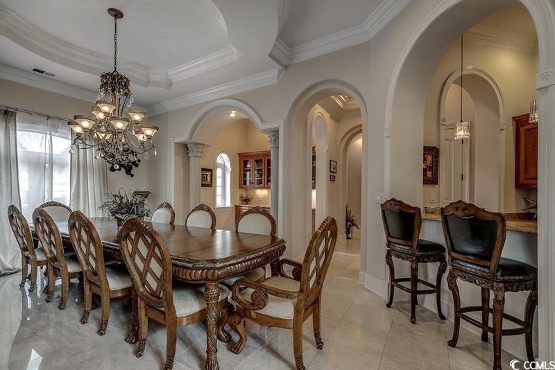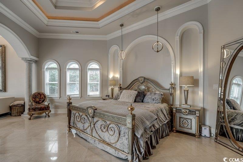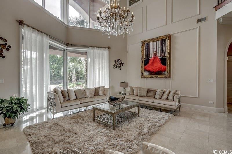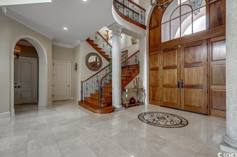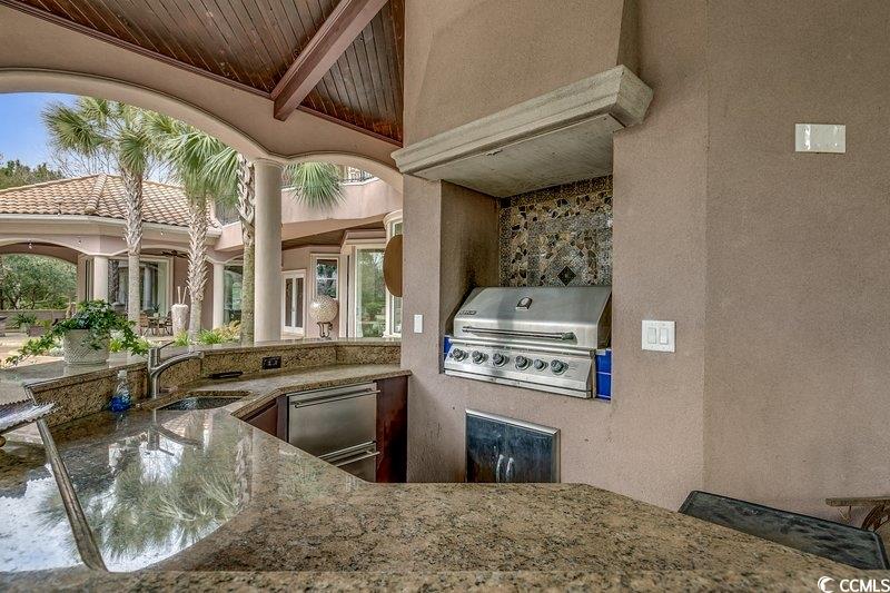 Welcome to this elegant two-story Mediterranean estate which is more than a home, it's a lifestyle! Located in the prestigious gated community of Grande Dunes as you enter the double doors of this 6800 sq ft residence you'll find the magnificent living room with 28' ceilings and a breathtaking view of the backyard oasis. The 1st floor of this ICF constructed home boasts beautiful 18"" marble floors throughout. The amazing kitchen is large enough to make any chef excited, boasting granite countertops, custom cabinets, top of the line appliances and a butlers pantry along with a family room, Mother In-Law suite, a wet bar and an office. This dazzling design offers an array of living areas along with 5 beautiful bedoom suites, the Master offering it's own private sitting area. On the 2nd floor you'll find beautiful Brazillian cherry hardwood floors, and along with 3 of the bedroom suites a media room with a mini bar and a tiled wrought iron balcony overlooking the stunning backyard. Each gathering area features hurricane resistant floor to ceiling disappearing pocket sliders accessing each of the different verandas where you'll find the outdoor kitchen with a built in grill and refrigerator, custom landscaping, 18x40 saltwater pool, jacuzzi and solid bronze fountain and lastly there are 2 - 2 car garage bays. There are too many features about this home to list, it's a must see! With more than 11,000 sq ft under roof, this is the ultimate home for entertaining and luxury living. (Elevator shaft is there, elevator can be added) Grande Dunes residents can enjoy the 25,000 square foot Ocean Club that offers fine dining, oceanfront pools, beach access, the community has two 18-hole golf courses, several on-site restaurants, tennis facility, miles of biking and walking trails and a deep water marina
