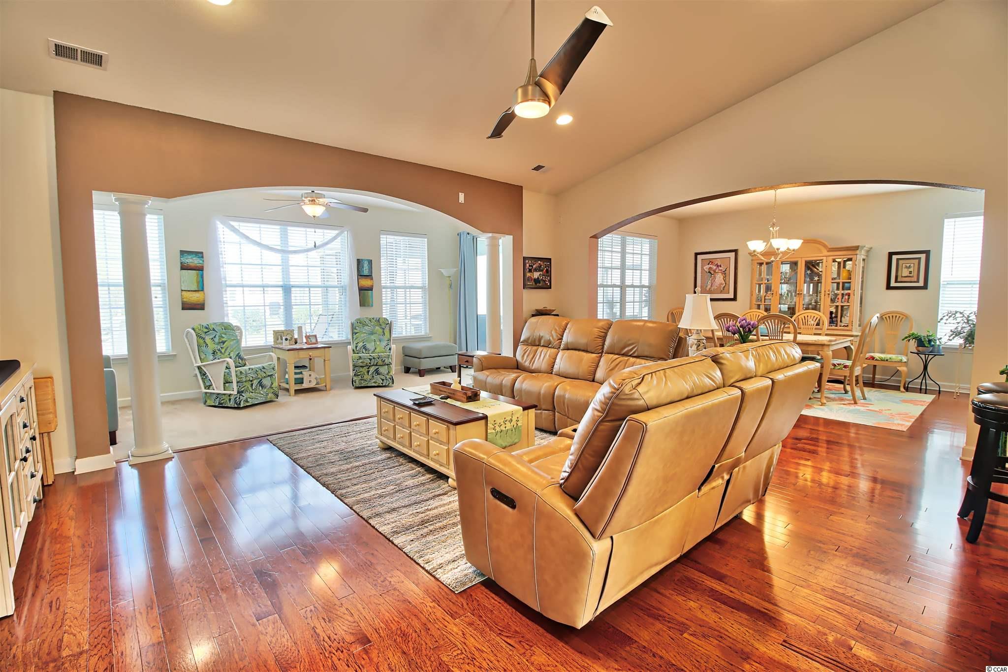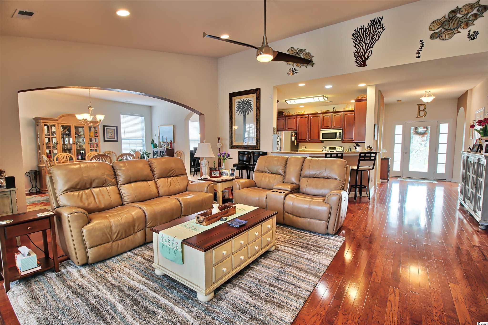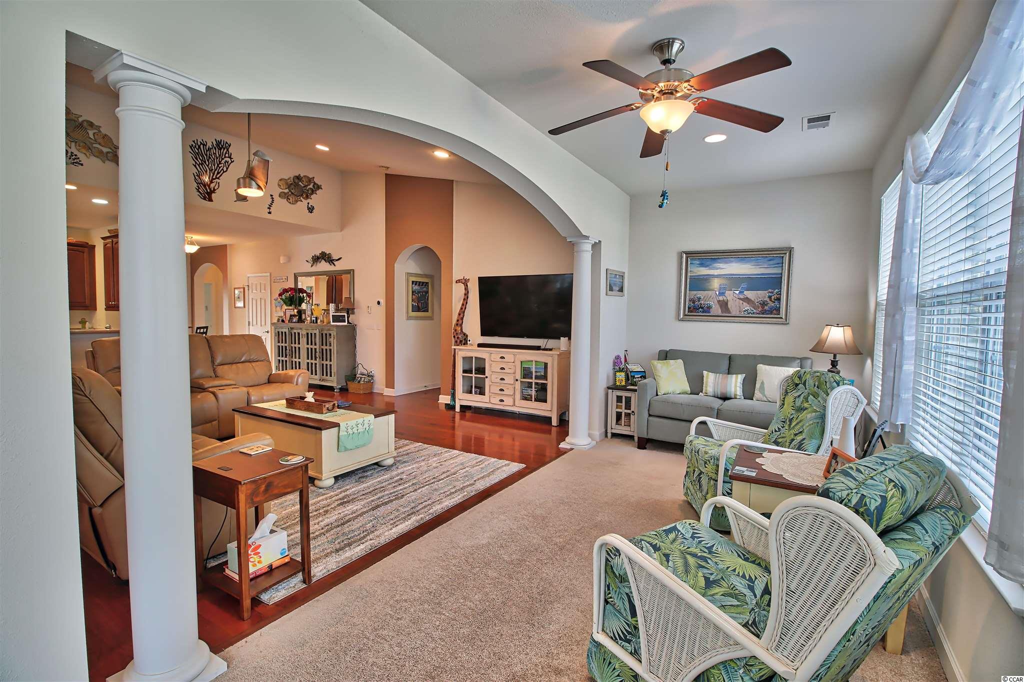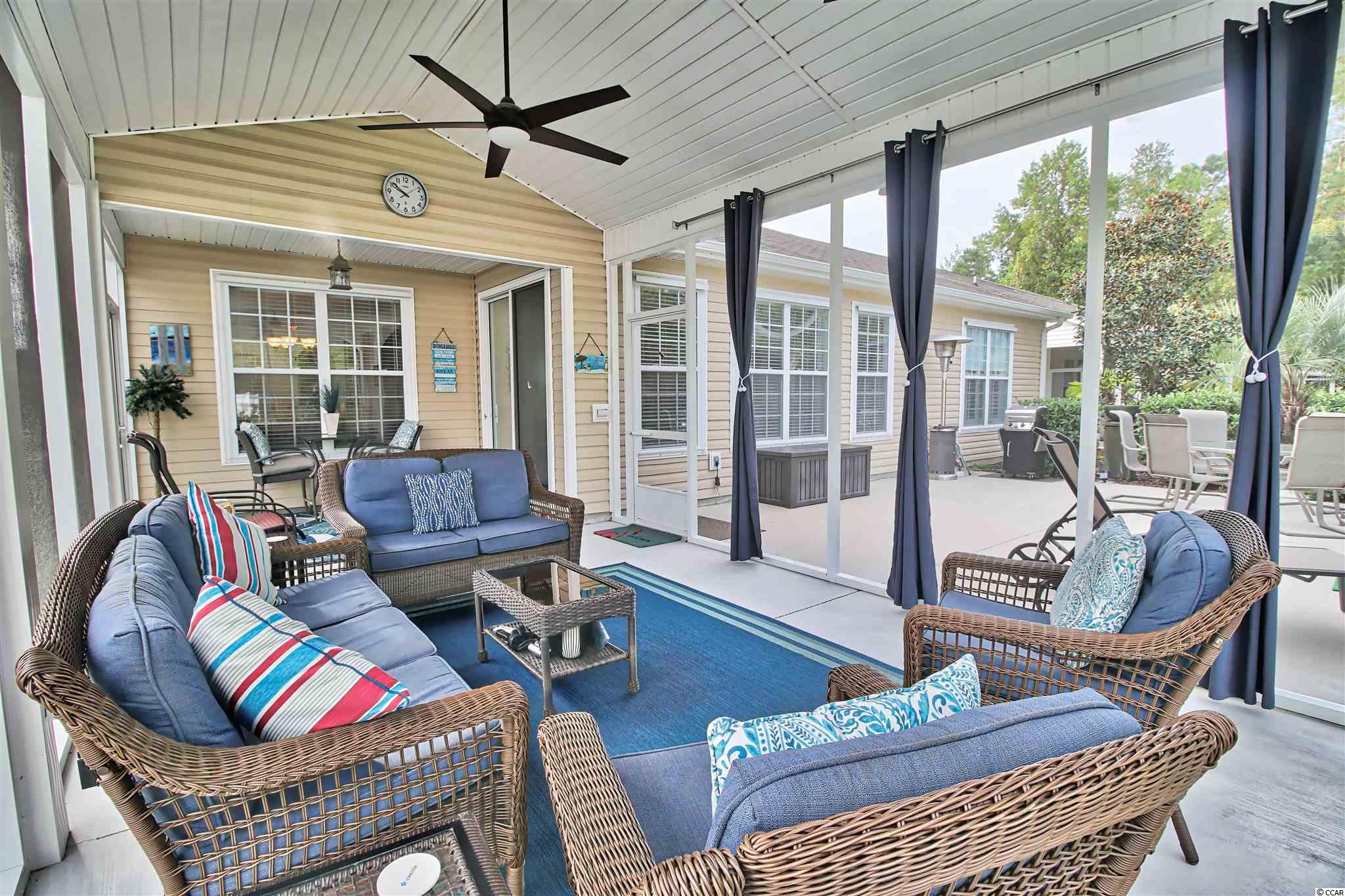 If you are an outdoor person and nature lover, you will love time spent on the oversized screen porch and extended patio on this home! Bird watchers paradise! This spacious well-kept home offers an open floor plan with a Carolina Room off the living room/den, large formal dining space, highly desirable kitchen with lovely Cherry cabinets, stainless steel appliances, center work island, pantry and cozy kitchen nook. The first floor master bedroom suite features a vaulted ceiling, walk-in closet, double bathroom vanity, linen closet and an oversized walk-in Kohler panel shower. Guests will enjoy one of two bedrooms on the first level, a full bath and powder room. Off from the wide entrance foyer are the stairs that lead up to the 4th bedroom suite with a full bath and a closet. This space has many possibilities! Check out the door to the large attic storage space from the top stair landing. This attic space is also accessible from the garage pulldown stairs. The two-car attached garage has rubber matting and an air flow door screen that keeps the area cooler and pest free. New Daikin HVAC System installed in January 2021. Even before stepping into this inviting home, your guests will be impressed with the oversized driveway, the swaying palms and the neat landscaping. This lovely home is tastefully furnished and furnishings and accessories are negotiable. Hidden Lakes Village is tucked away just minutes from the historic Little River Waterfront and the beaches, shopping, entertainment, and great restaurants in North Myrtle Beach. Homeowners and guests can enjoy the lakeside community center, large swimming pool, hot tub, tennis courts, pickleball courts and playground. Call for an appointment to tour this home today! SQUARE FOOTAGE AND MEASUREMENTS ARE APPROXIMATE AND SHOULD BE VERIFIED BY THE BUYER(S).