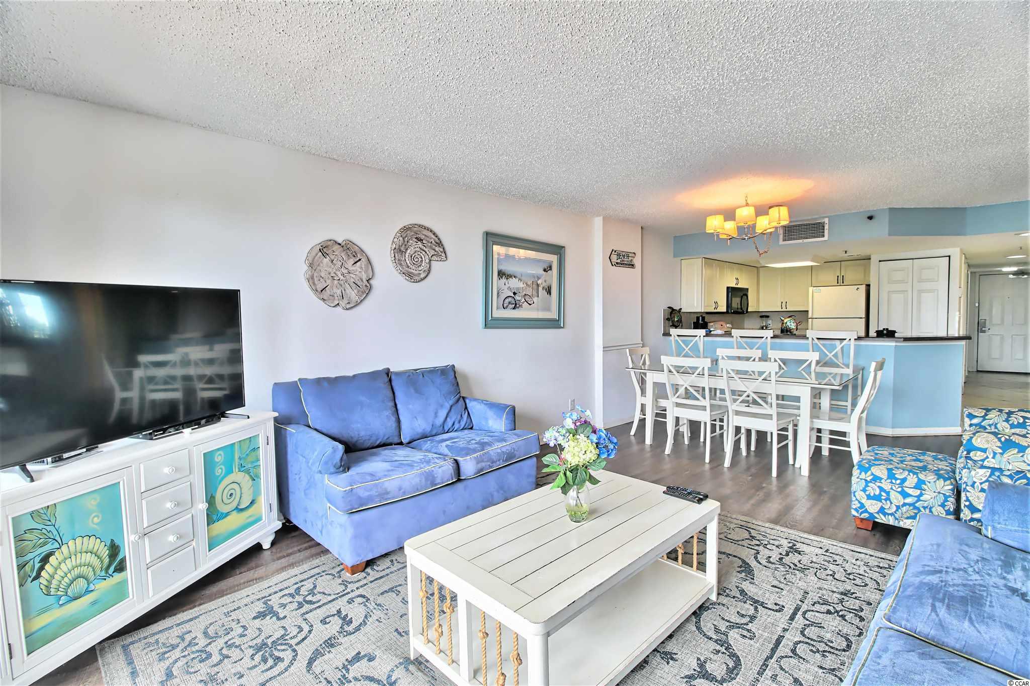 Stunning 4 bedroom, 3 bathroom oceanfront condo located within the Golden Mile of Myrtle Beach! This large oceanfront 4 bedroom 3 bathroom condo is a rare find in todays market, showcasing spectacular oceanfront views from the large balcony located off of the living room and master bedroom. This second floor corner unit is spacious, offering the flexibility to sleep up to 10 guests including the sleeper sofa. Remarkable rental income opportunities Amenities include lazy river and the indoor and outdoor pools, racquetball court, shuffleboard court,dining room, exercise room, arcade, grilling area, landscaped walkway to the beach, outdoor showers and seashell washing area, and much more! Don't miss this rare opportunity to owning a 4 bedroom oceanfront condo, a property that is few and far between within the Myrtle Beach area.