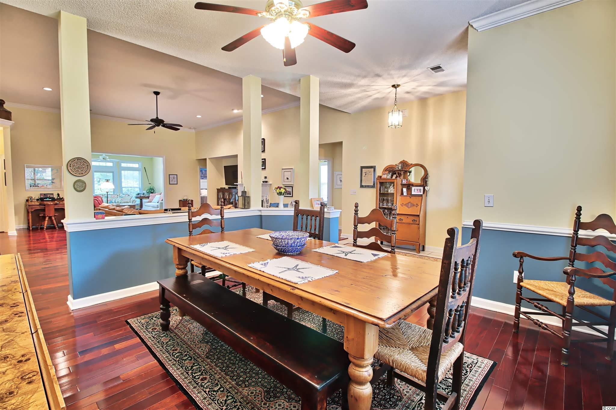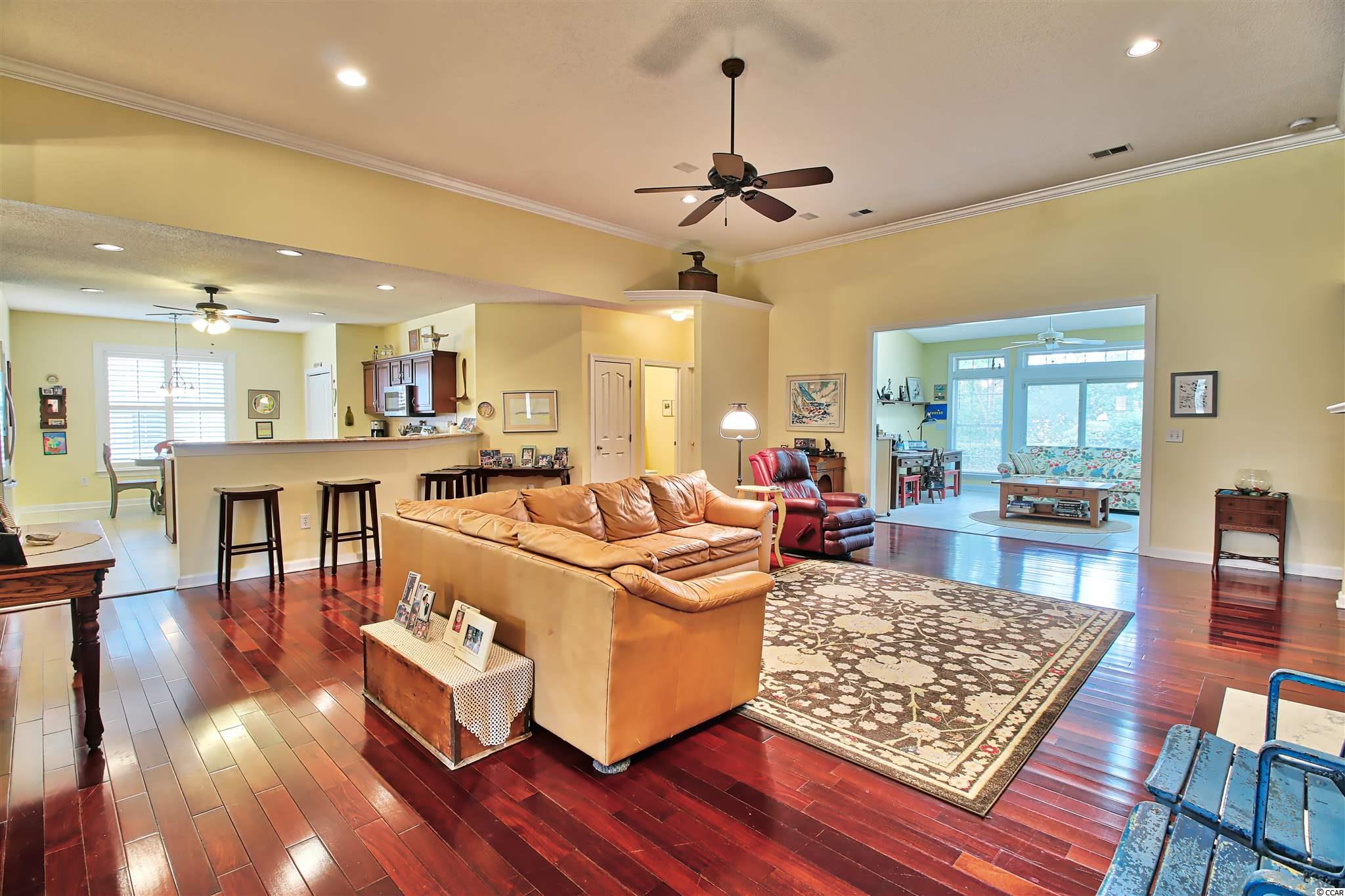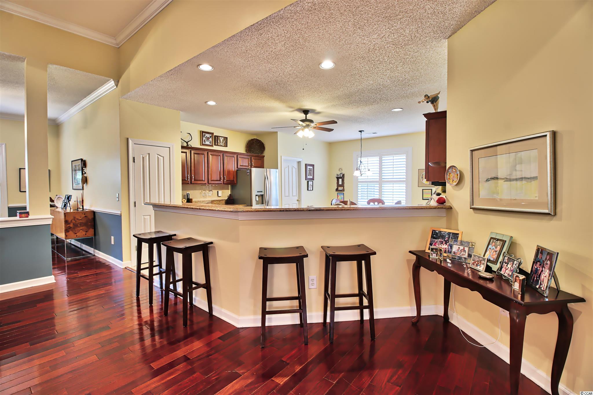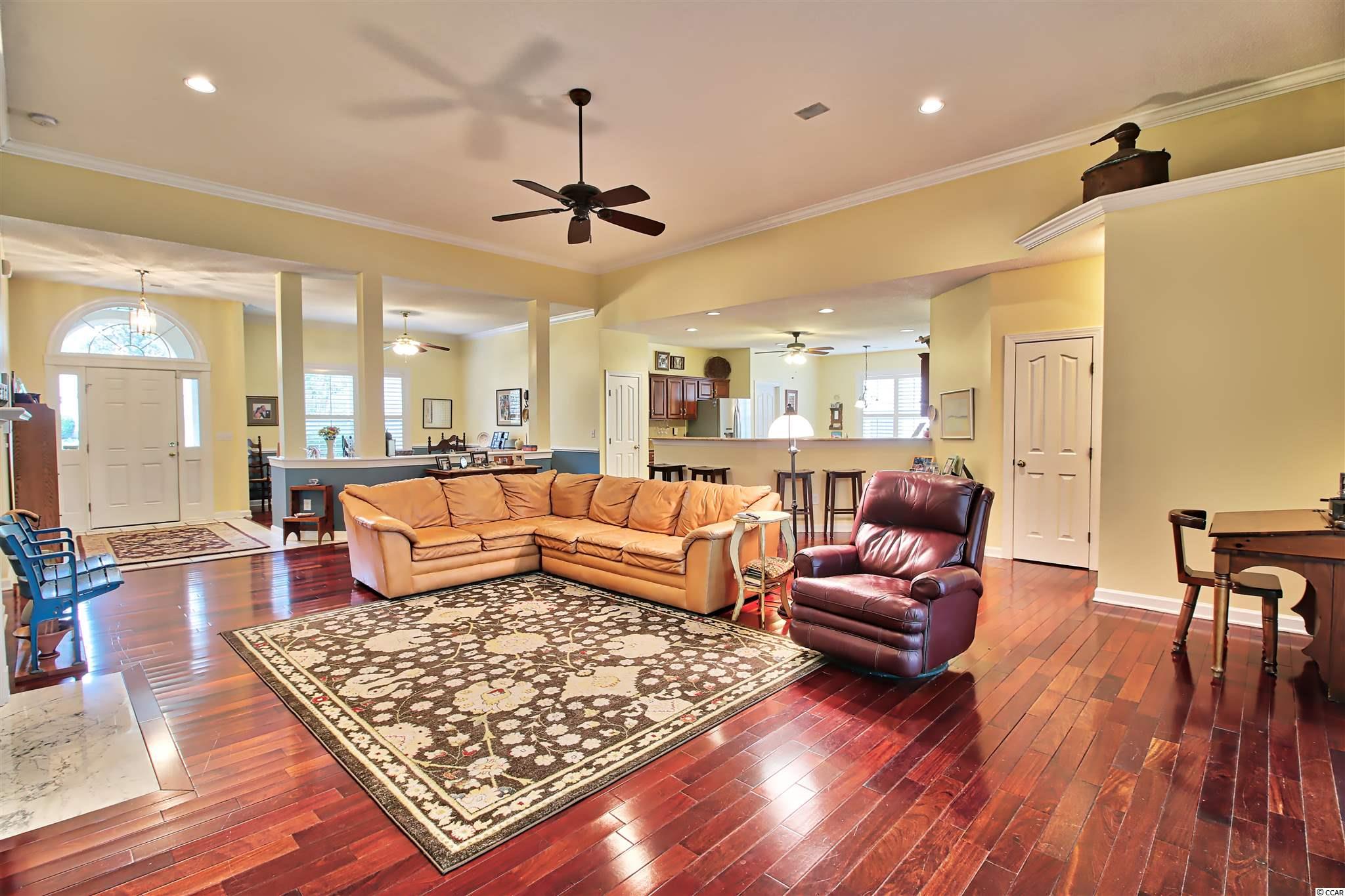 Searching for an elegant home that speaks to the pride of ownership? Welcome home to 1175 North Blackmoor Drive in the prestigious golf community of Blackmoor. This beautiful stucco 4-bedroom, 3.5-bath home is situated on the 6th fairway of Blackmoor golf course and boasts two master bedroom suites! There are also two additional bedrooms with a full bathroom for visitors or a large family. Upon entering the foyer, you will immediately see a large formal dining area that connects to the spacious kitchen and large family room. This updated, sprawling kitchen is a chef's dream with granite counters, custom cabinetry, breakfast bar and work island, not to mention newer stainless appliances and beautiful tile floors. The enormous family room features a fireplace, Rosewood flooring and access to a huge Carolina room overlooking the lavishly landscaped backyard and golf course. The front yard is just as beautiful with mature plants and flowers surrounding a fully irrigated lawn that was recently replaced with all new Zoysia sod. This home has had many upgrades such as LVP flooring in bedrooms, HVAC, roof, water heater, appliances etc. There is nothing left to do except unpack! See your agent for a detailed list of upgrades. Blackmoor offers low HOA fees, tennis courts, community pool, and clubhouse, plus a reasonable golf membership to the fantastic Blackmoor golf course. Just minutes from shopping, great dining at the Marshwalk, close to the Brookgreen Gardens, Huntington Beach State Park, and the Ocean. This home is located in the award-winning school district of St. James. You don't want to miss this one!