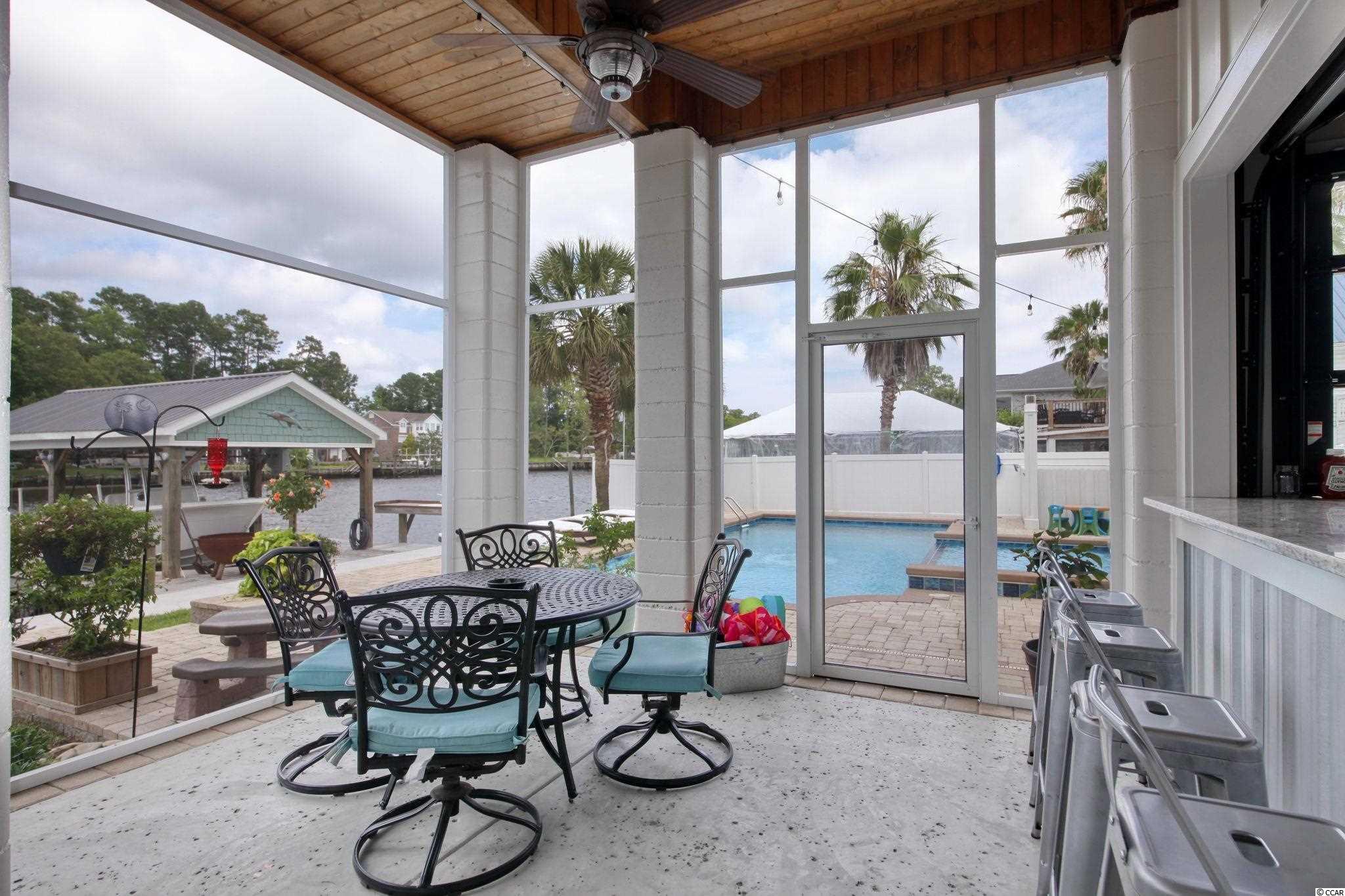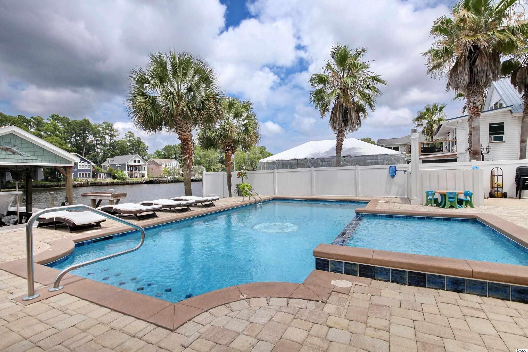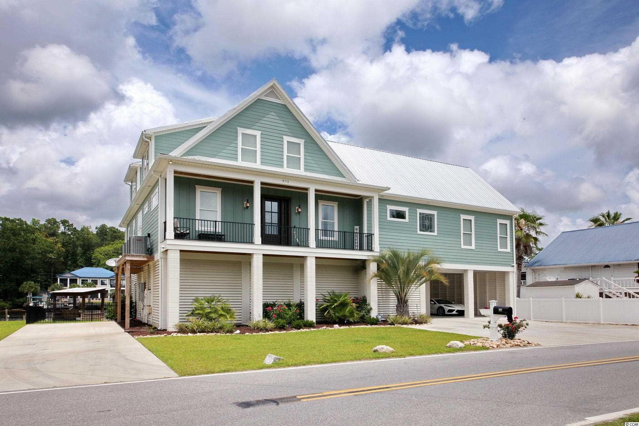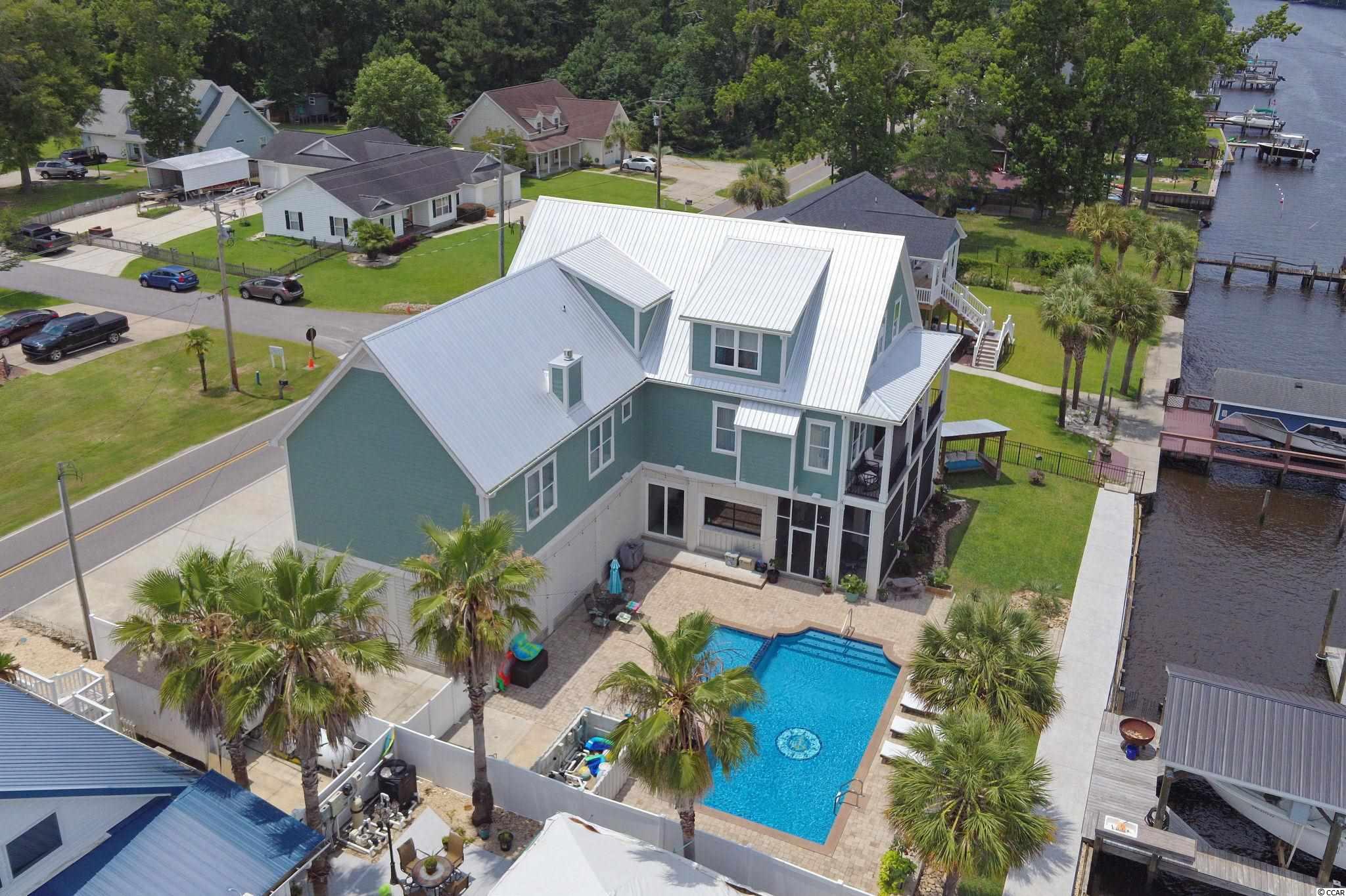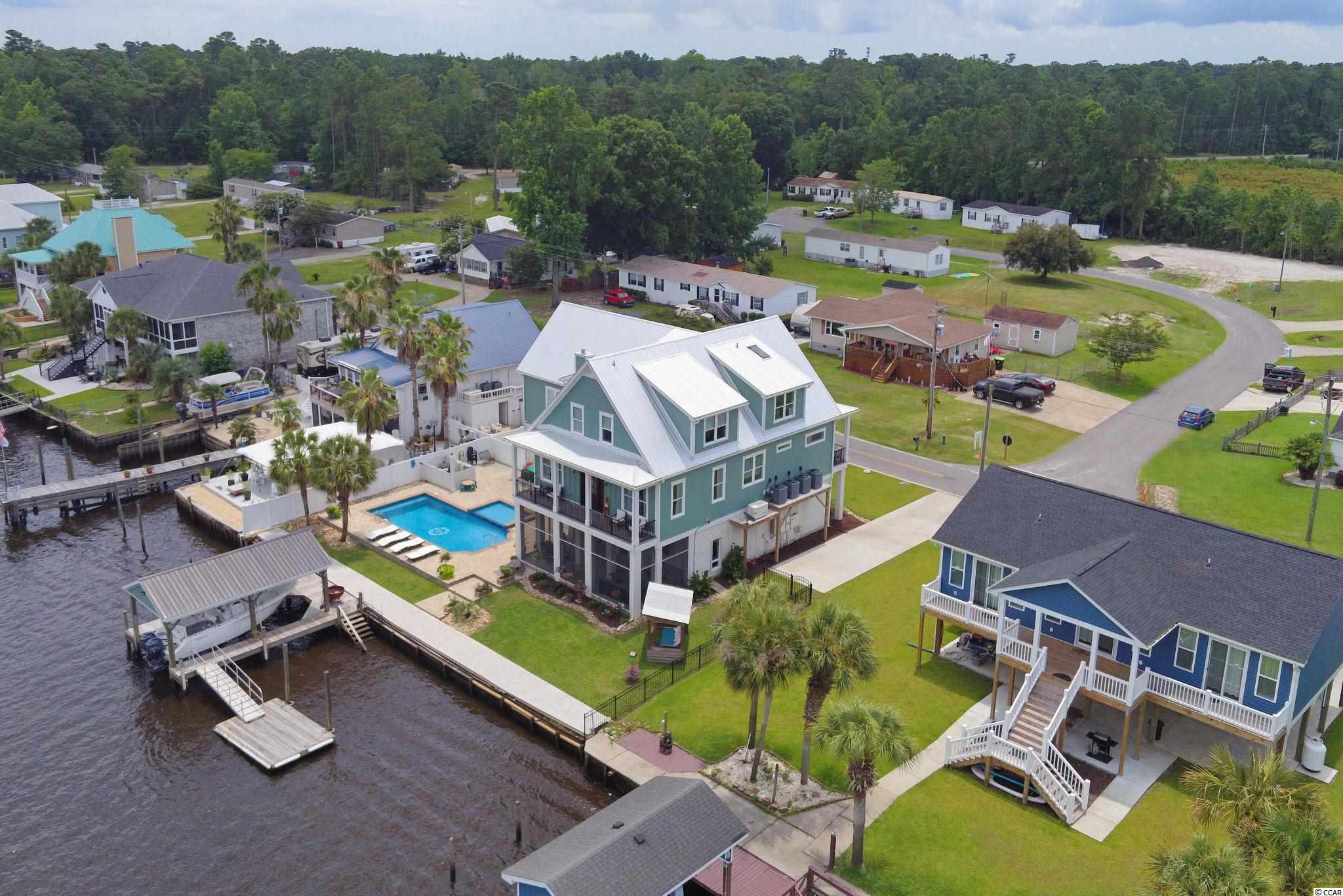A MUST SEE HOME DIRECTLY on the INTRACOASTAL WATERWAY! This home, built in 2019, has beautiful water views from most every room. The main level features an open floor plan. The luxury kitchen consists of a large island, granite countertops and stainless appliances including a double oven, beverage cooler and 2 dishwashers that are a chefs dream. Plenty of custom cabinetry fills the kitchen along with a walk-in pantry and breakfast nook. The living room boasts coffered ceilings and a gas fireplace. Enjoy stunning sunset views over the ICW from the balcony located directly off the living space. There is also a formal dining room. Included on the main level is the expansive master suite that features 14ft-vaulted ceilings, a gas fireplace and large walk in closet with custom shelving and laundry area. The master bath features 2 separate vanities, large tiled walk-in shower and jetted soaking tub. This level includes one guest bedroom with private bath. On the third level you will find 3 additional bedrooms each with private bath and a large laundry room with custom cabinetry. All three levels of the home can be reached by elevator and/or the gorgeous staircase. There is storage galore including a walk in storage room off of the master suite and two storage areas on ground level. The home has a generator and an integrated entertainment system that includes surround sound, outdoor speakers, security cameras and much more. The ground level of this home features a second kitchen area and a full bath. This is perfect for entertaining alongside your private 35x15 gunite pool with kiddie area. Enjoy your oversized screened in porch for those evening breezes. Home features a covered boatlift and floating dock that make it easy for those sunset cruises. Another convenience and rare find is the ample space to park your RV which includes full hook-ups. This home has so many details and is a must see. If you have always dreamed of living directly on the water, look no further!