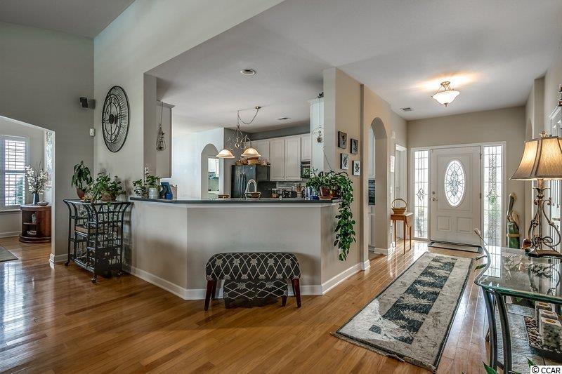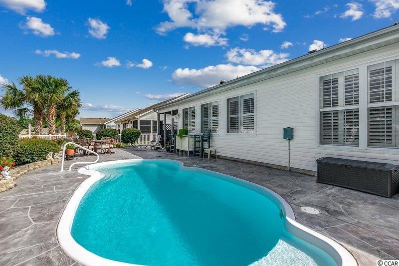 Check out this gorgeous home with a nice, private pool overlooking the lake in Hidden Lakes Village in Little River. Great curb appeal, paver hardscaping, brick front, tropical landscaping, pool is surrounded by stamped concrete, fence, the nice bushes create a private oasis, an added sidewalk for easy access to beautifully landscaped backyard, large two car garage, gutters, and nice mulch. This spacious floorplan has four bedrooms, 3 baths, with three bedrooms, downstairs and a nice 4th bedroom and a full bathroom upstairs. Walk in attic access, open floor plan, Carolina Room, breakfast nook, dining room, Corian countertops, tile backsplash, large cabinets, pantry, kitchen island, hardwood and tile flooring, plantation shutters, alarm system, one bedroom/office has a nice murphy bed, vaulted ceilings, extra large master bedroom, walk in tiled/glass shower, double sinks and large walk-in closet. This home has been very well cared for and it shows! Hidden Lakes Village has tennis courts, well-manicured common grounds, sidewalks, nice entrance, and a community pool. All this and just a few miles to North Myrtle Beach or Sunset Beach!