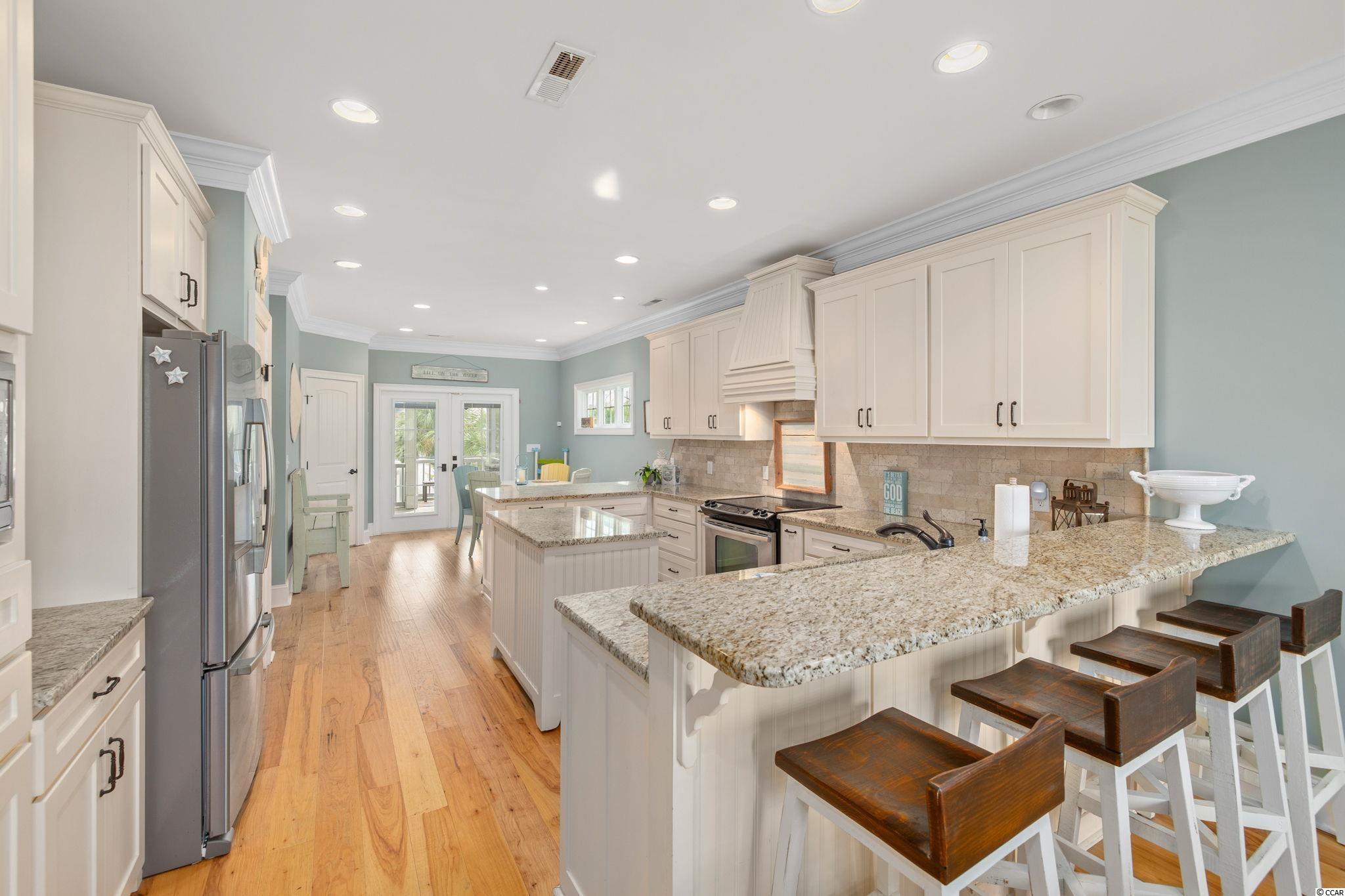 If a picture is worth a thousand words, then when you see this house you will know it's work a million dollars! This is the cream of the crop and height of luxury living at the beach. This beautiful custom built home features 5 spacious bedroom each with a private bath. The chef's kitchen features custom cabinets, granite countertops, stainless appliances, a large island and breakfast bar. There's even a formal dining area and separate breakfast nook. The master suite is on the first living level while the top floor hosts 4 bedrooms and a private entertainment nook with access to the private balcony. The second floor porch is where you'll spend the afternoons lounging after a long day at the beach...which is less than one block away. The rest of your spare time will be spent soaking up the sun and enjoying lounging by the large private pool and hot tub. This home truly has everything! and is only a half block to the beach. Come view this one before it's gone!!