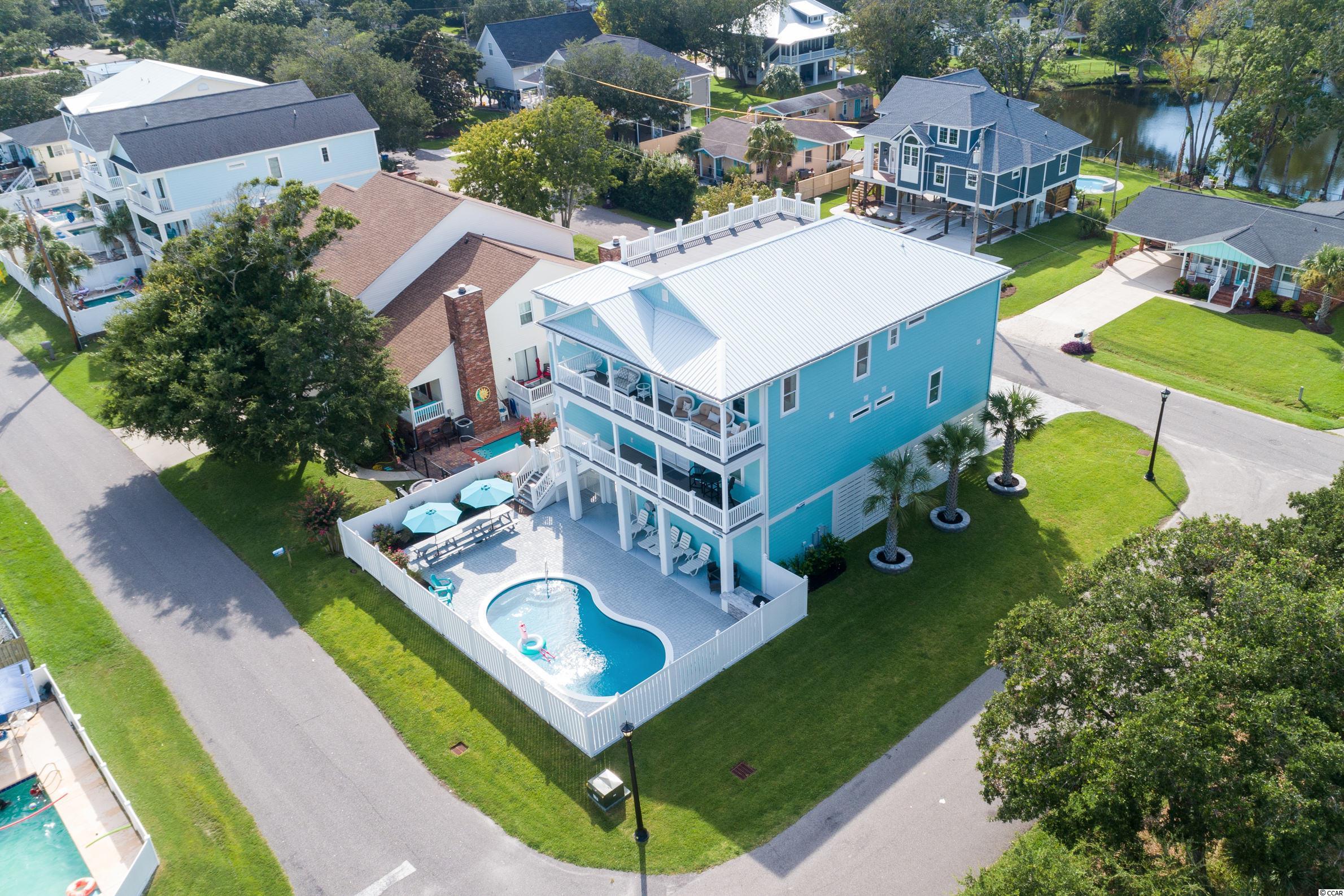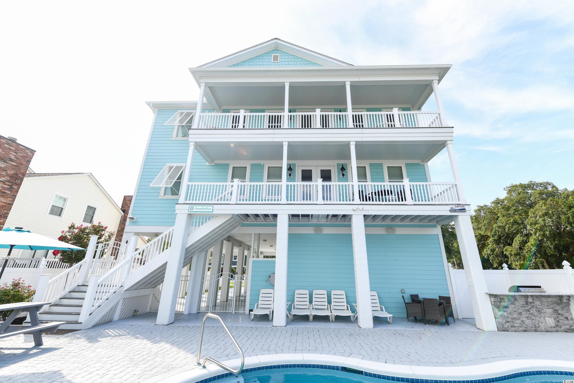 Check out the ocean views from the two oversized 35' wide Oceanside decks on this full on custom built 8 bedroom 8.5 bath 4800 heated sq. ft. home located in the first two blocks from the beach in Surfside Beach. Home includes a Oversized 15'x30' heated saltwater pool with on the Oceanside of this 60' wide ""double"" lot, an Elevator which travels to all floors and two full common areas serviced by both a Kitchenette and kitchen with a ""reversed layout"" plan which allows the top floor to enjoy the ocean view and the cathederal style ceilings. Outside included pre-stained Hardie-Plank Construction with metal roof and ""Trex"" outside composite decking, underground LP-Gas tank with upstairs Gas Fireplace and Tank-less Gas Water Heaters for unlimited Hot Water, and installed ""wainscoating/beadboard"" chair-rail height through out all the common areas and bathrooms give both the fit an finish you would expect from a custom built premium home which also will protect the common areas from rental damage if you choose to rent it. Home was built originally in 2016 but was substantially rebuilt while being added onto in 2019 when the property was converted over to being used as a primary residence for the bulk of the year and rented for 10 weeks during the summer with the new addition space being utilized to create a 2nd common area and large (4 queens) bunk room on the first floor and on the 2nd floor huge walk in closet and storage space with an oversized master bedroom and bath to allow for property to easily transition between personal use and rental use. One of the largest homes in the R3 area of Surfside on a double sized corner lot built by the area's premier custom home builder renowned for both fit and finish as well as the structural (storm) integrity built into each design. Sold tastefully furnished and ready to move in as is! The owner is a SC real estate agent.