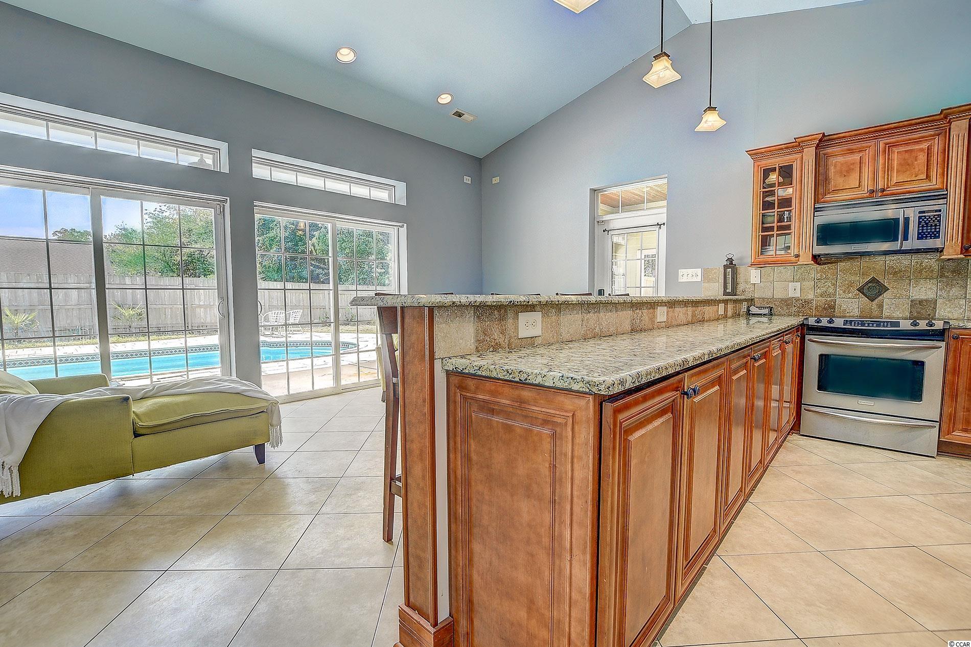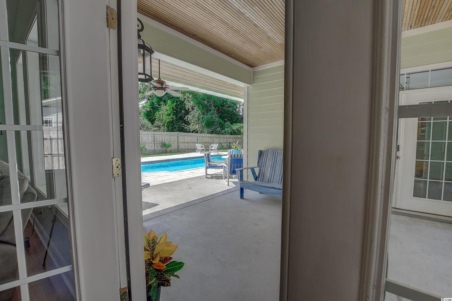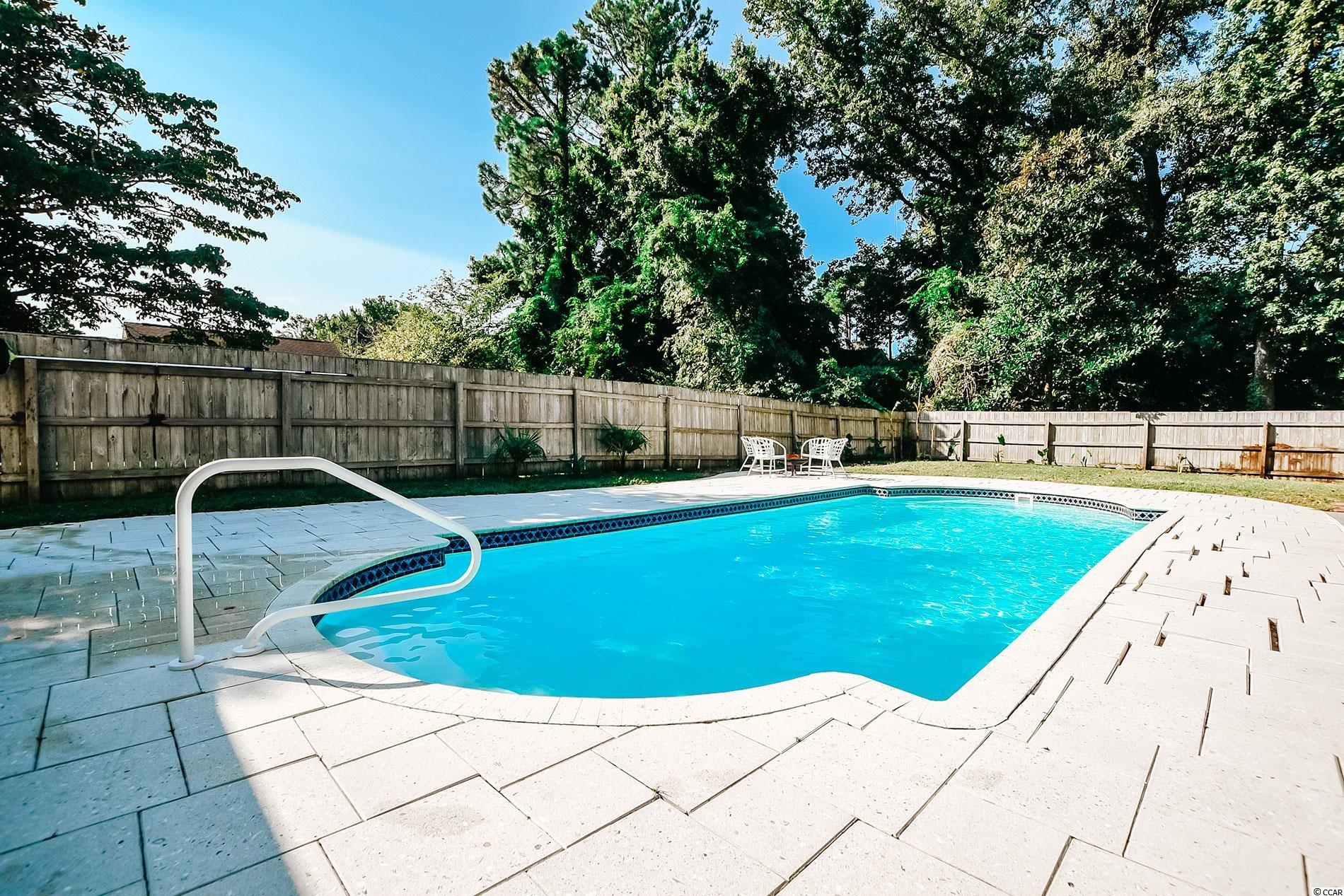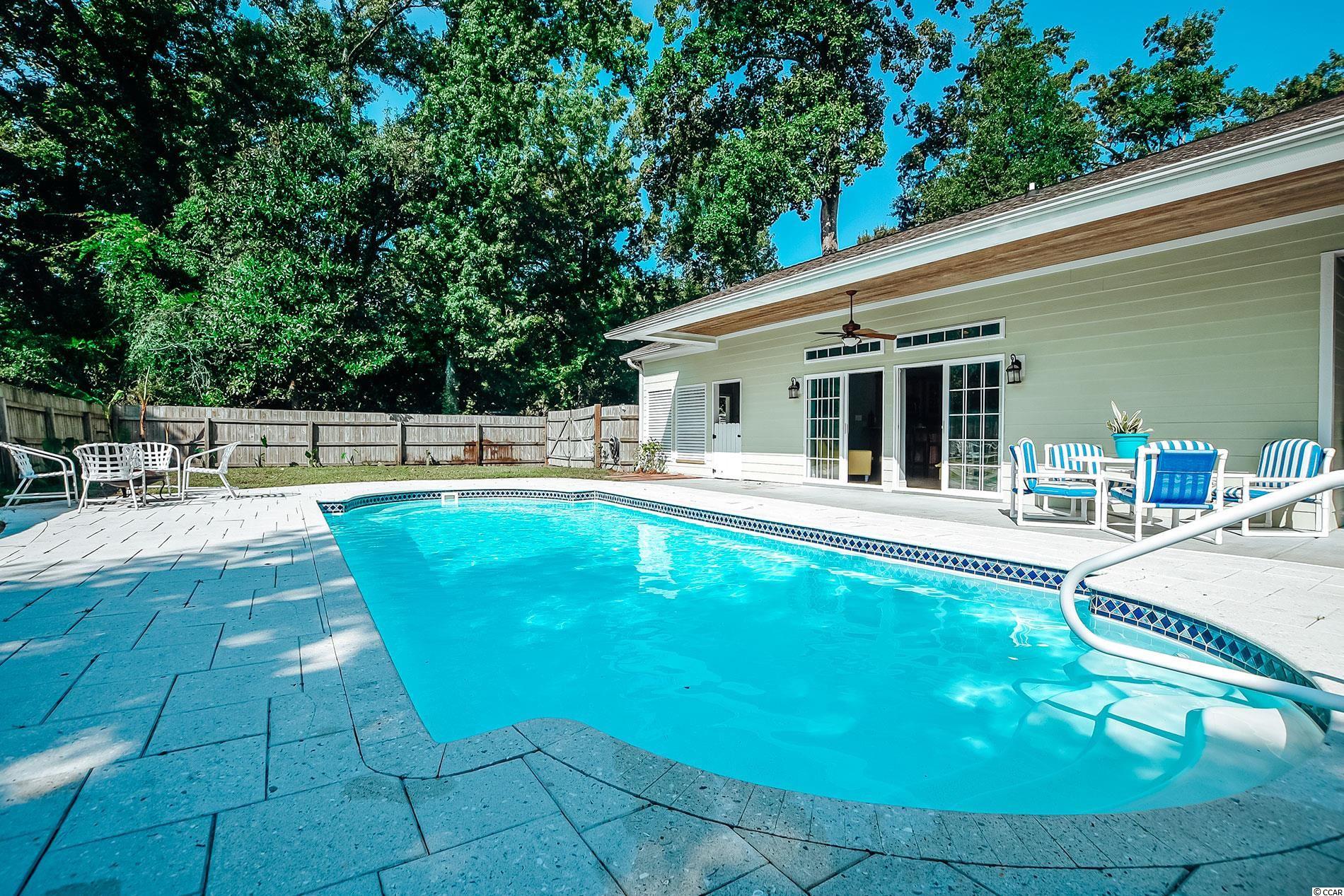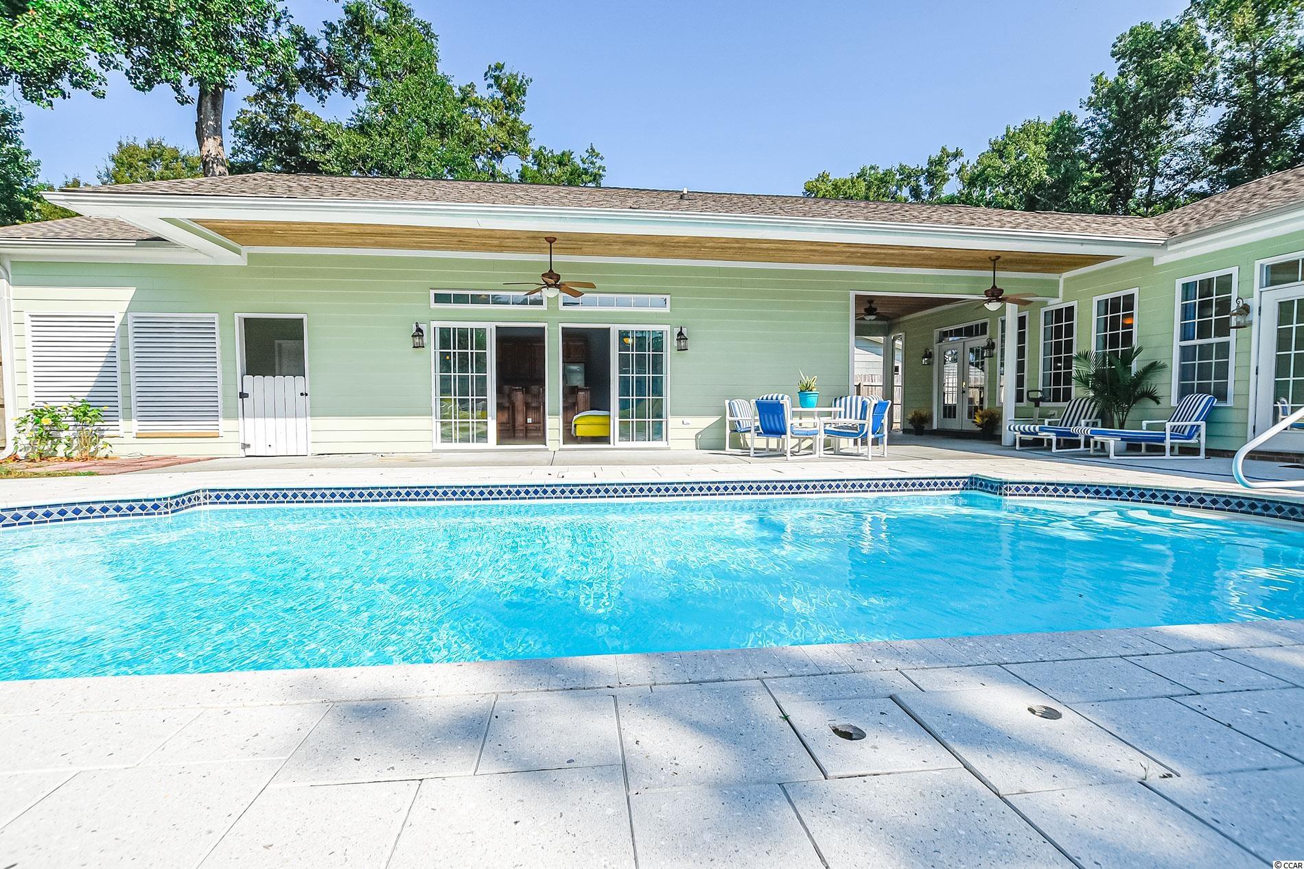 This beautiful 4 bedroom/4 bath Ranch home is located only 7 blocks to the beach and is a golf cart ride to all North Myrtle Beach shopping, dining, and activities. The home has 2 kitchens and 2 living spaces. The front living room features a fireplace and the other is a great room large enough for the biggest gatherings. The main house and the pool house are attached by a covered breezeway. The detached pool house has a full kitchen with granite countertops and stainless appliances. Perfect for entertaining with the in-ground saltwater heated pool. The fully fenced yard has an outside shower to wash off after a day at the beach. Plenty of storage, with a 2 bay garage that has a separate street entrance and space for boat storage. This home has it all!