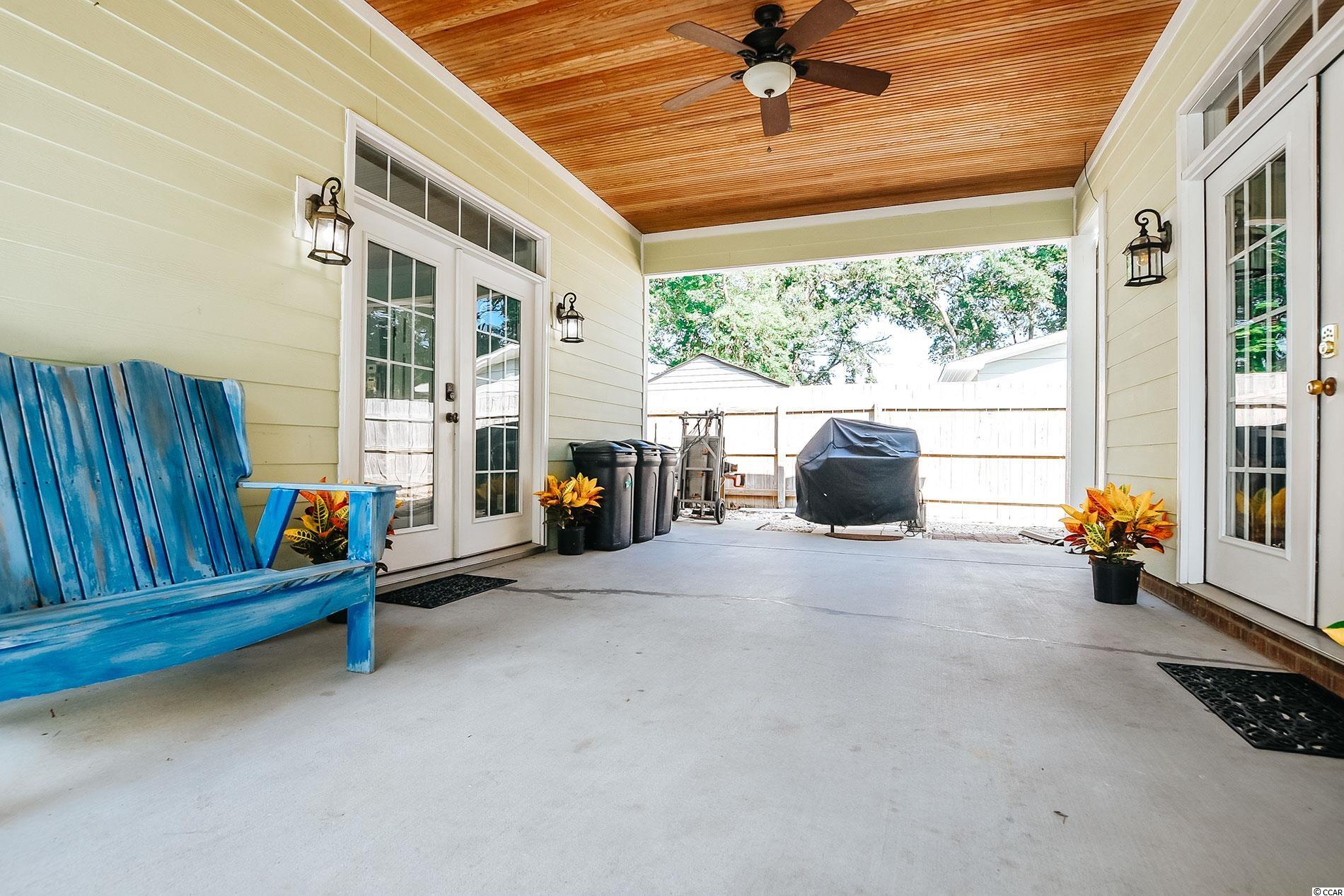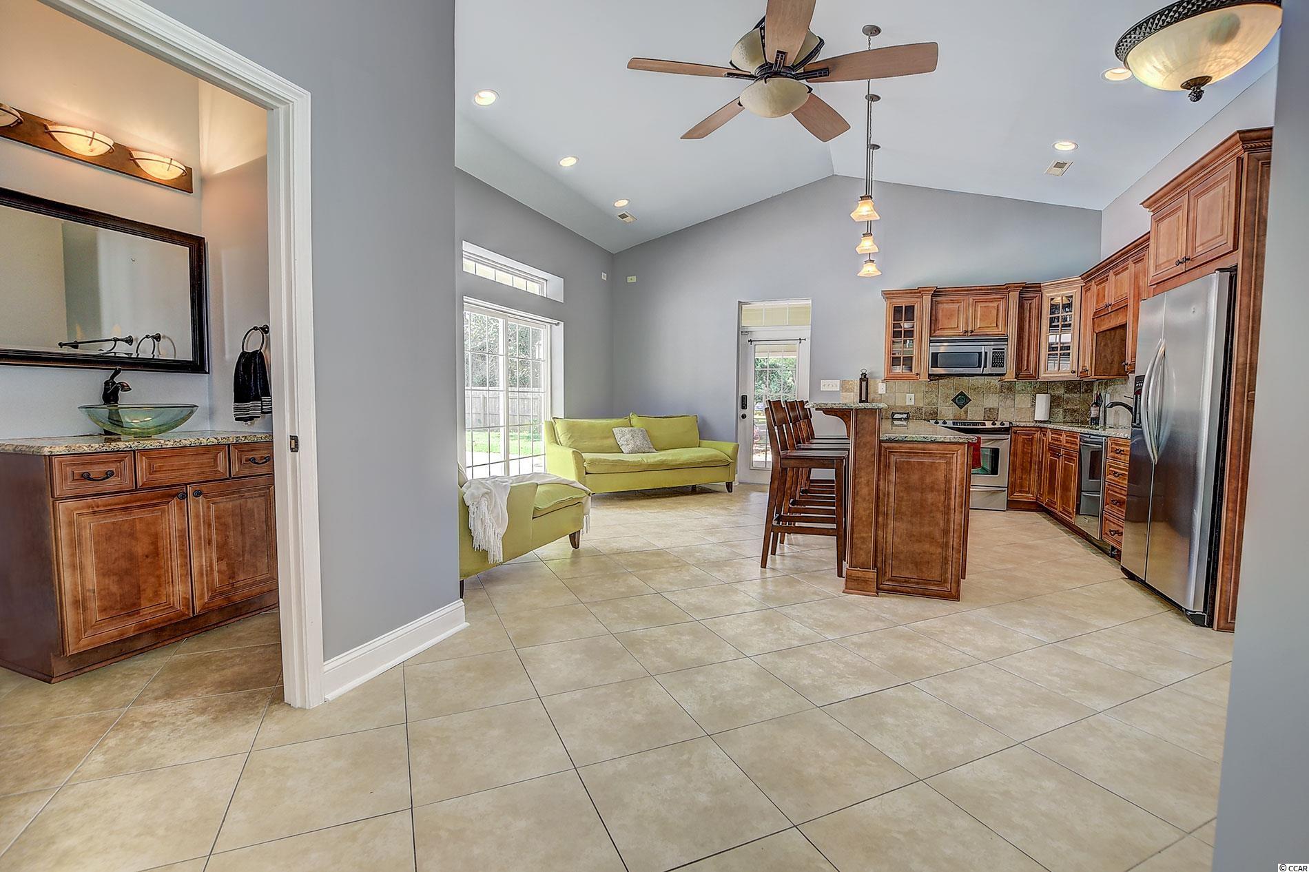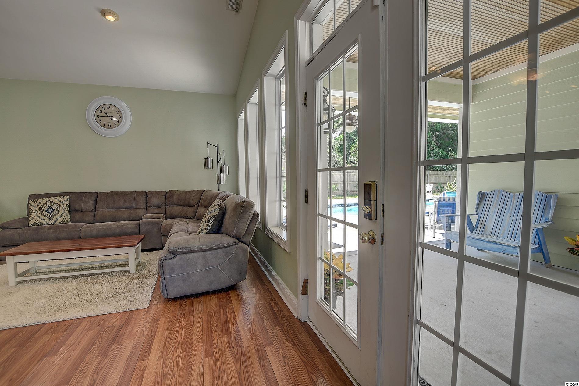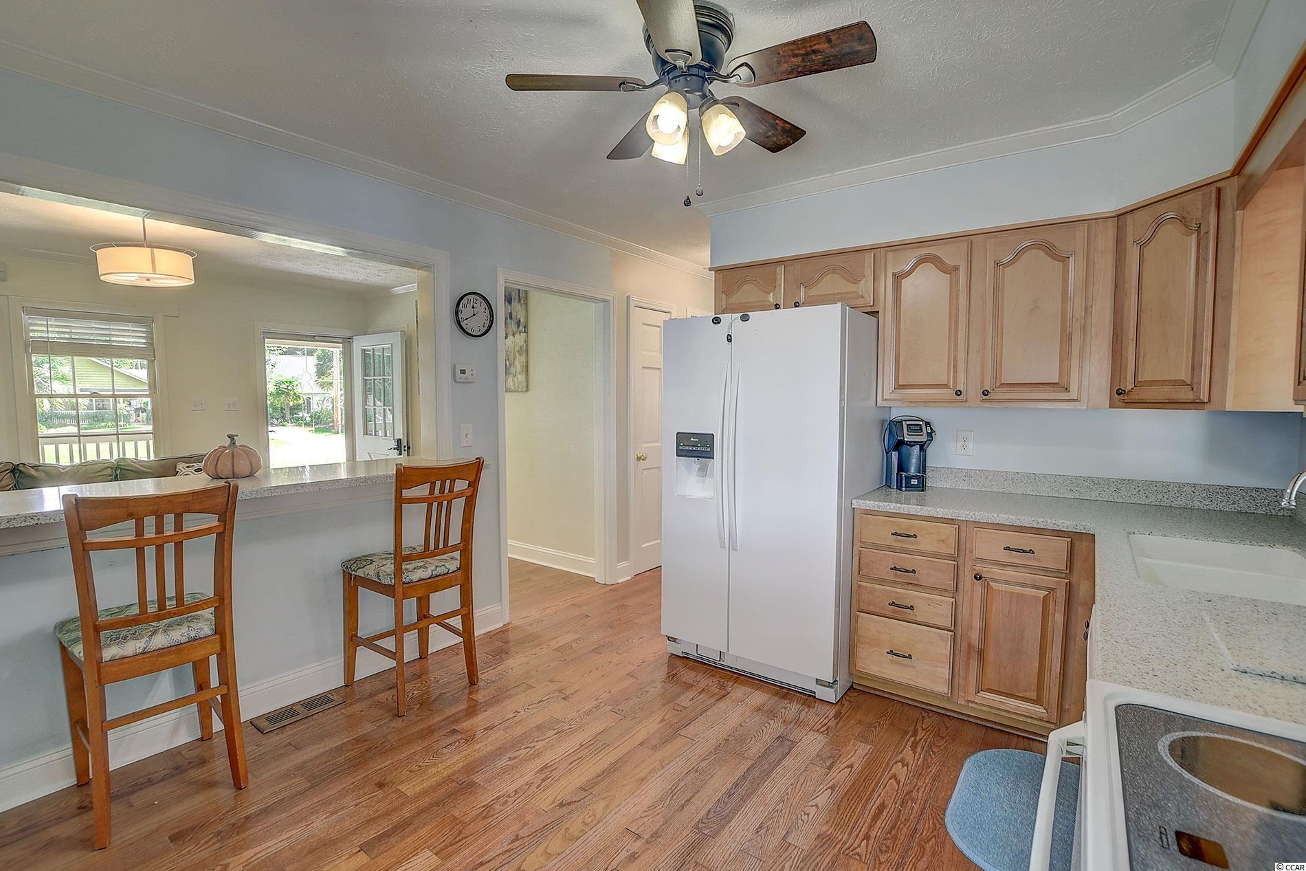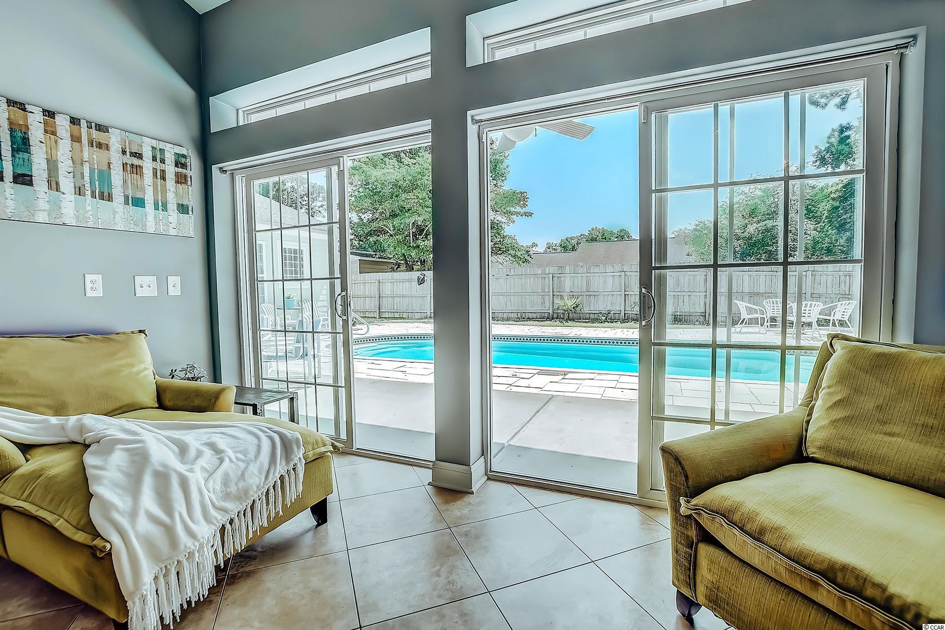 This beautiful 4 bedroom/4 bath Ranch home is located only 7 blocks to the beach and is a golf cart ride to all North Myrtle Beach shopping, dining, and activities. The home has 2 kitchens and 2 living spaces. The front living room features a fireplace and the other is a great room large enough for the biggest gatherings. The main house and the pool house are attached by a covered breezeway. The detached pool house has a full kitchen with granite countertops and stainless appliances. Perfect for entertaining with the in-ground saltwater heated pool. The fully fenced yard has an outside shower to wash off after a day at the beach. Plenty of storage, with a 2 bay garage that has a separate street entrance and space for boat storage. This home has it all!