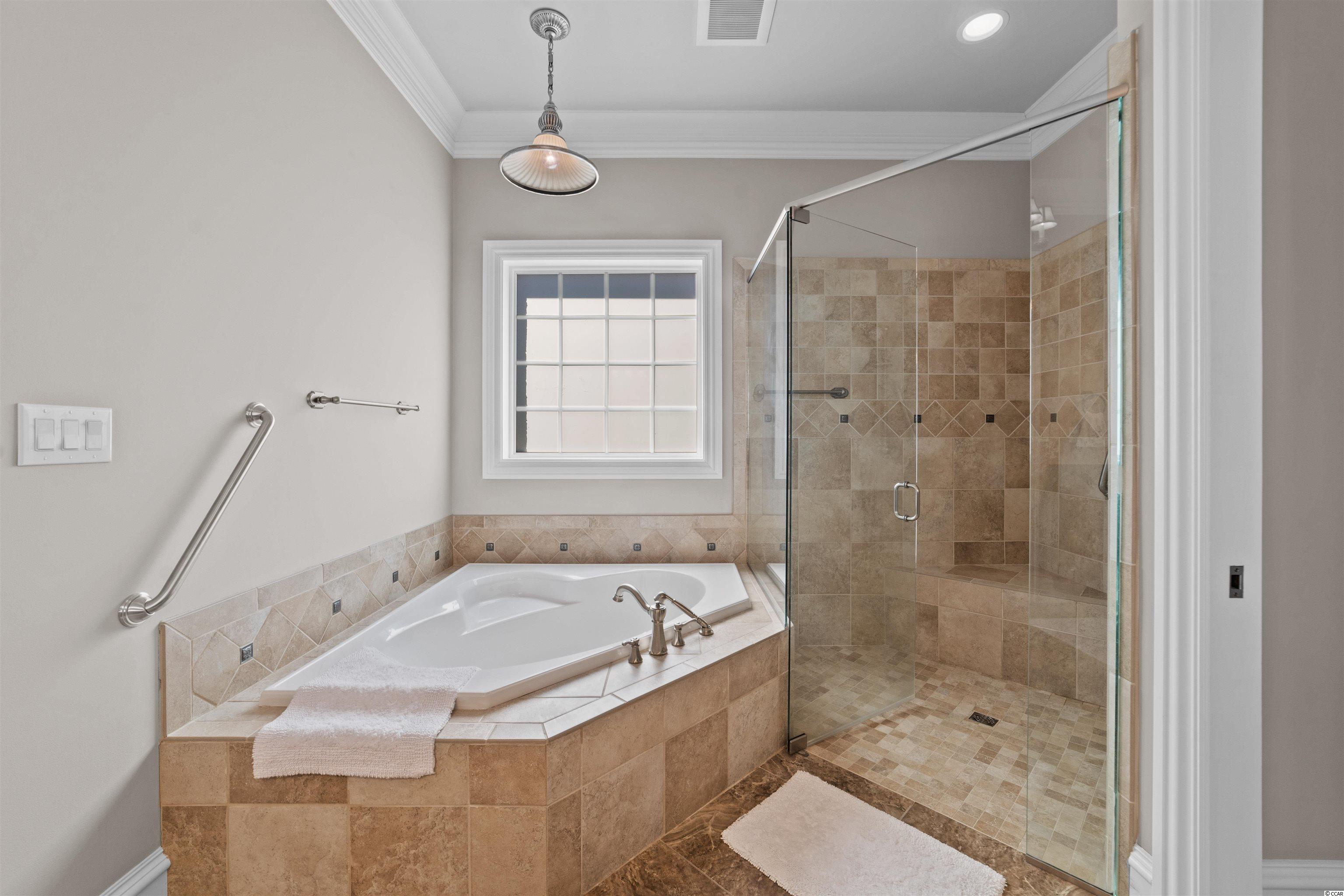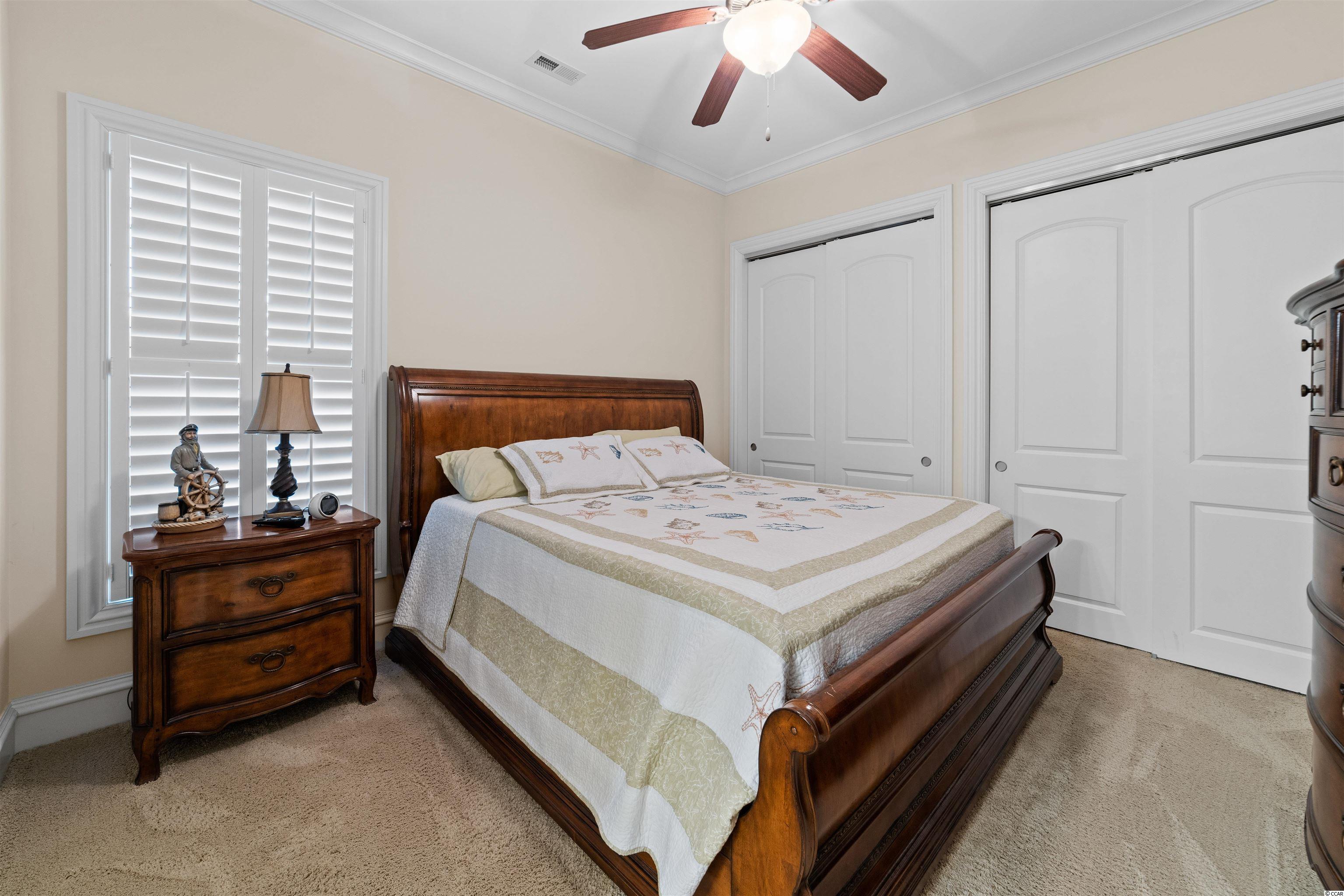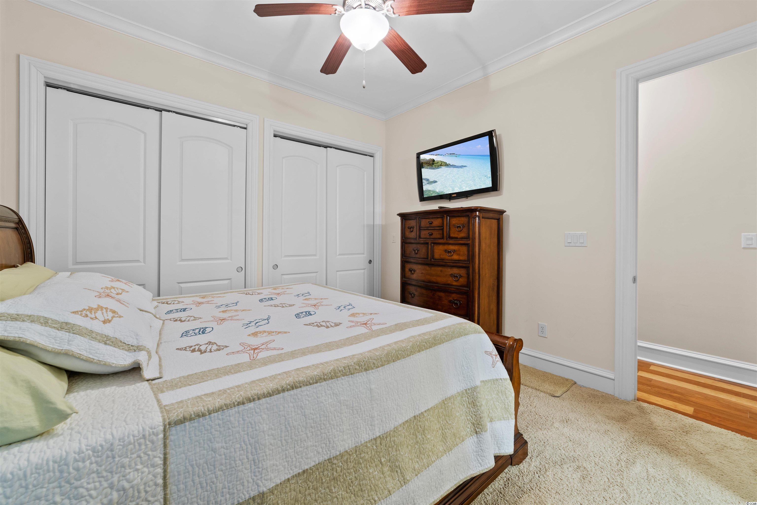 JUST LISTED in SEABROOK PLANTATION! Are you looking for ground floor living, yet you still want to be close to the BEACH? This 5BR/4BA/2CG EXECUTIVE STYLE Home is located in a gated community, EAST OF HWY 17, walking distance to Coastal North Town Center (Publix, TJ Maxx, Dick's Sporting Goods, Hobby Lobby, Homegoods, Hickory Tavern, Panera Bread, etc.), & just a short golf cart ride to CHERRY GROVE BEACH. Custom built in 2010, this all Brick home is located on a large corner lot! The front porch is welcoming & the entrance is elegant. A Welcome Feeling is evident as you enter the foyer, looking into the Great Room featuring 10' smooth, double tray ceilings, Natural Gas fireplace, Custom Built-In shelving & cabinets, Ceiling fan, and a large serving hatch to the Gourmet Kitchen. The Custom Kitchen includes Stainless Steel appliances, Granite countertops & Tile backsplash, Custom Cabinetry, Large pantry, a Breakfast bar, Breakfast nook, & a Parlor area. The Large Master Suite features a Tray ceiling, Sitting area, Ceiling fan, Master Bath with Double vanities, Garden tub, Tile shower, and His & Hers Walk-In closets. Other interior features include: an additional Bedroom Suite, two Bedrooms split by a Jack & Jill Bath, upstairs Bedroom/Bonus with full bath, Plantation Shutters throughout, 2-Car Sideload Garage, Laundry Hall with Custom Cabinetry & a Wash sink, Carpeted bedrooms, Ceiling fans, extensive Custom moldings, Toto toliets & plenty of Attic storage. Exterior features include: all Brick exterior walls, Stacked Stone accents, Architectural shingles, New HVAC unit installed in July 2021, Corner Lot, Covered Back Porch, Large Brick paver back Patio area, Golf cart garage door, Side garage entry door, Large Backyard, Irrigation, Outdoor shower, Custom Fencing, & plenty of parking. Natural Gas supplies the Tankless Water Heater & Fireplace w/blower. Neighborhood amenities include: gated entryways (3), clubhouse with swimming pool/spa, sidewalks, RV/Boat storage, and landscaped right of ways. Seabrook Plantation is a gated ""golf cart friendly"" community that is just a short ride away from anything CHERRY GROVE BEACH has to offer! This is a great opportunity to purchase a terrific home with the perfect location inside a desirable community in North Myrtle Beach. Call an Agent today to make it your own!