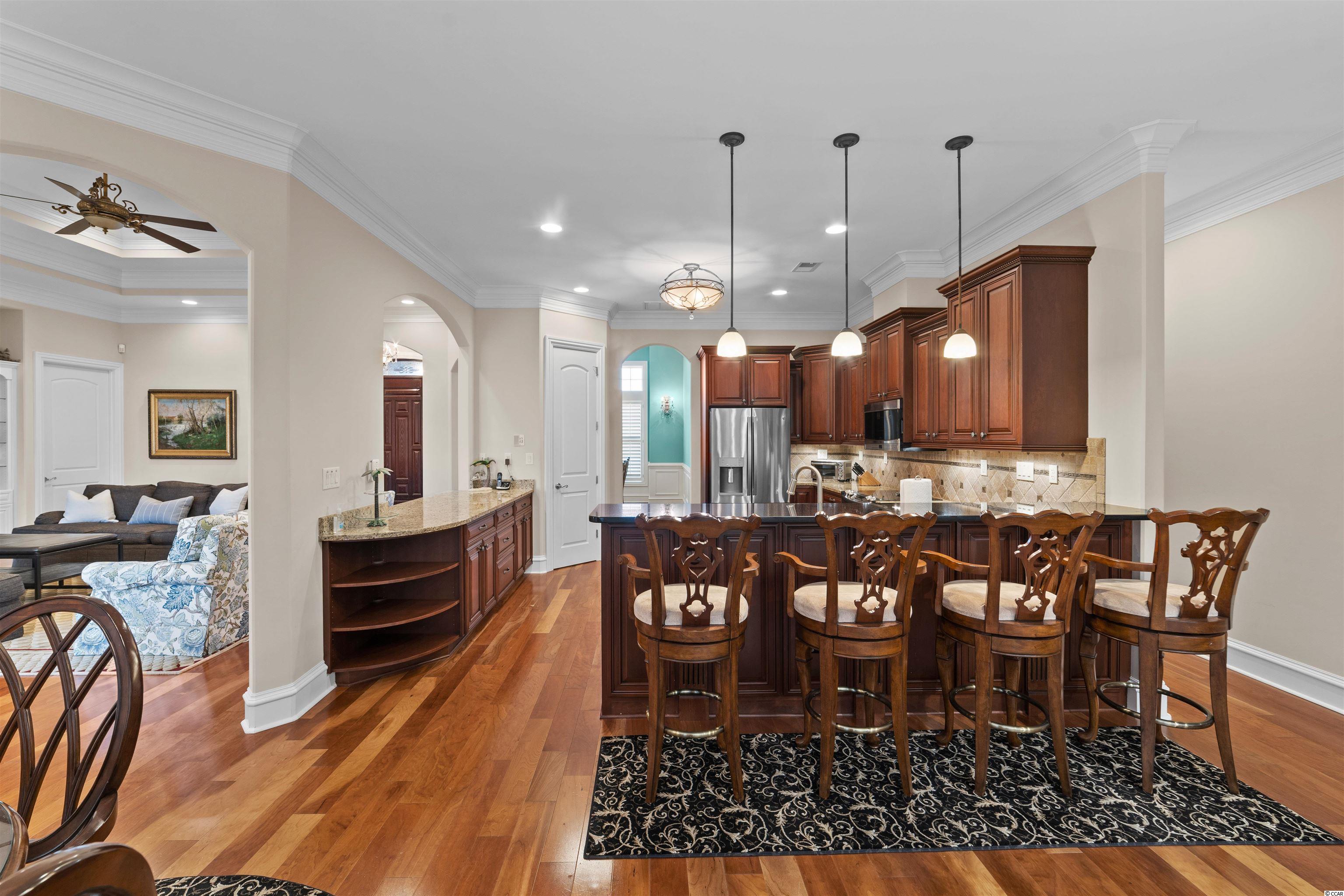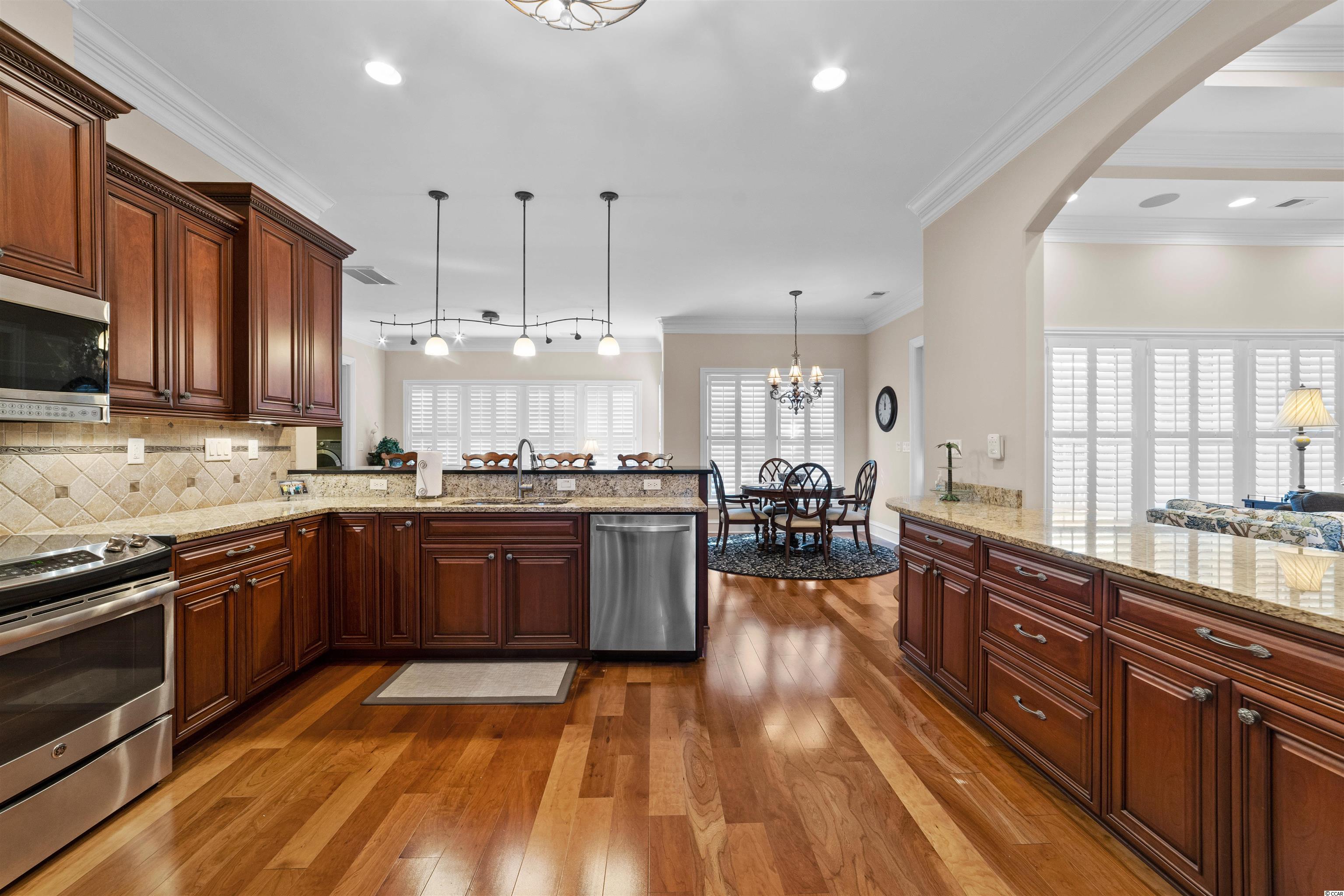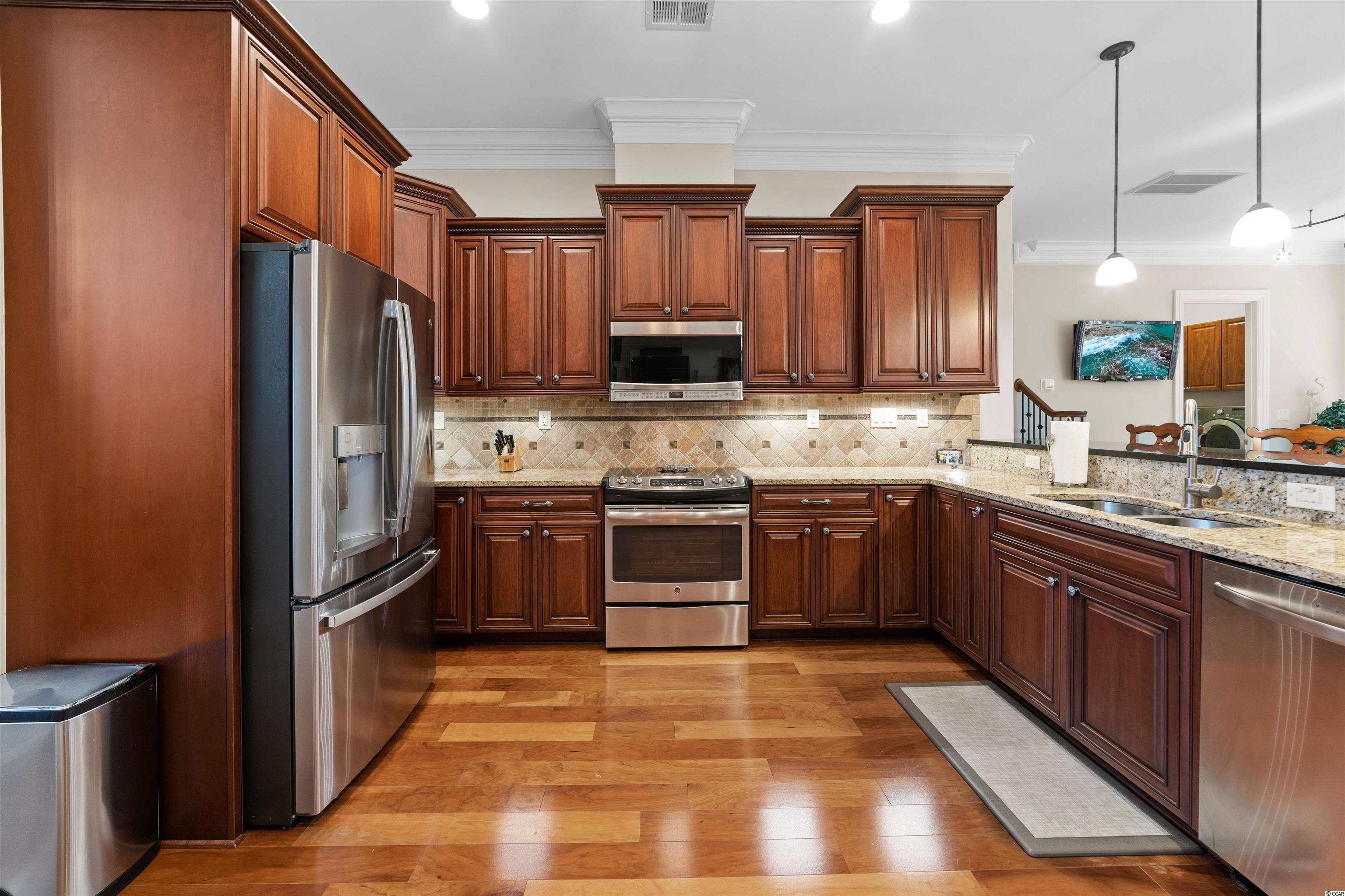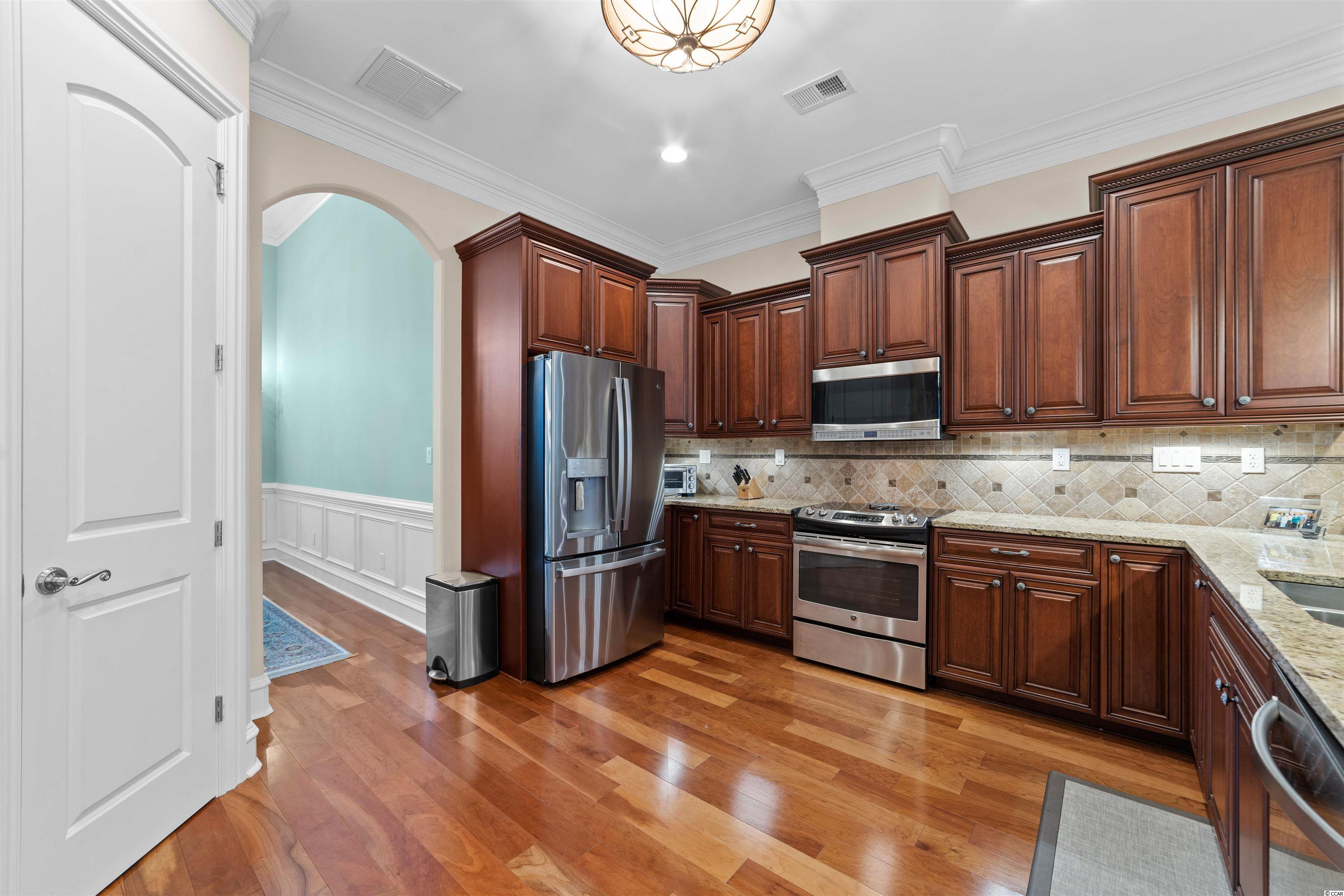 JUST LISTED in SEABROOK PLANTATION! Are you looking for ground floor living, yet you still want to be close to the BEACH? This 5BR/4BA/2CG EXECUTIVE STYLE Home is located in a gated community, EAST OF HWY 17, walking distance to Coastal North Town Center (Publix, TJ Maxx, Dick's Sporting Goods, Hobby Lobby, Homegoods, Hickory Tavern, Panera Bread, etc.), & just a short golf cart ride to CHERRY GROVE BEACH. Custom built in 2010, this all Brick home is located on a large corner lot! The front porch is welcoming & the entrance is elegant. A Welcome Feeling is evident as you enter the foyer, looking into the Great Room featuring 10' smooth, double tray ceilings, Natural Gas fireplace, Custom Built-In shelving & cabinets, Ceiling fan, and a large serving hatch to the Gourmet Kitchen. The Custom Kitchen includes Stainless Steel appliances, Granite countertops & Tile backsplash, Custom Cabinetry, Large pantry, a Breakfast bar, Breakfast nook, & a Parlor area. The Large Master Suite features a Tray ceiling, Sitting area, Ceiling fan, Master Bath with Double vanities, Garden tub, Tile shower, and His & Hers Walk-In closets. Other interior features include: an additional Bedroom Suite, two Bedrooms split by a Jack & Jill Bath, upstairs Bedroom/Bonus with full bath, Plantation Shutters throughout, 2-Car Sideload Garage, Laundry Hall with Custom Cabinetry & a Wash sink, Carpeted bedrooms, Ceiling fans, extensive Custom moldings, Toto toliets & plenty of Attic storage. Exterior features include: all Brick exterior walls, Stacked Stone accents, Architectural shingles, New HVAC unit installed in July 2021, Corner Lot, Covered Back Porch, Large Brick paver back Patio area, Golf cart garage door, Side garage entry door, Large Backyard, Irrigation, Outdoor shower, Custom Fencing, & plenty of parking. Natural Gas supplies the Tankless Water Heater & Fireplace w/blower. Neighborhood amenities include: gated entryways (3), clubhouse with swimming pool/spa, sidewalks, RV/Boat storage, and landscaped right of ways. Seabrook Plantation is a gated ""golf cart friendly"" community that is just a short ride away from anything CHERRY GROVE BEACH has to offer! This is a great opportunity to purchase a terrific home with the perfect location inside a desirable community in North Myrtle Beach. Call an Agent today to make it your own!