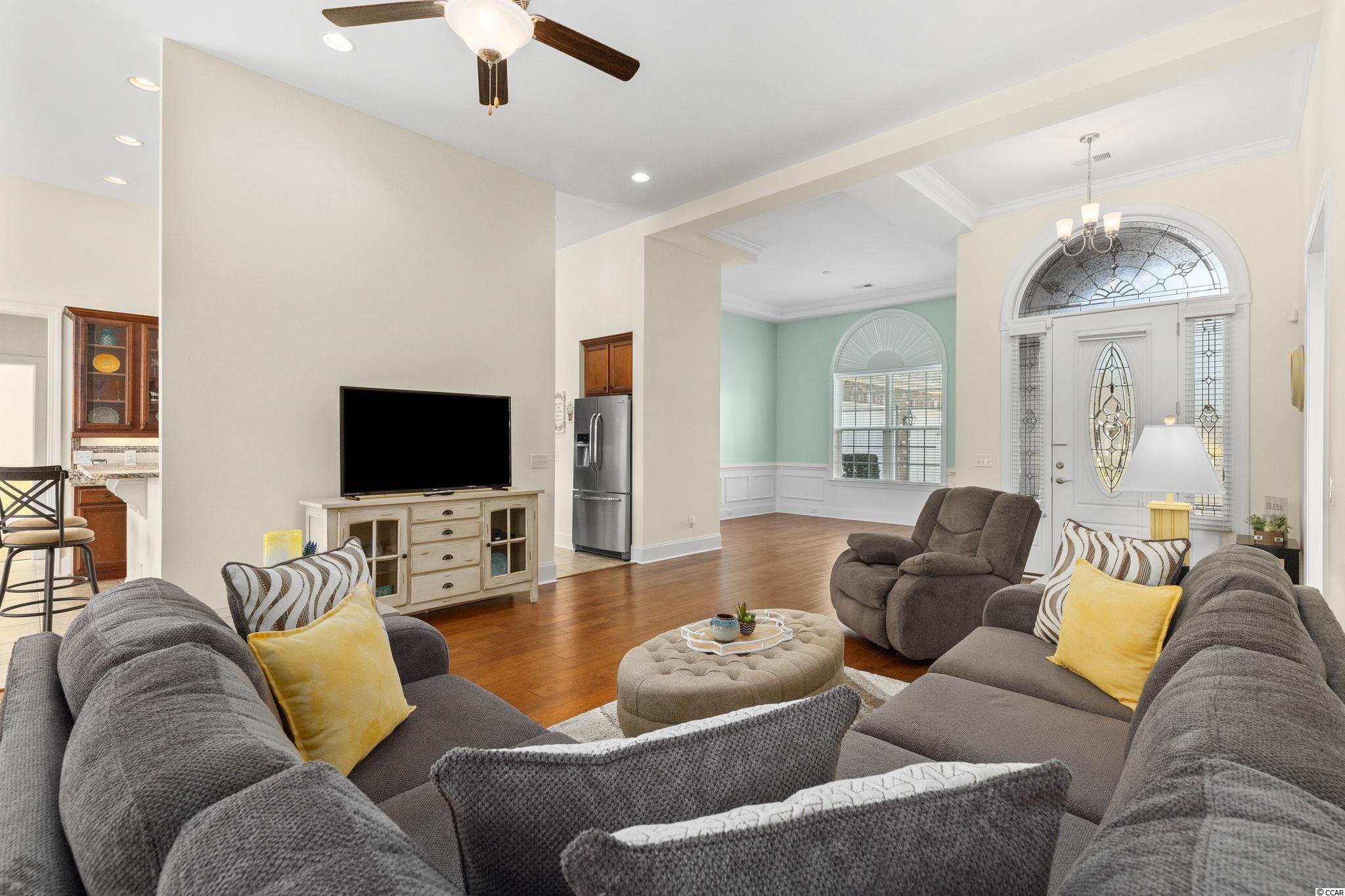 Dont miss this rare opportunity to own this better than new 6 bedroom, 3.5 bath home with an oversized 2 car garage on the large lake in the highly sought-after luxury lake front community of Wild Wing Plantation. This beautiful home is not your standard builder grade home, this is a custom-built home loaded with many extras and additional features. The stately front entrance and foyer welcomes you into this breathtaking home. The Great Room has stately 10 high ceilings, hardwood flooring, and gas fireplace. To the right is a formal dining room with 10 dramatic ceilings, wainscoting and large palladium window. The chefs kitchen features custom cabinets, luxury granite countertops, stainless steel appliances, tile backsplash, tile flooring, two pantries and even a breakfast area. Spectacular first floor master bedroom suite with views of the large lake, double tray ceiling, walk-in-closet, granite countertops, whirlpool tub, tile flooring, tile walk-in-shower, and his and her sinks. There are two additional bedrooms on the first floor. Upstairs there is a large den/game room area, additional bedroom, with full bath. The rear of the home faces down the large lake, has a large screened in porch, paved patio area that offer unparalleled enjoyment of the many SC lake birds, including blue heron, egrets and even eagles. The exterior of the home features an impeccably manicured professionally landscaped backyard, with irrigation system and separate water meter. Wild Wing Plantation has over 180 acres of lakes for you to explore and enjoy. You can even add your own private boat dock, use your boat to explore the lakes, fish and even take your boat to the clubhouse to also enjoy the many amenities there. The community features custom built brick and stucco style luxury homes. Association amenities included large clubhouse, multiple outdoor pools, hot tub, 80 waterslide, tennis/pickle ball courts, basketball court, new fenced in playground area, huge day dock, private boat ramp and owners private boat storage. Be sure to have your Realtor ask about the current Wild Wing Golf Club membership! Wild Wing Plantation offers convenient easy access to Coastal Carolina University, shopping, the beaches and all that Myrtle Beach and Conway has to offer. Dont miss out on this rare find, have your Realtor schedule a showing today!!! All measurements and square footage are approximate and not guaranteed. Buyer is responsible for verification.