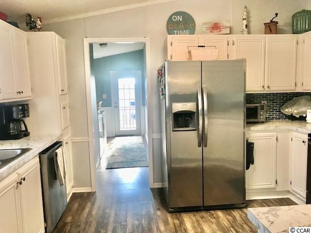 This beautiful pier home is located in a premier residential resort community of Oceanside Village. This home encompasses 4 bedrooms, 3 oversized baths and is situated in the ""Keys"" section of Oceanside Village Wrap around deck gives plenty of outdoor space to enjoy views of the keys and skyline. Ample outdoor space under this home makes it perfect for entertaining family & friends. Large shed offers you extra storage for all your beach chairs, toys, golf cart, etc. The interior of this home has been updated with an extremely versatile soft grey color and luxury vinyl flooring throughout. Kitchen features stainless appliances, newer countertops and tiled back splash. MASTER BATHROOM IS CURRENTLY BEING UPDATED. PICTURES TO COME. Most all furniture will convey with this home. Private Beach Parking Bank financing is available.